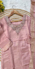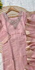 Upgrade your ethnic wardrobe with our Ready to Wear Tissue Silk Hand Work Kurti Set, designed for effortless grace and sophistication. Crafted from premium tissue silk, this kurti set features delicate hand embroidery, adding a luxurious touch to its elegant silhouette. The soft and lightweight fabric drapes beautifully, making it an ideal choice for festivals, celebrations, and special gatherings.