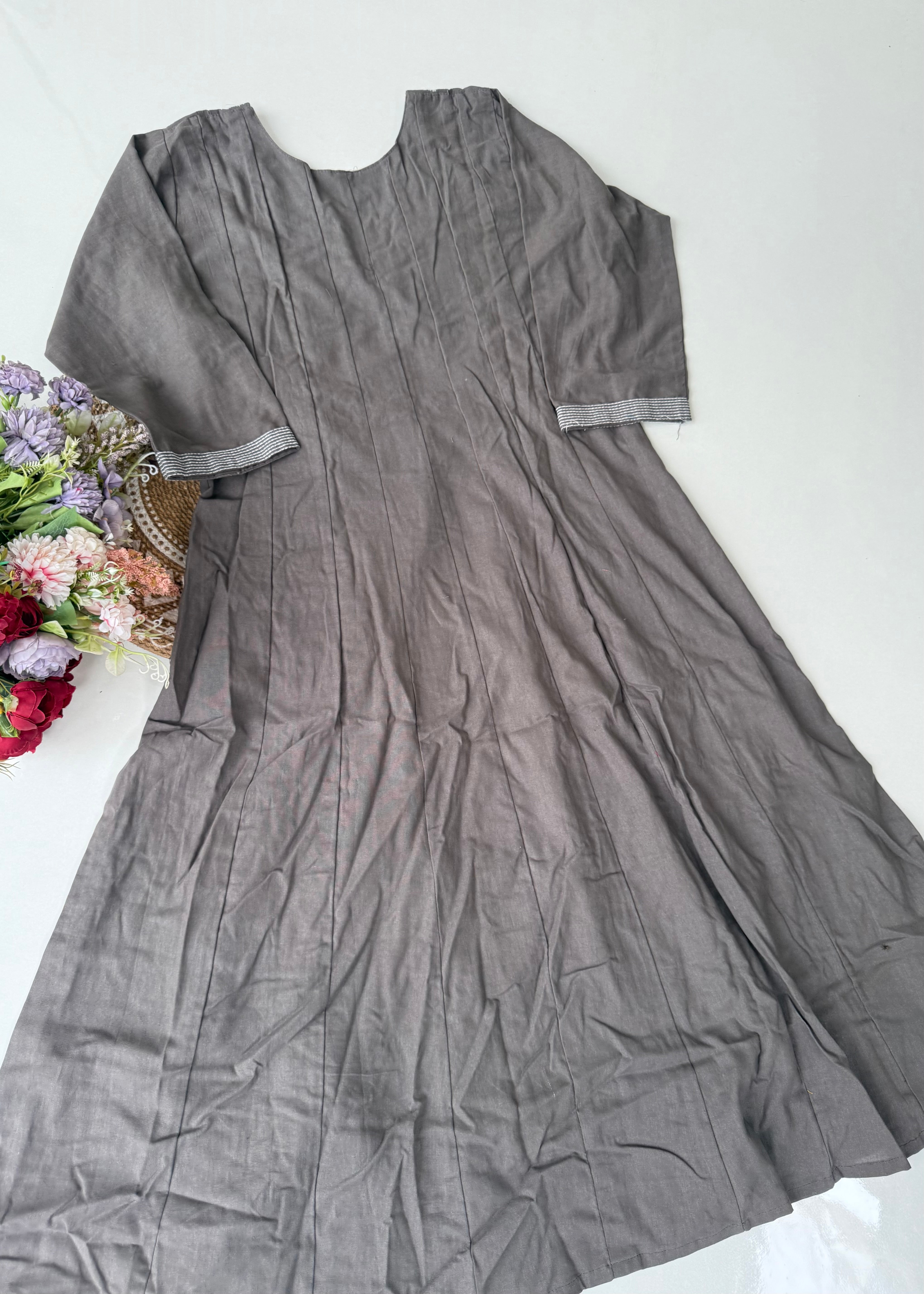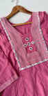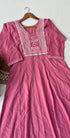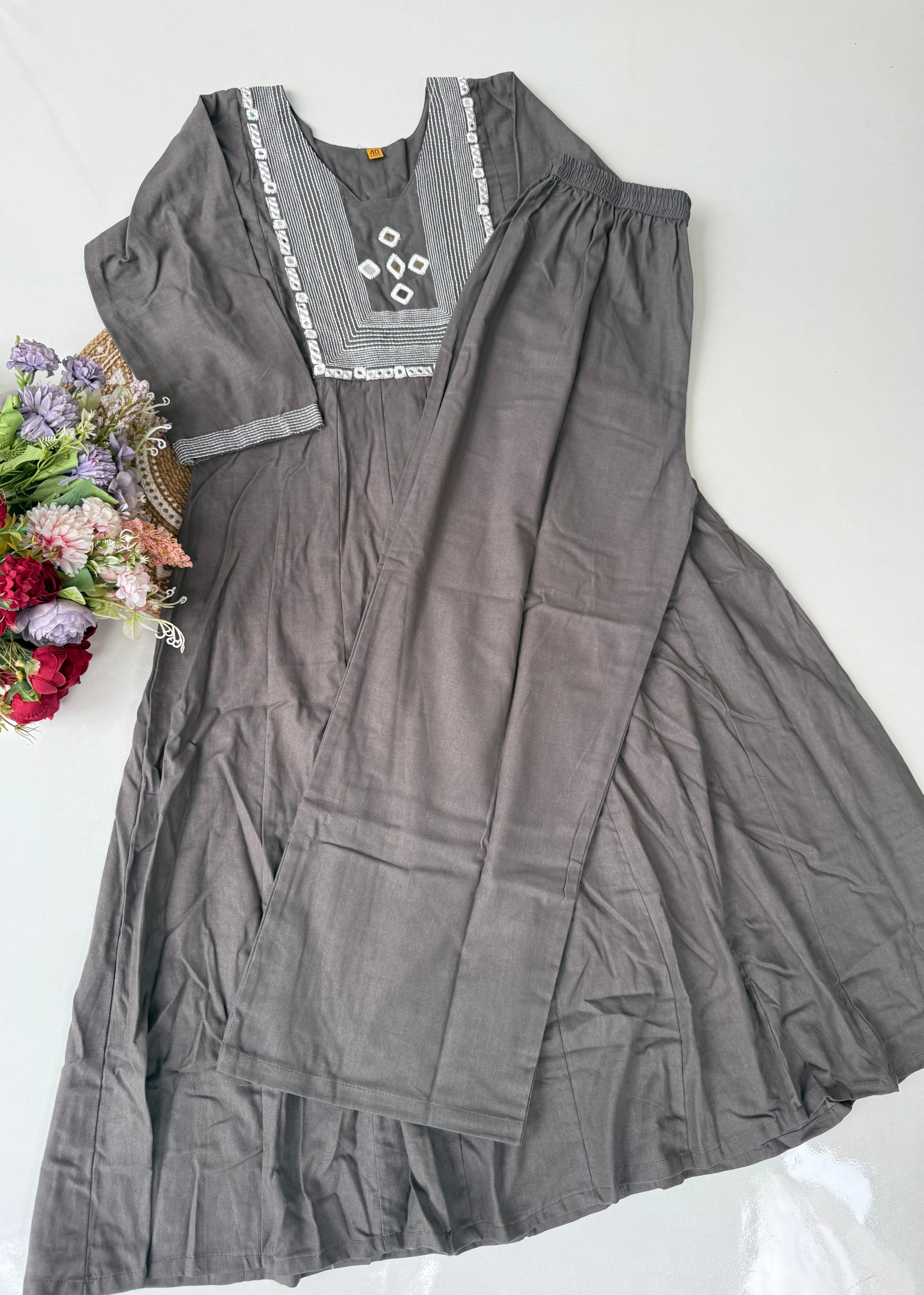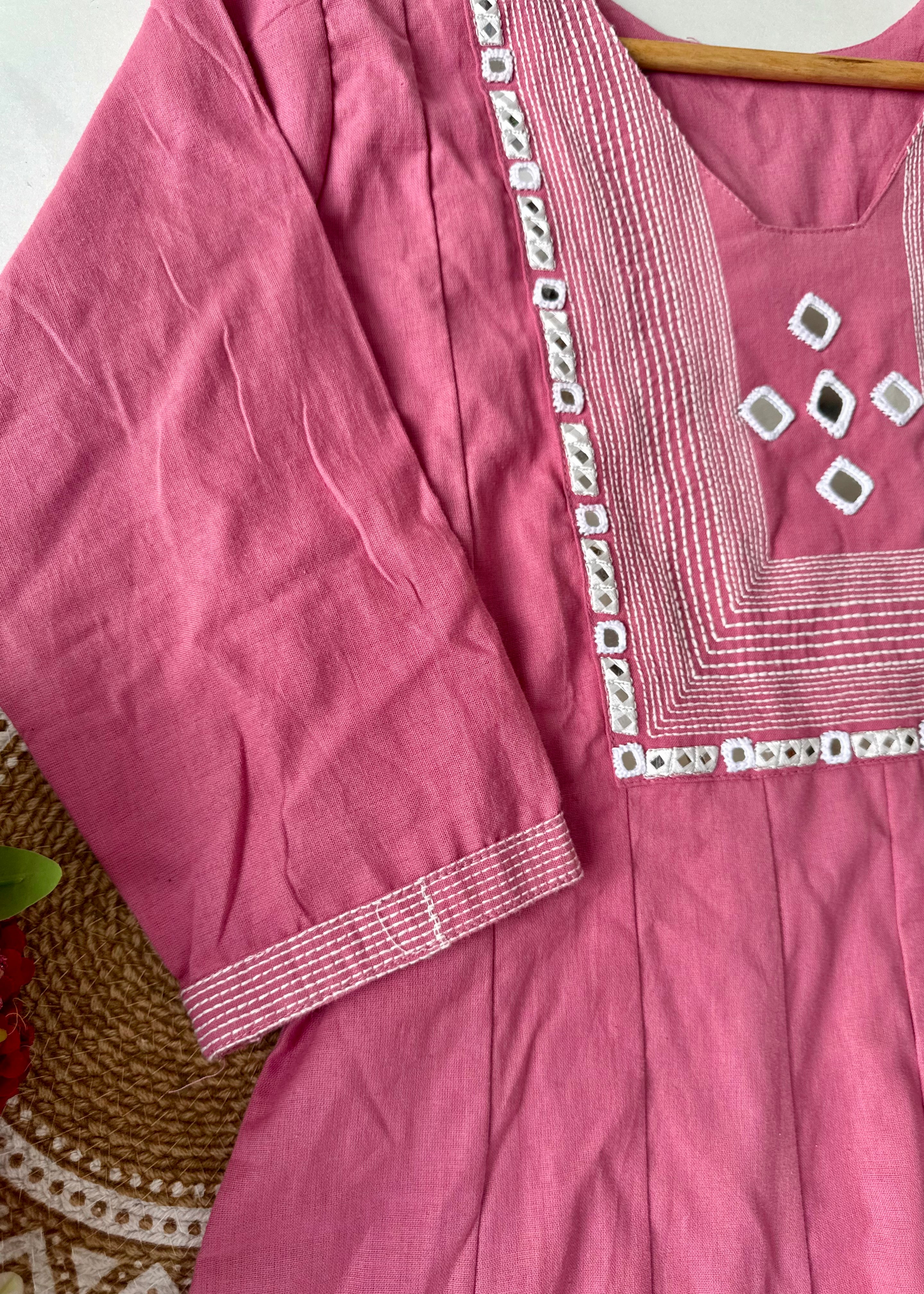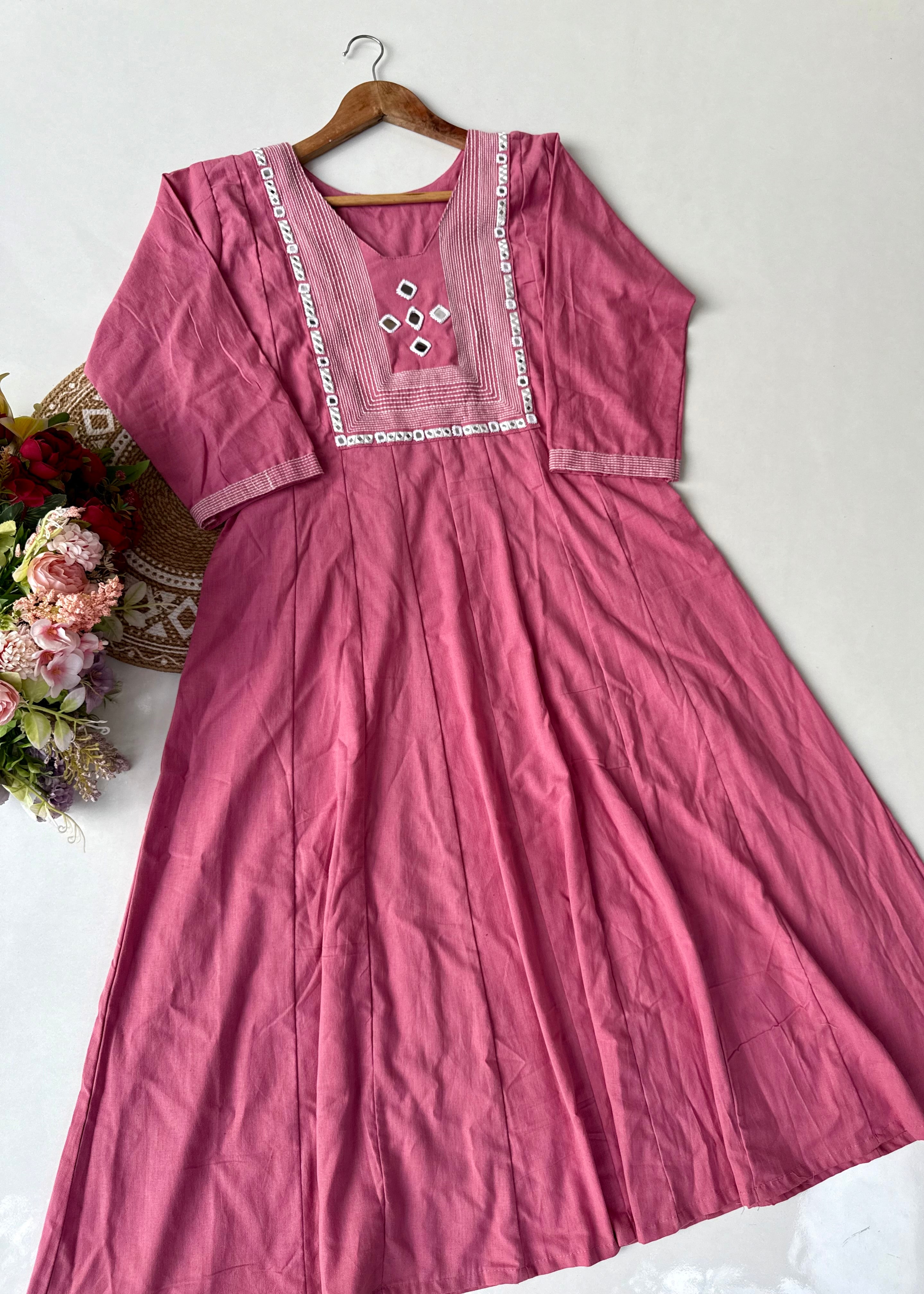 Premium cotton anarkali 2 pc kurta set with mirror work on the yoke of the top with a cotton bottom with pokets