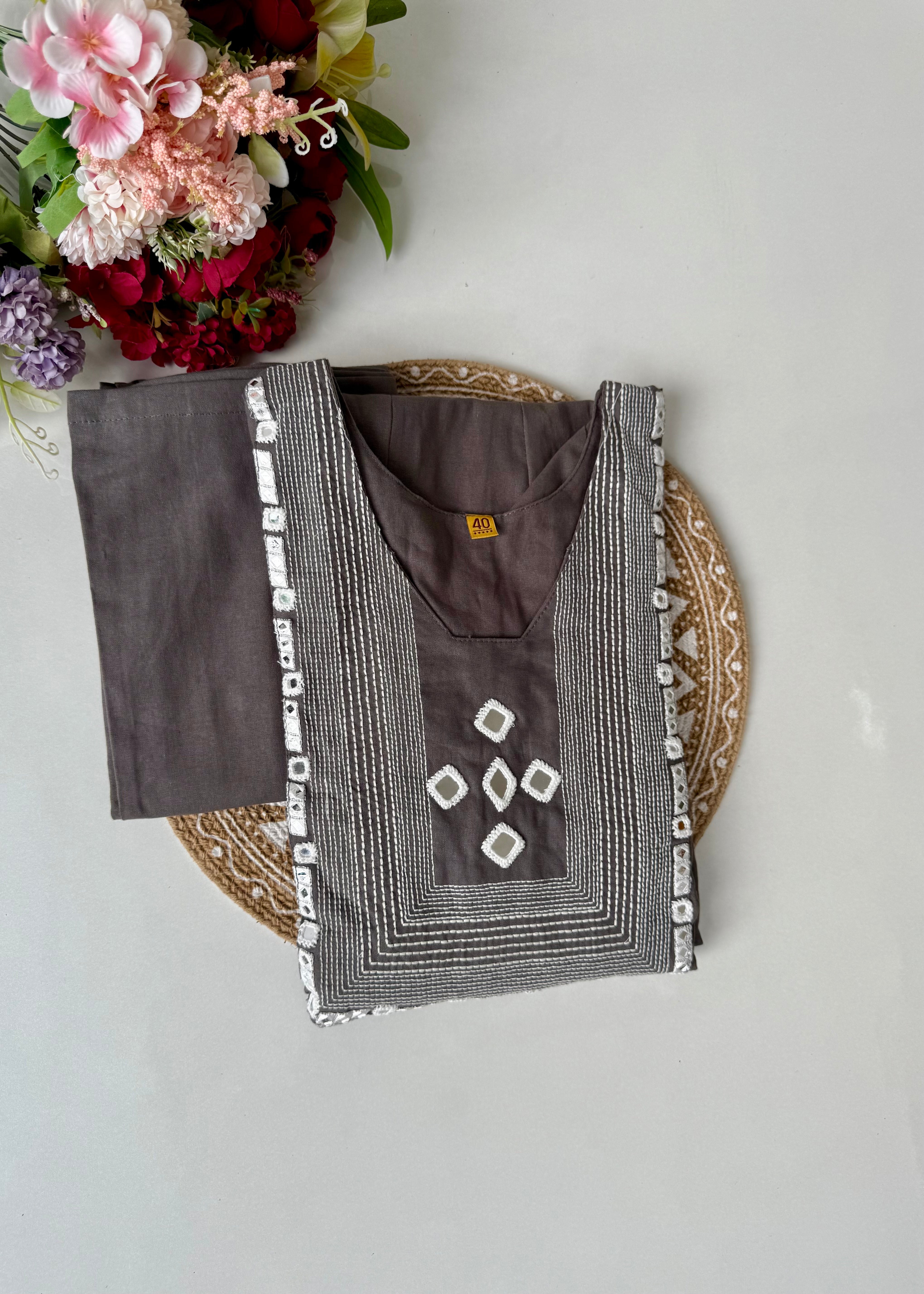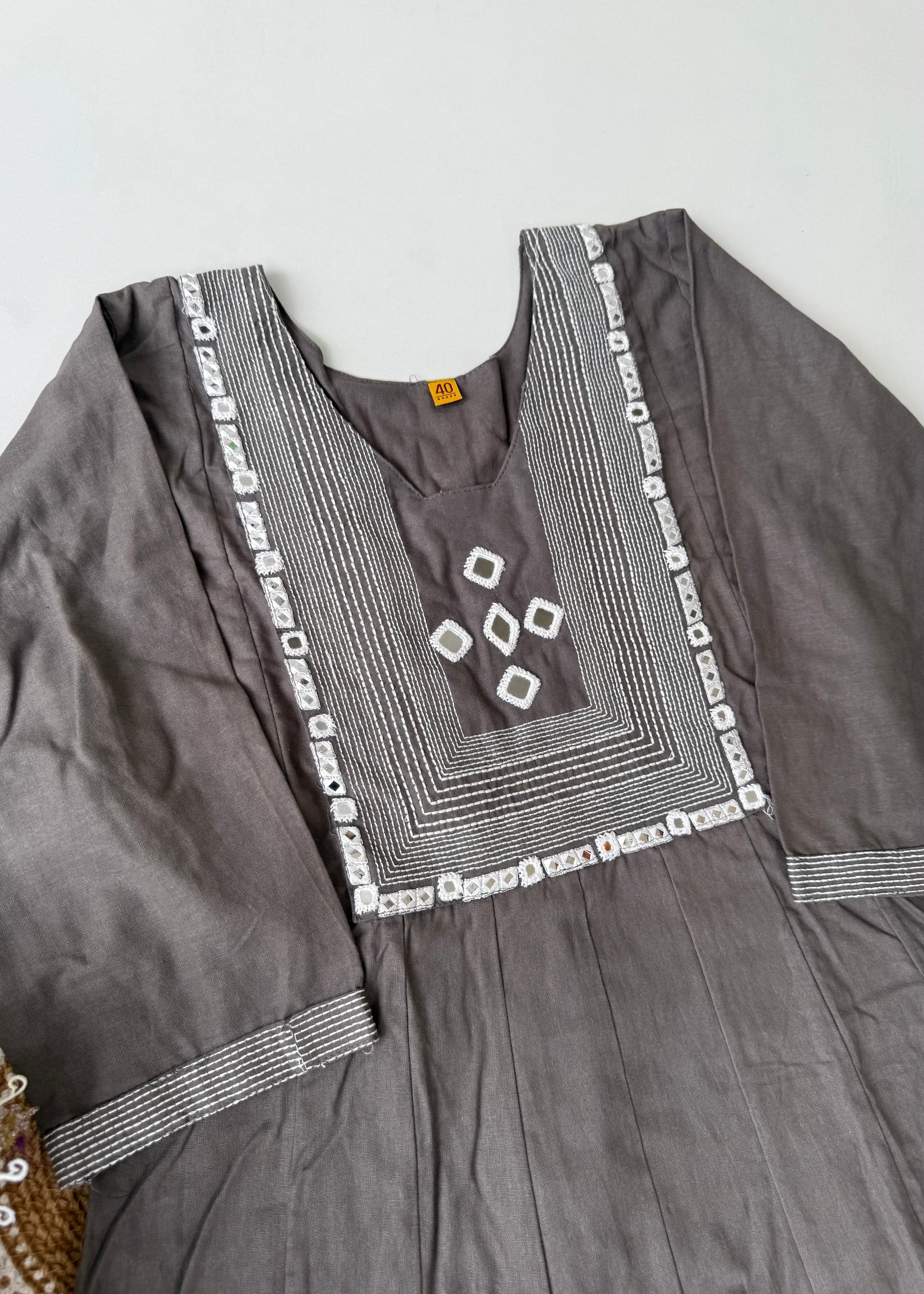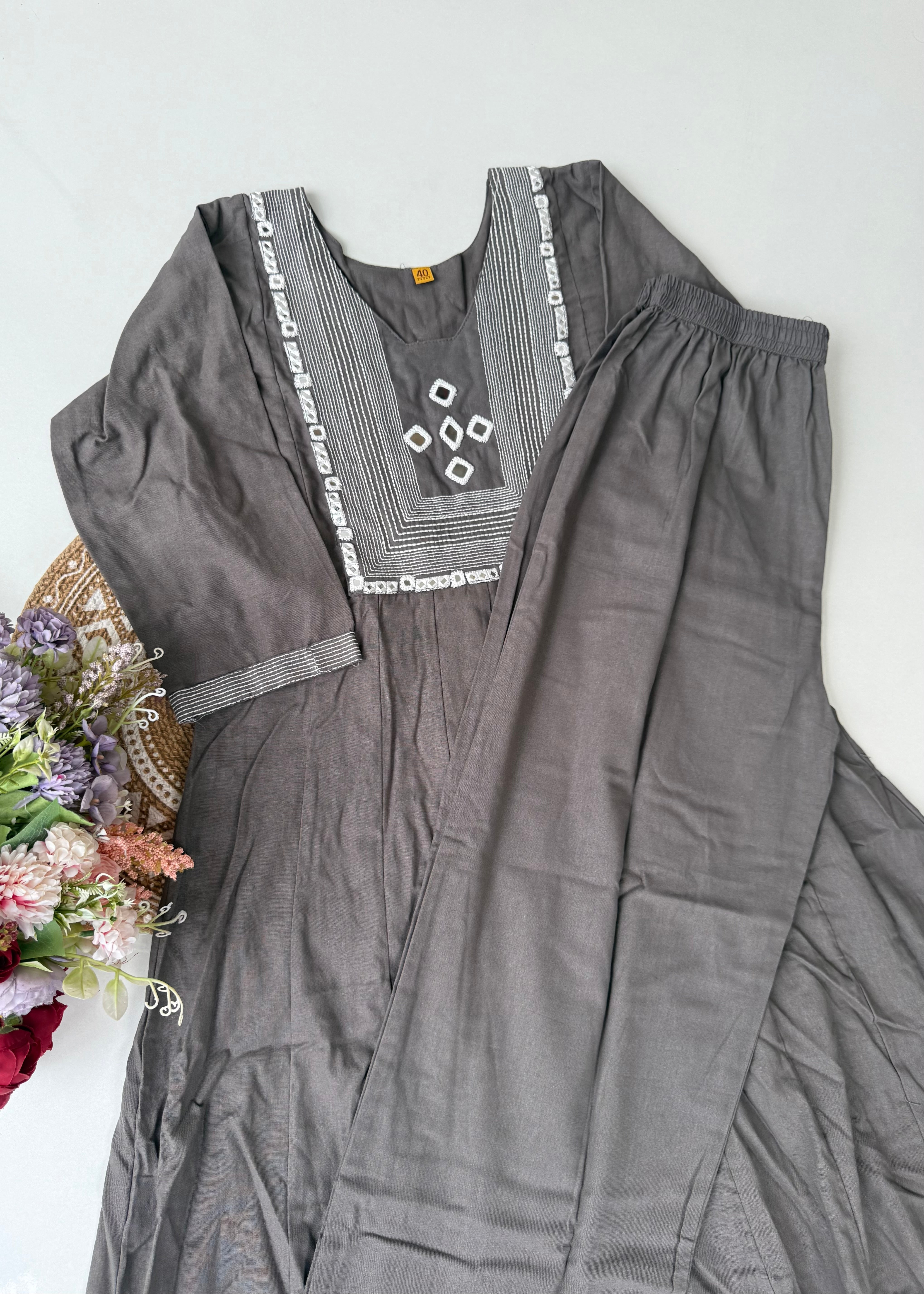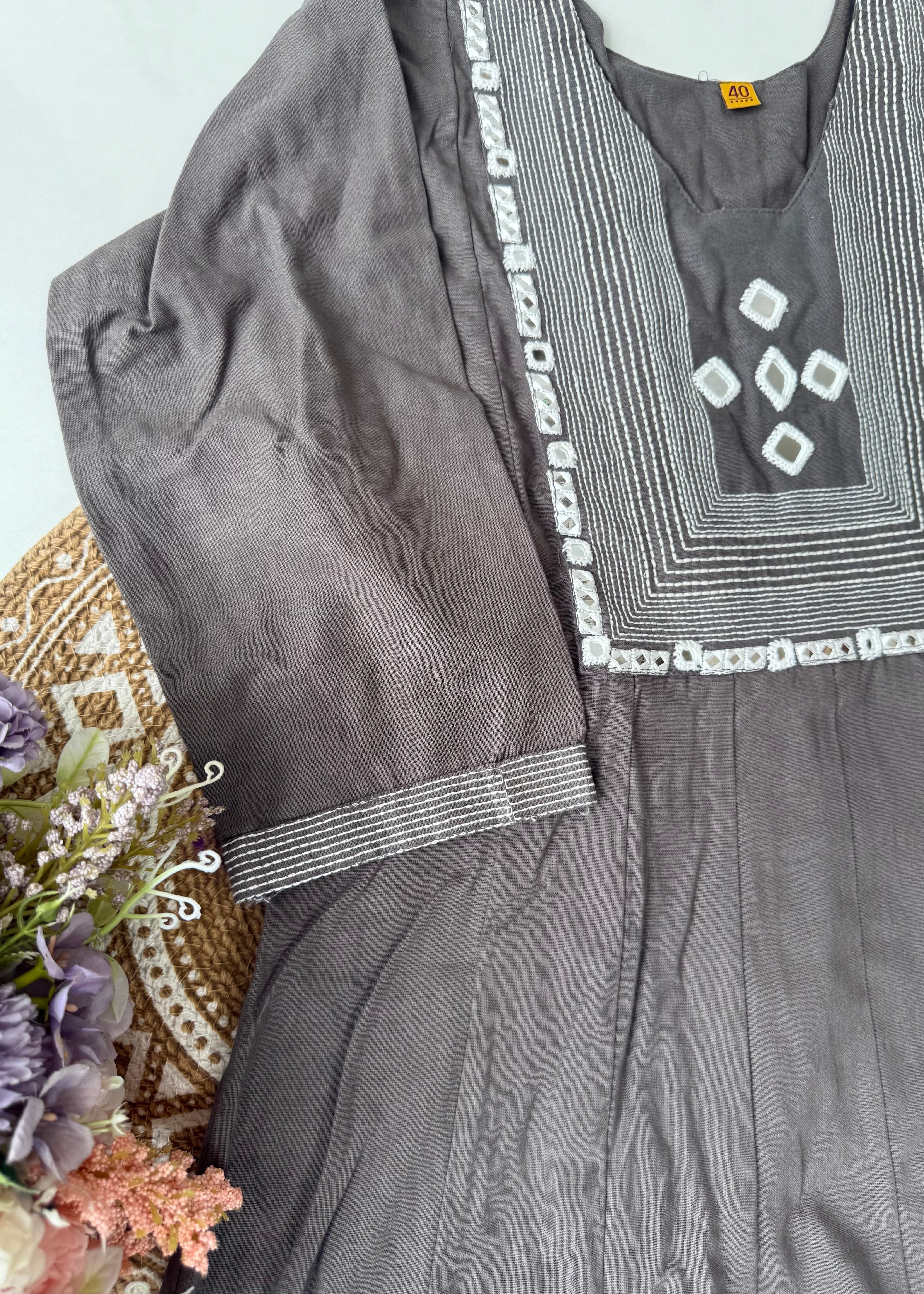 “IRYA" Grey Mirror work cotton Anarkali kurta set