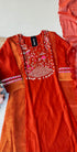 - Top: Mul Chanderi with intricate handwork on the front panel & sleeves