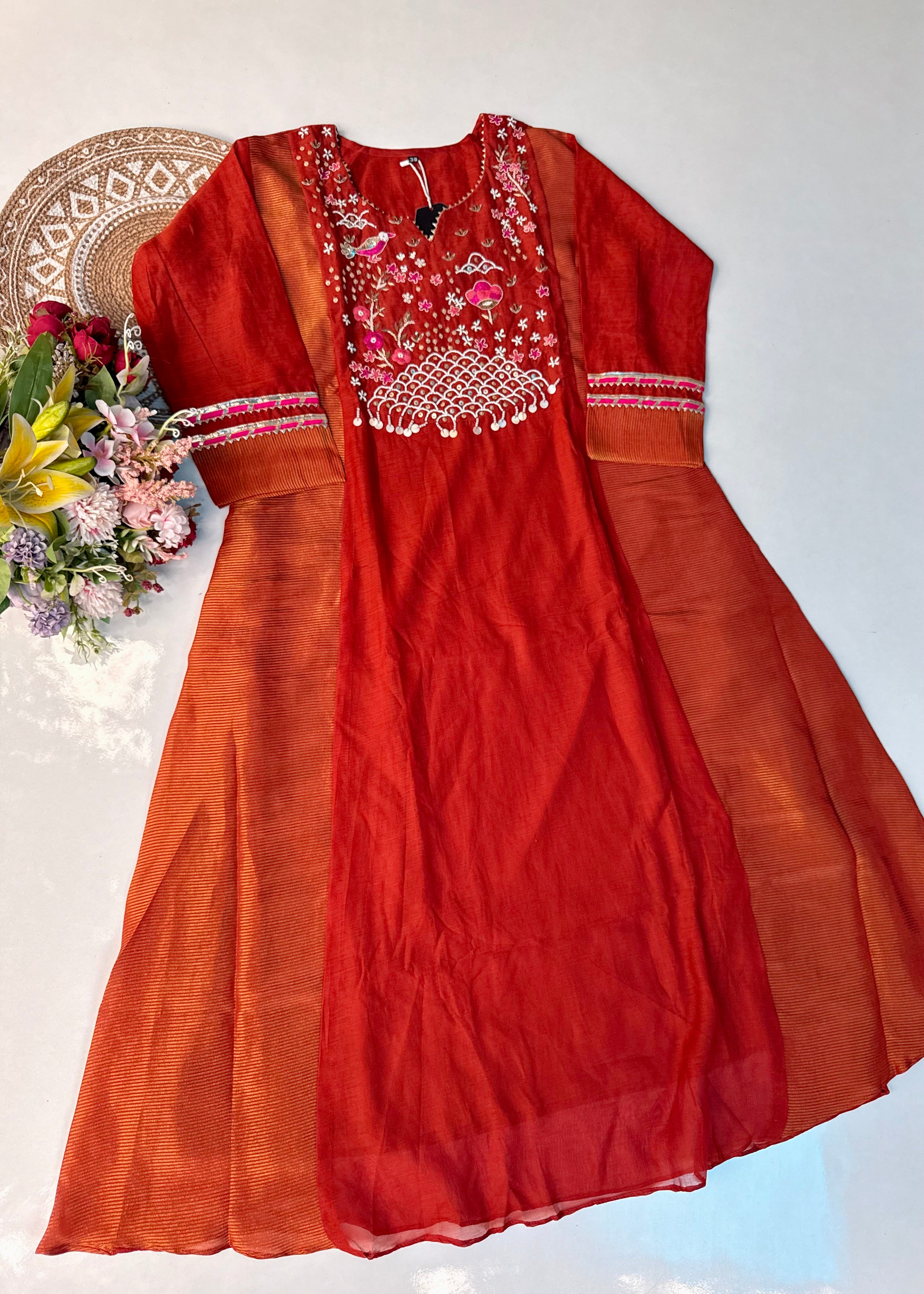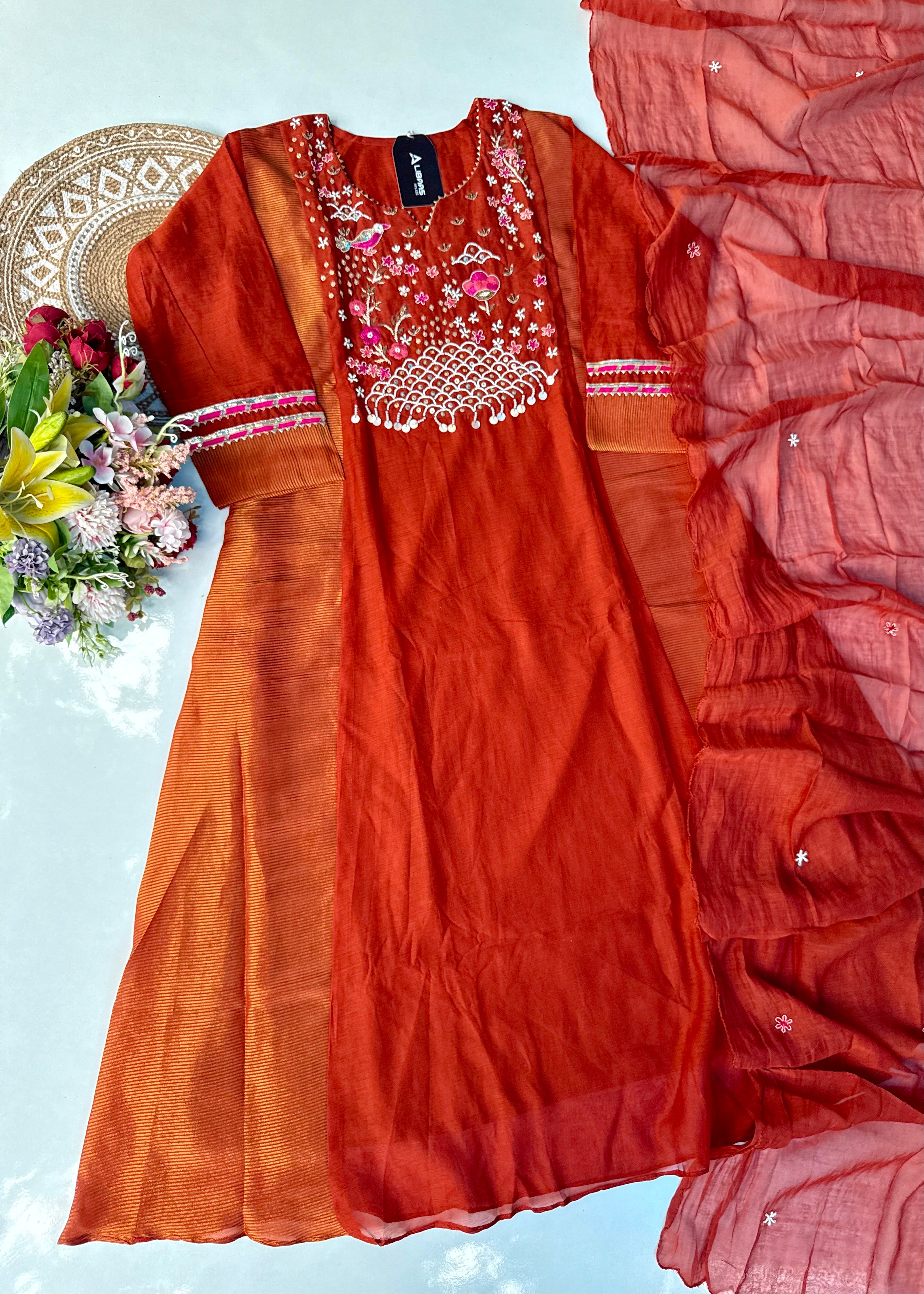 “Ishani” Premium Mul Chanderi A line Anarkali Kurta Set