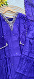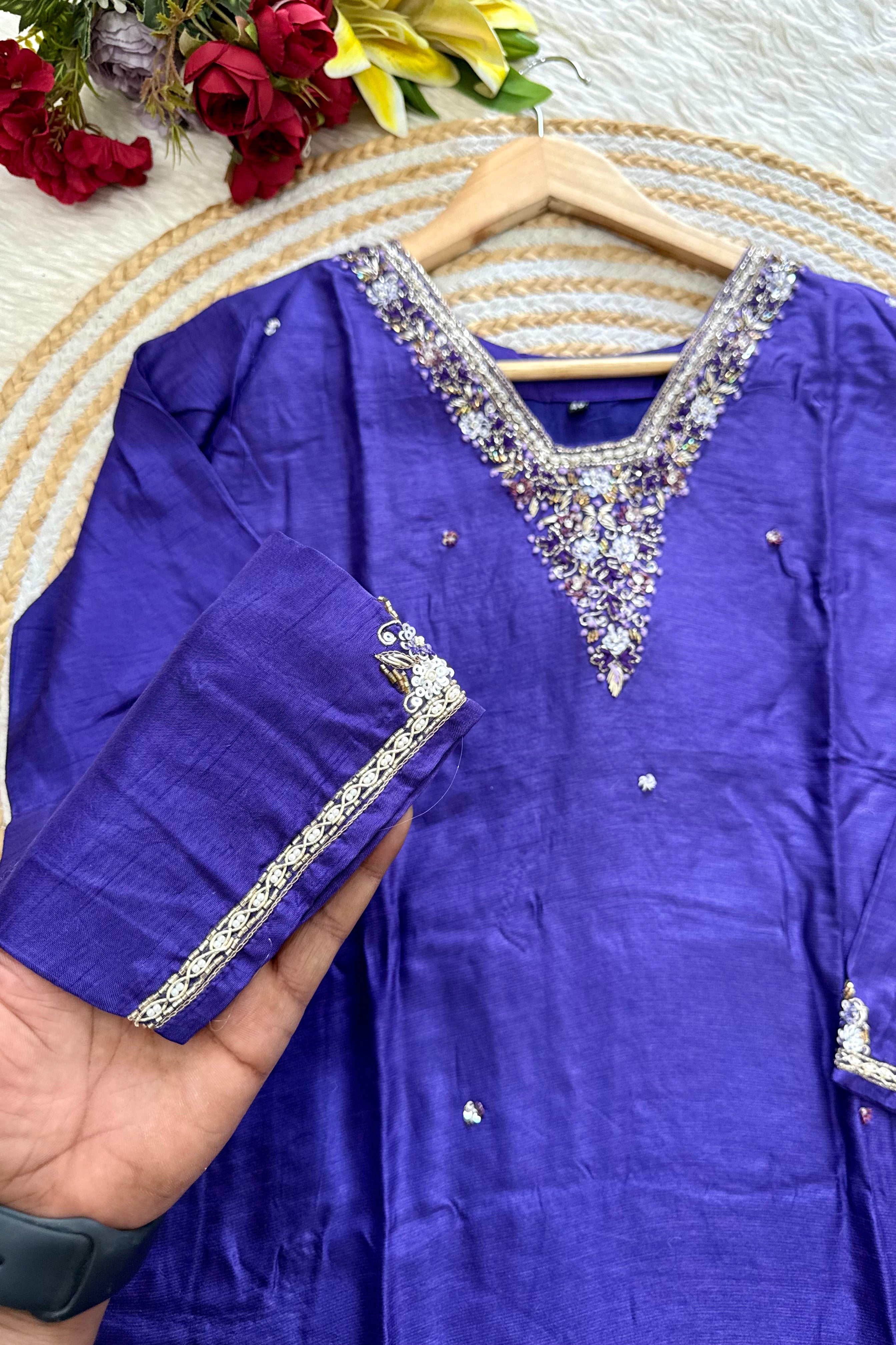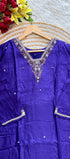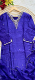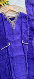 Premium dola silk kurti with handwork on the yoke & sleeves of the kurta with a side scalping handwork organza dupatta and a silk bottom