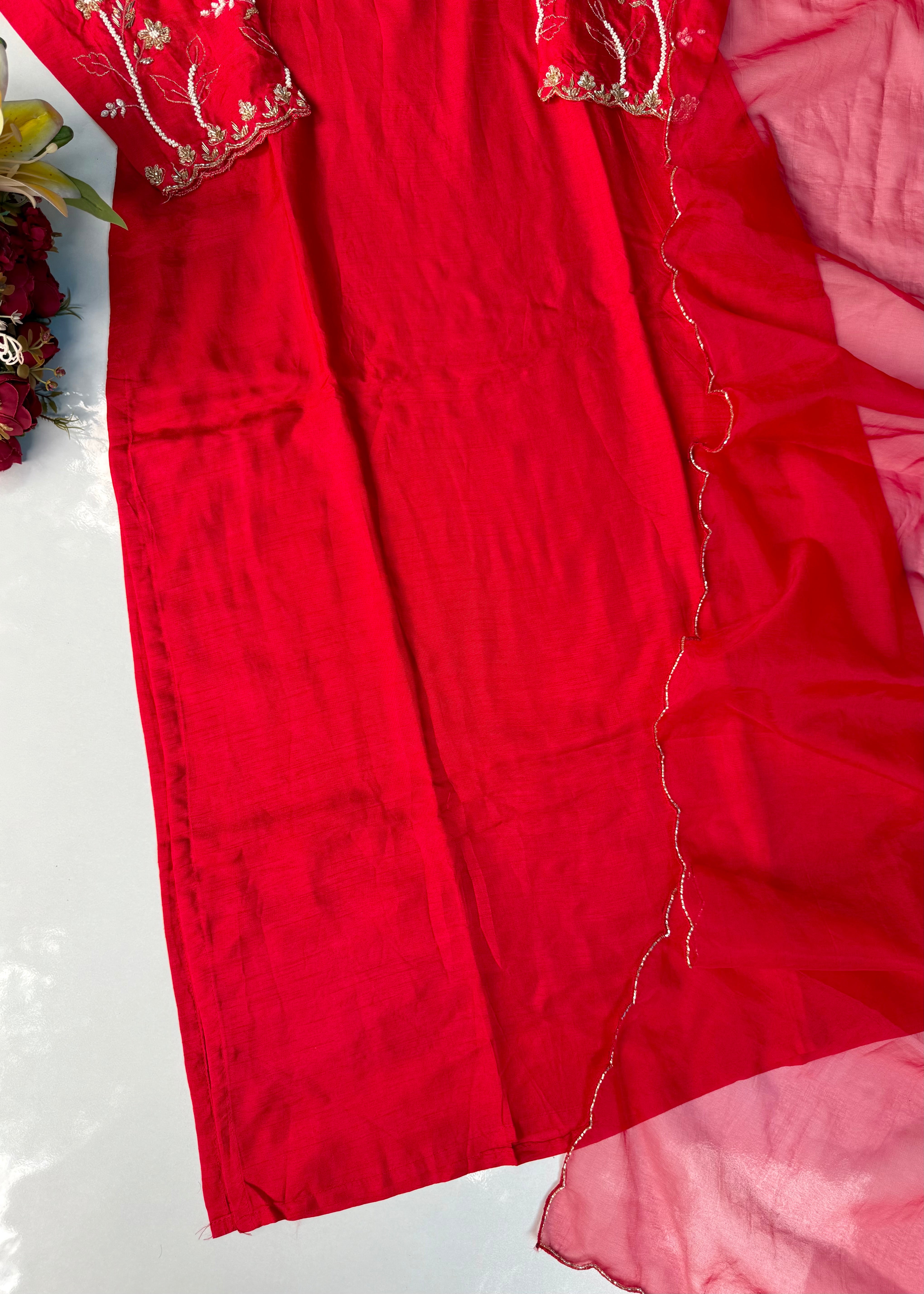 “Ivory” Beautiful Red Dola silk handcrafted kurta set