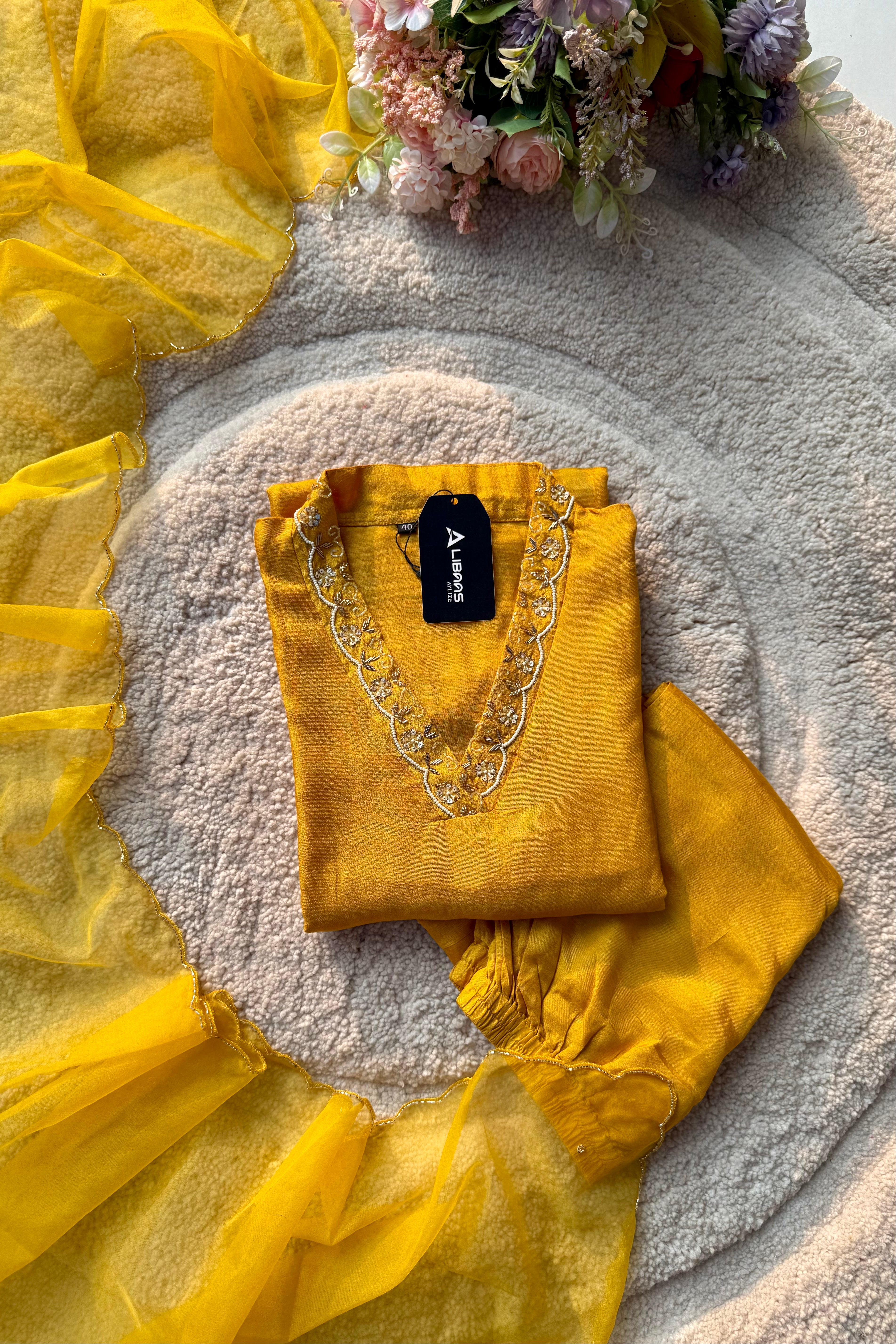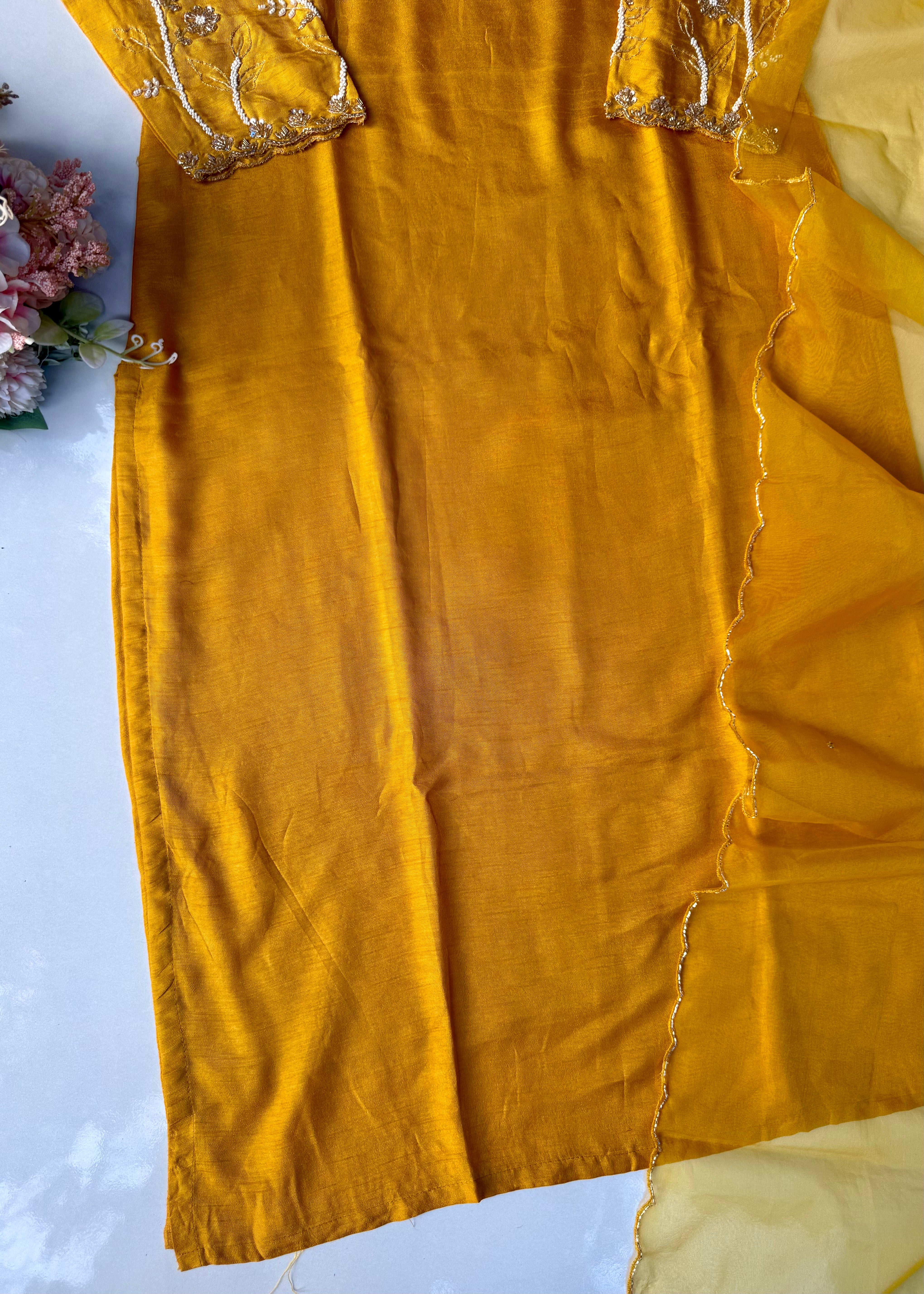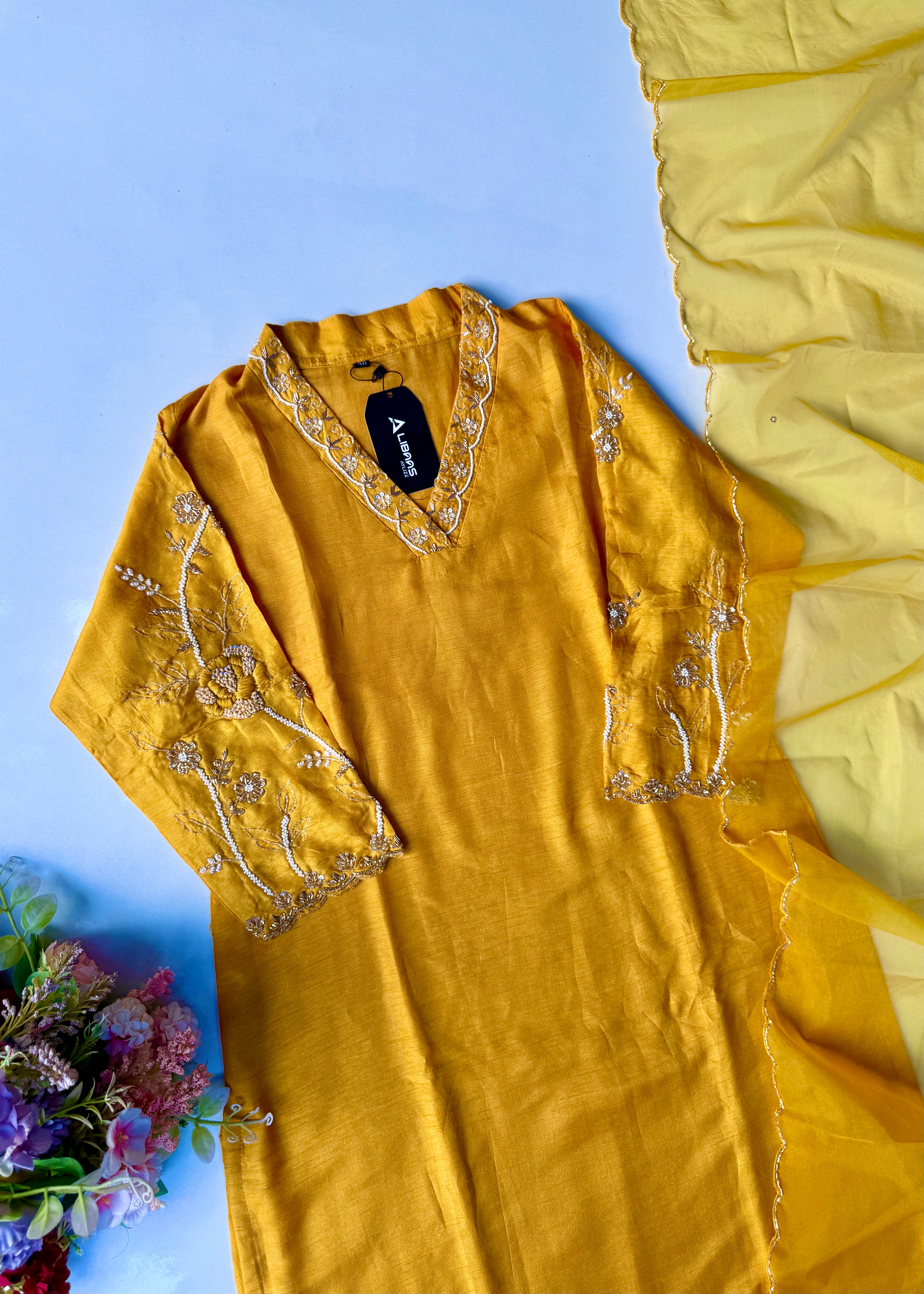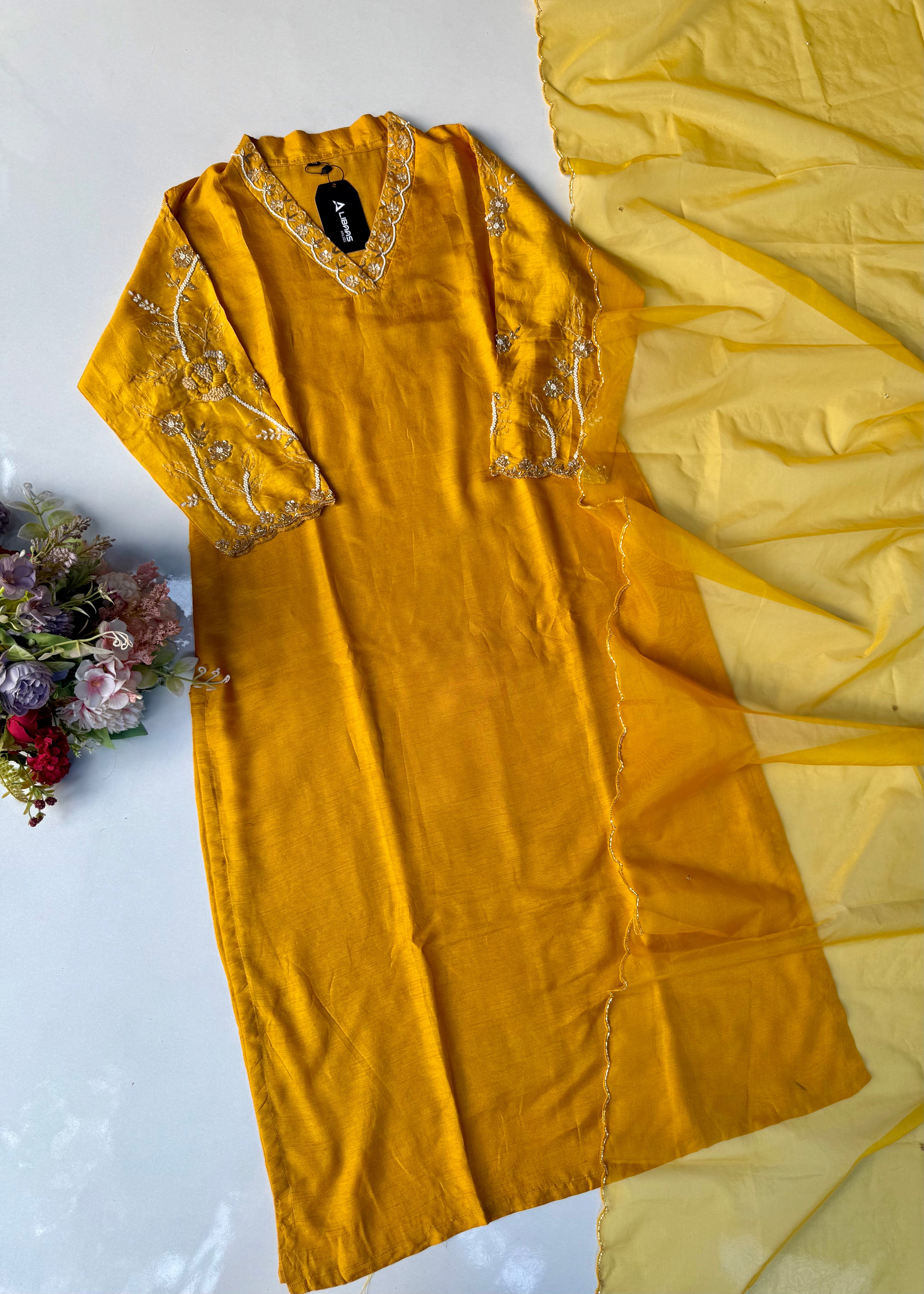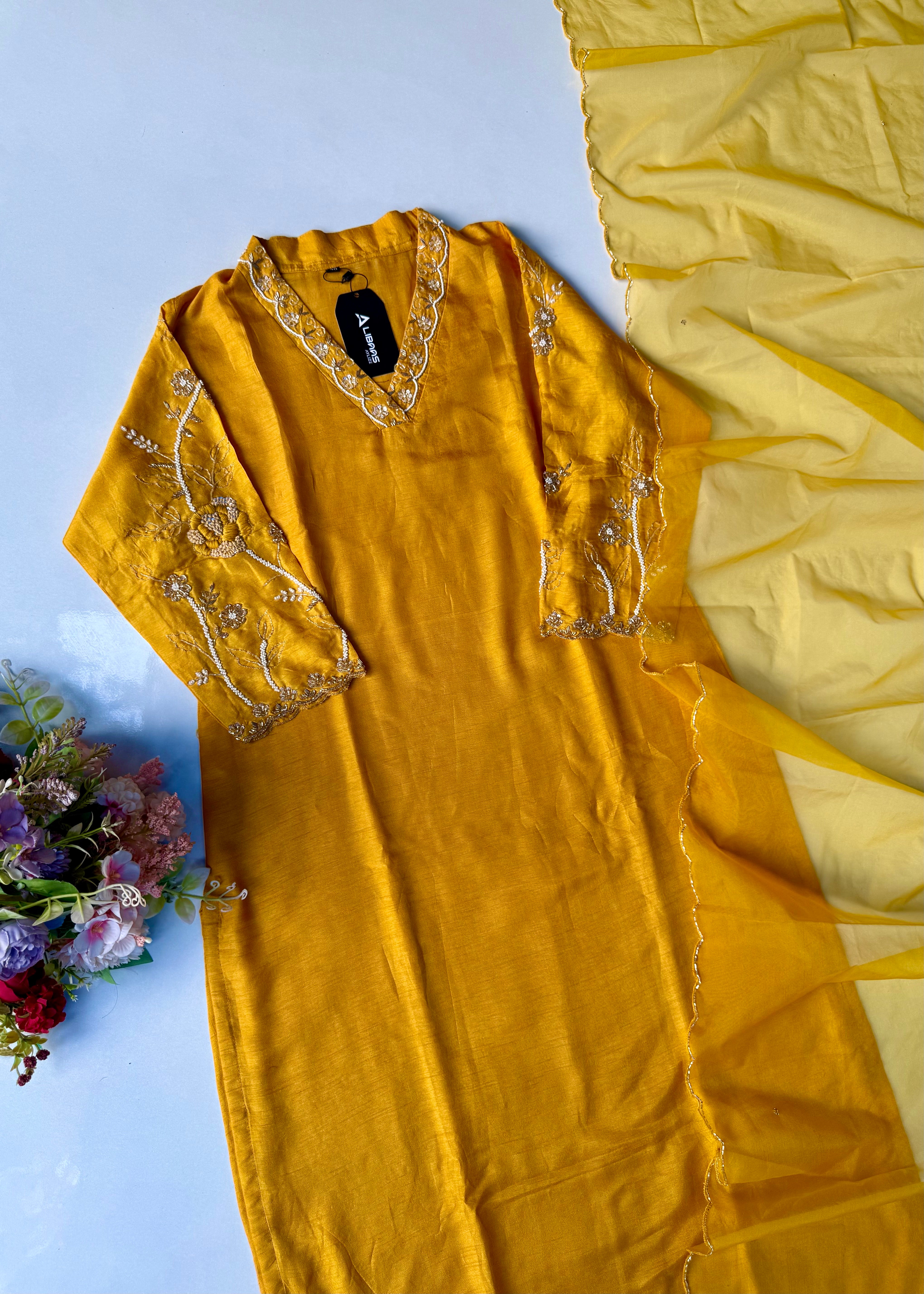 “Ivory” Beautiful Dola silk handcrafted kurta set