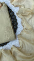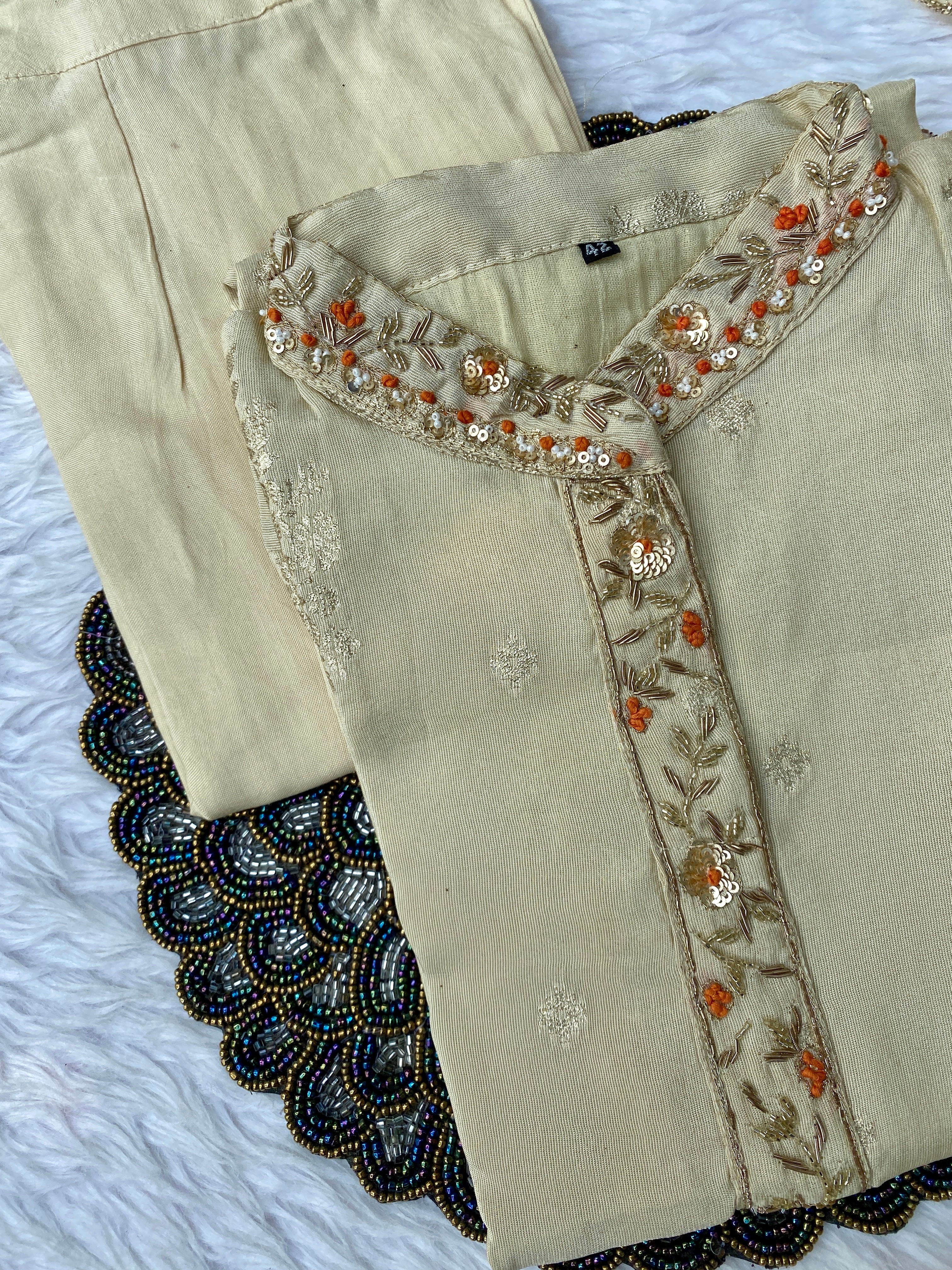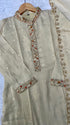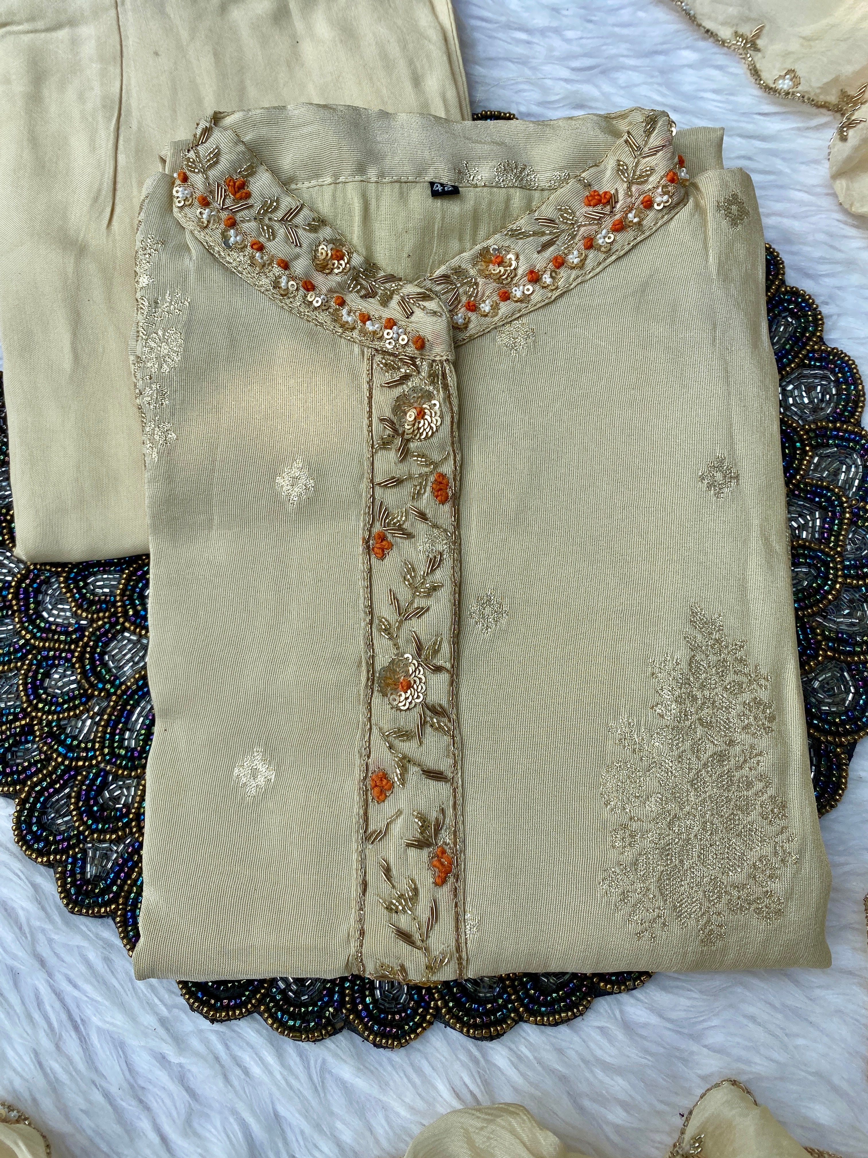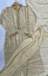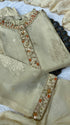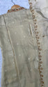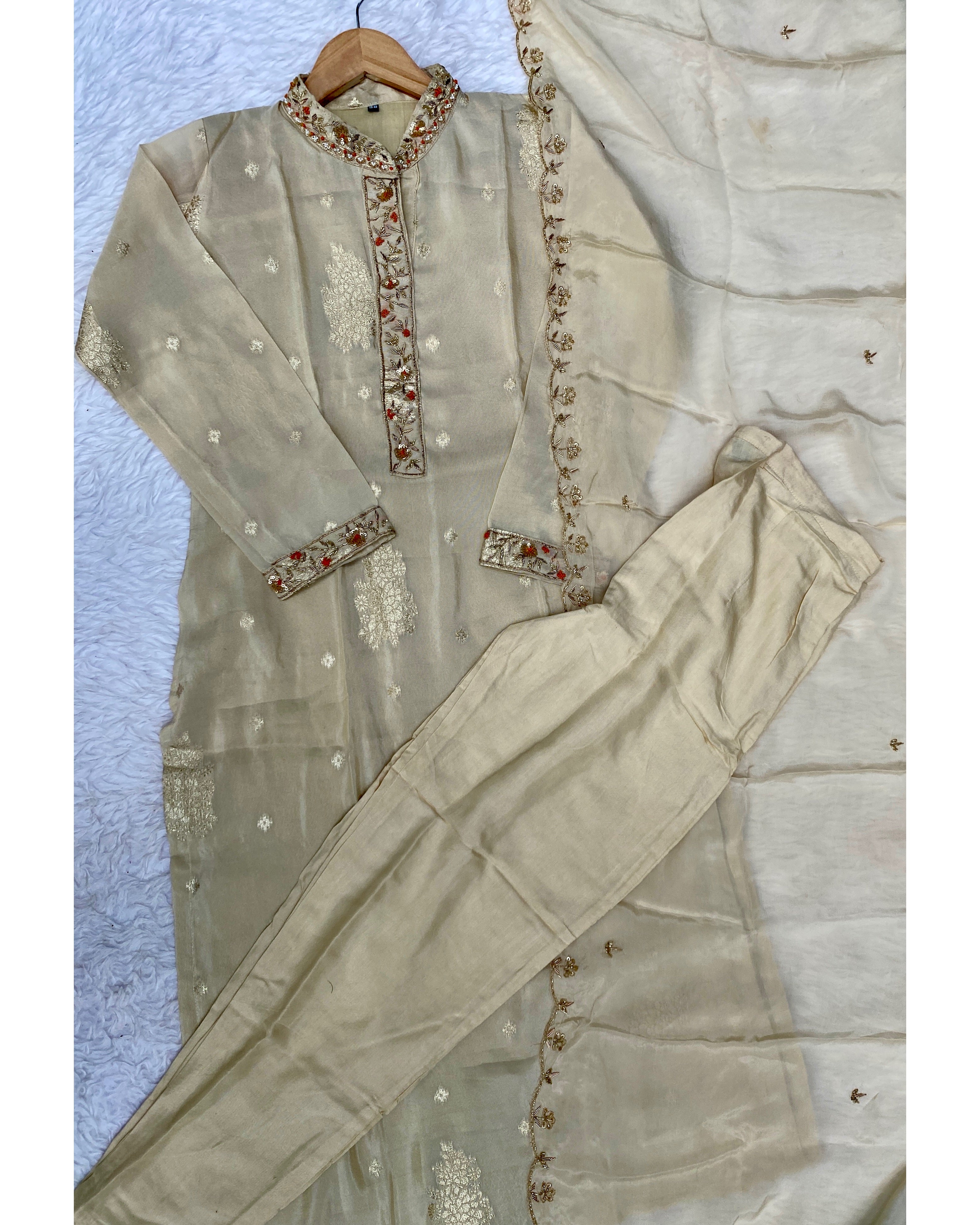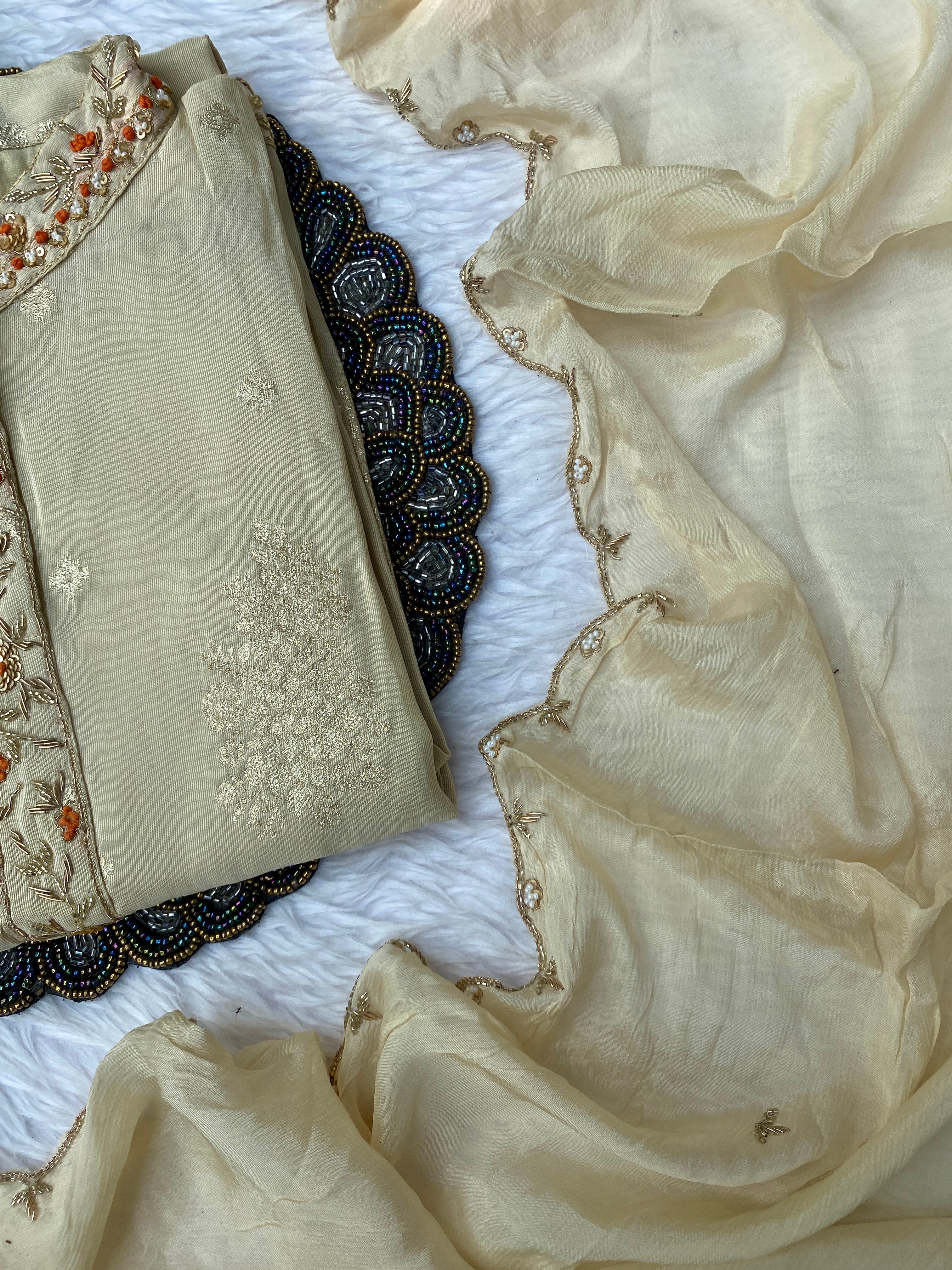 Tissue silk kurta set with handwork with a Chinnon dupatta with all side handwork & lace work & detailing and a plane silk bottom