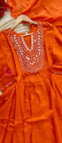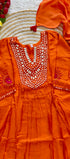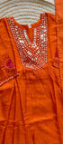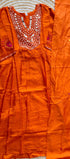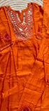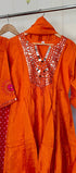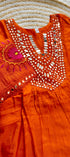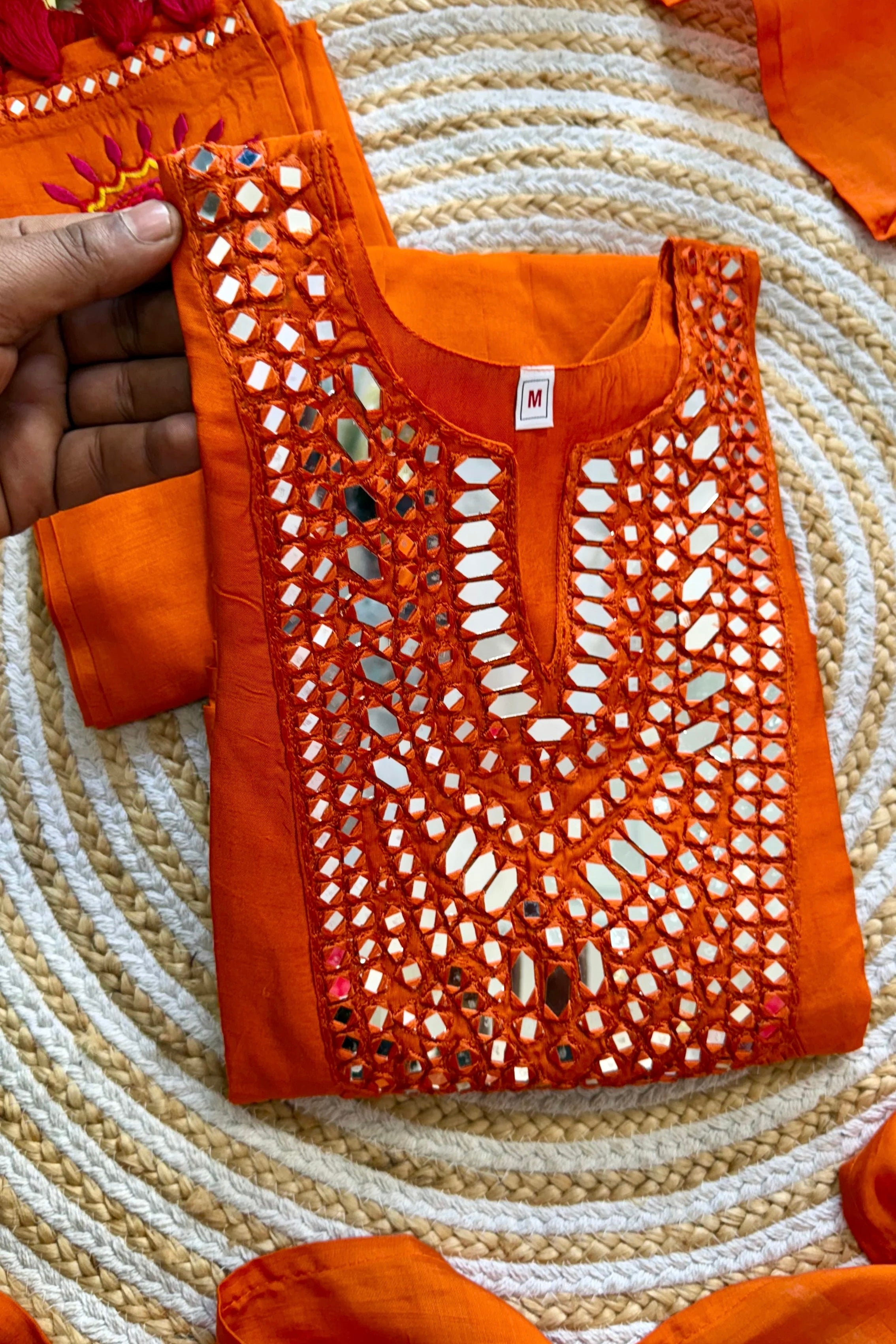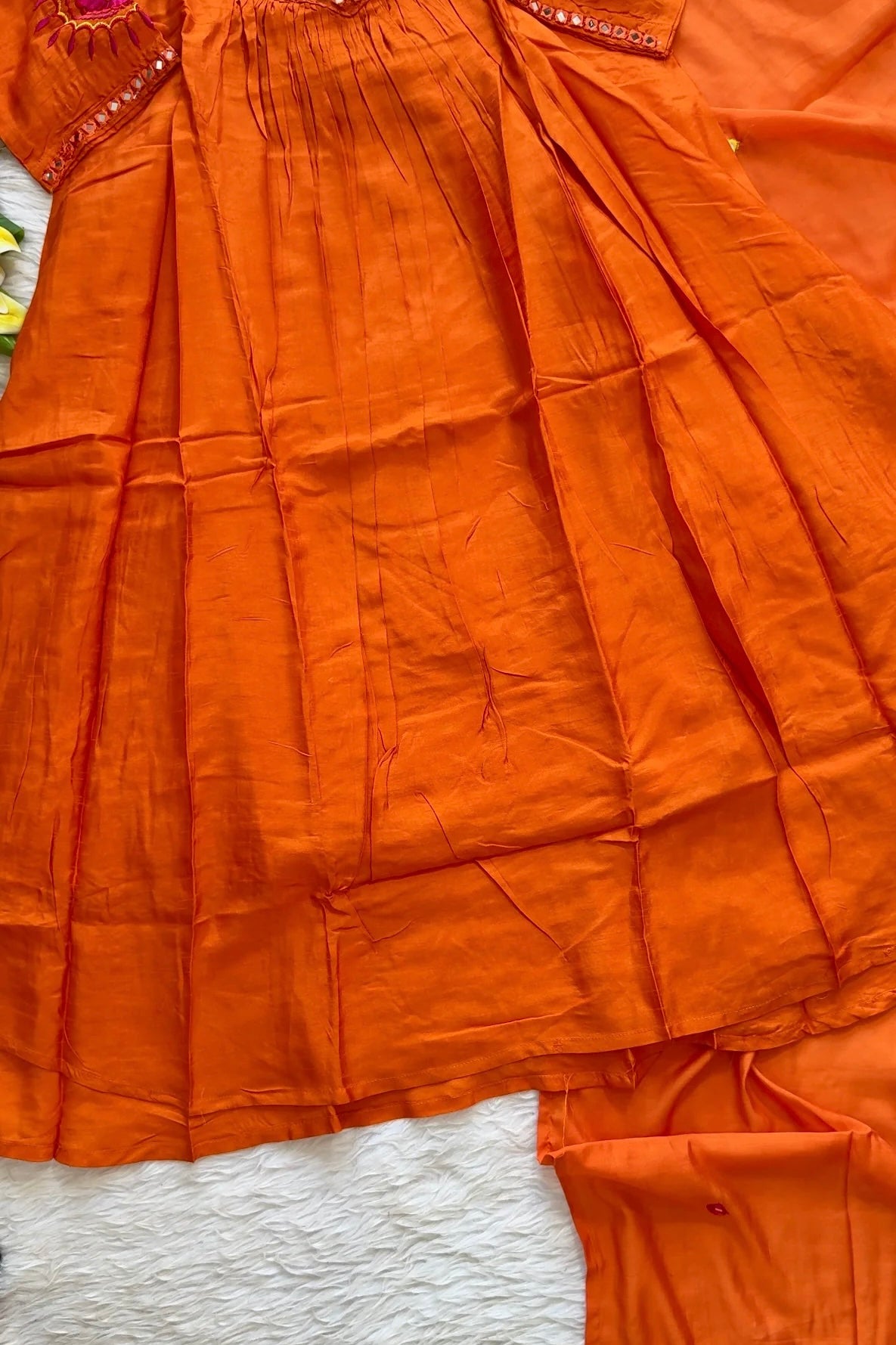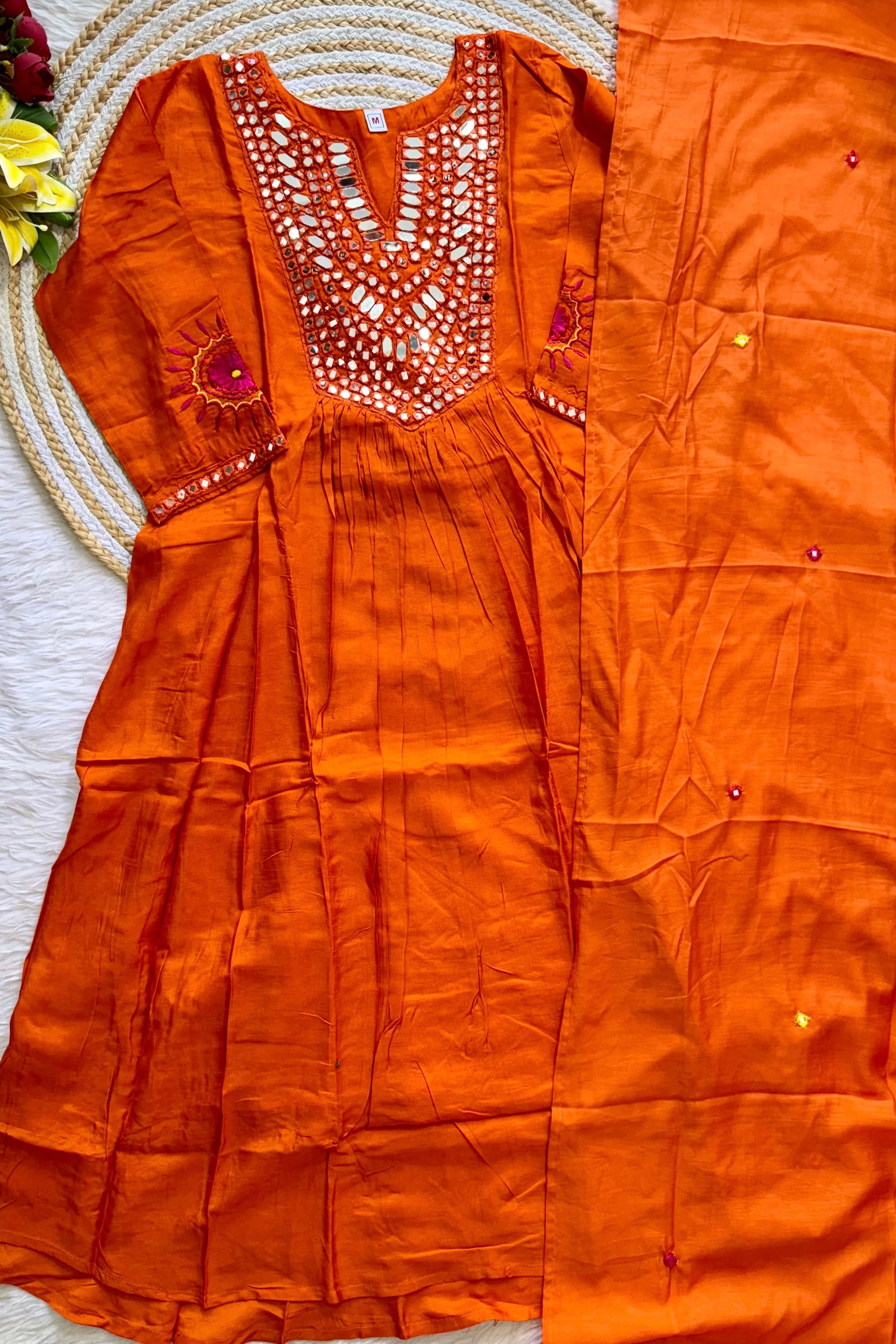 Premium mul Chanderi anarkali kurti with mirror work on the yoke & sleeves of the kurta with a beautiful mul Chanderi dupatta and a mul Chanderi bottom with work