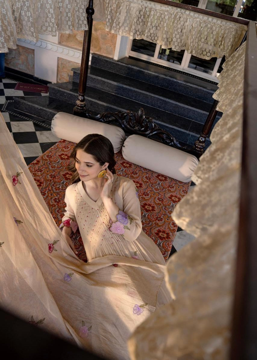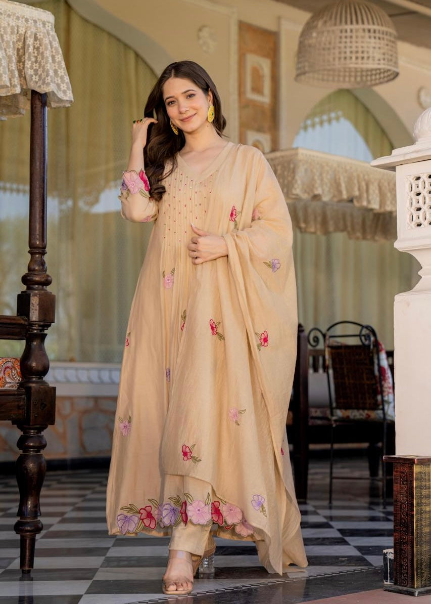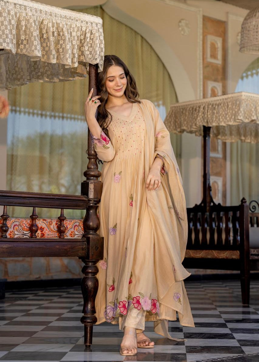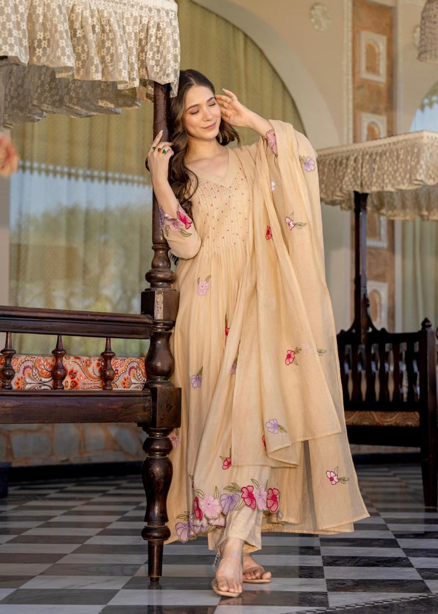 “Jhanvi” Luxury Mul Chanderi Anarkali Set | Appliqué Embroidery | Dupatta & Bottom