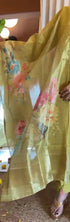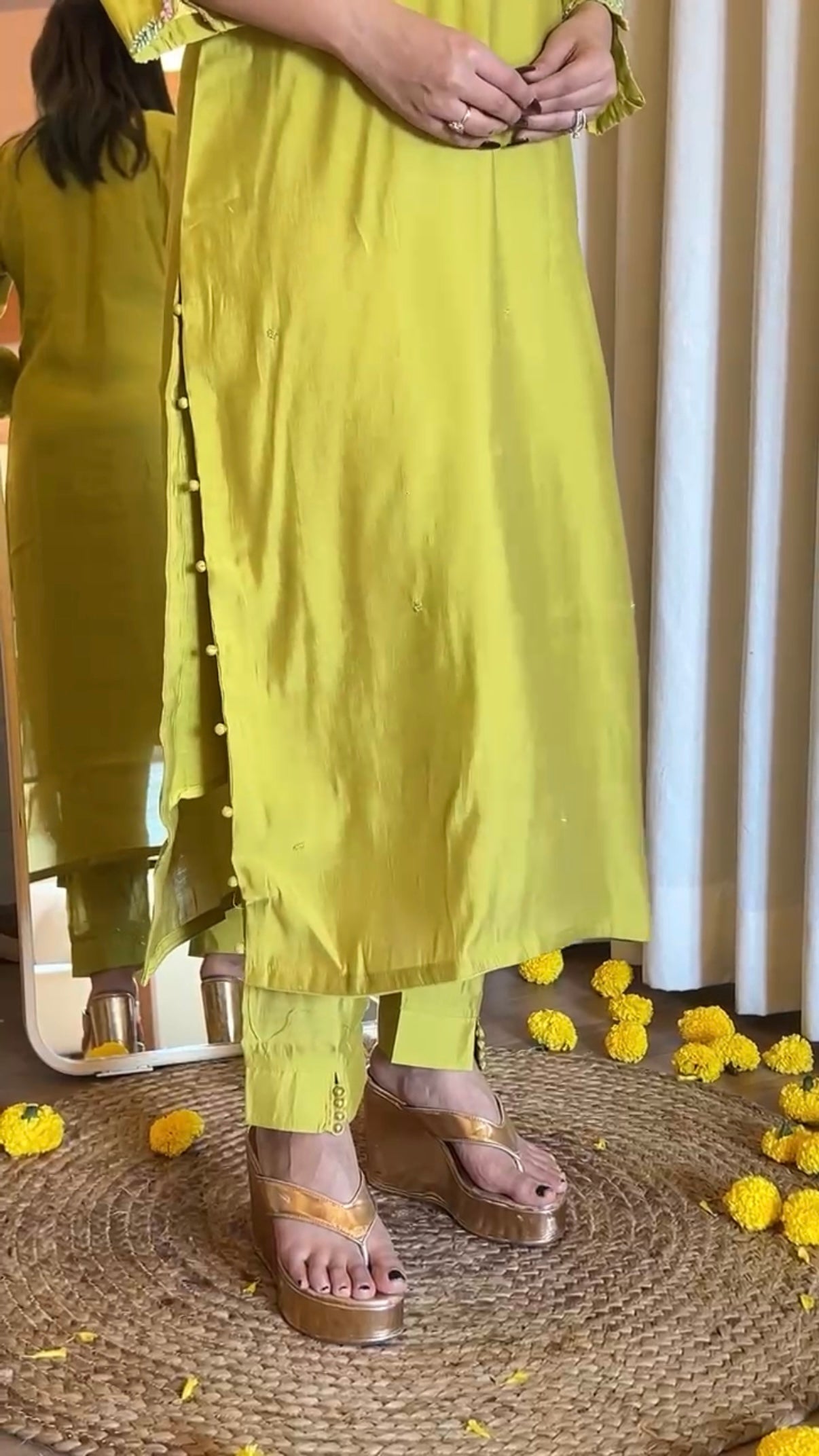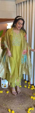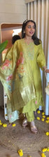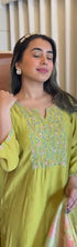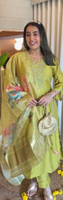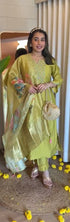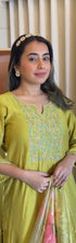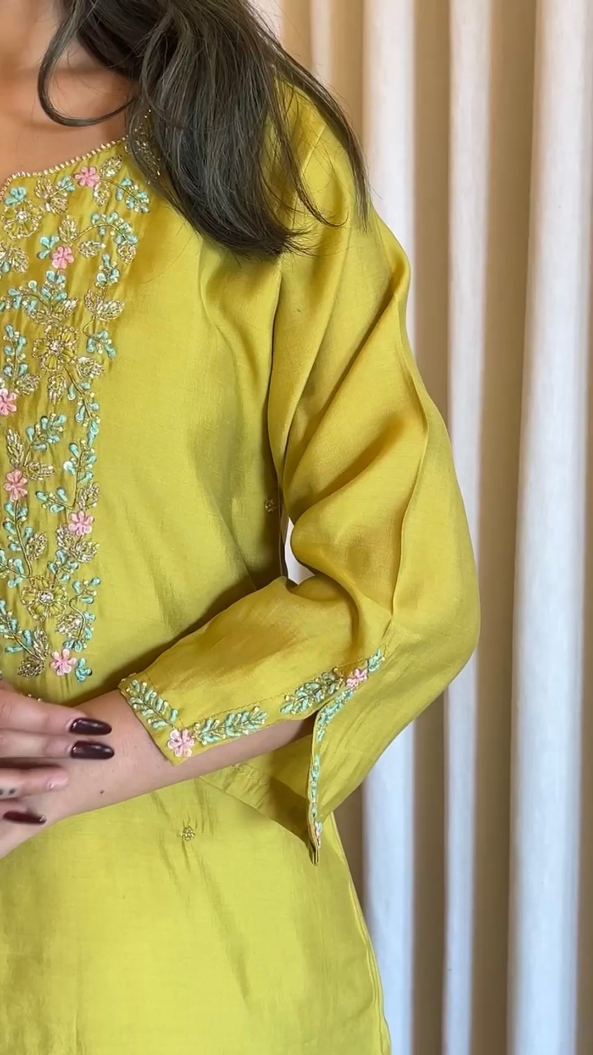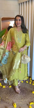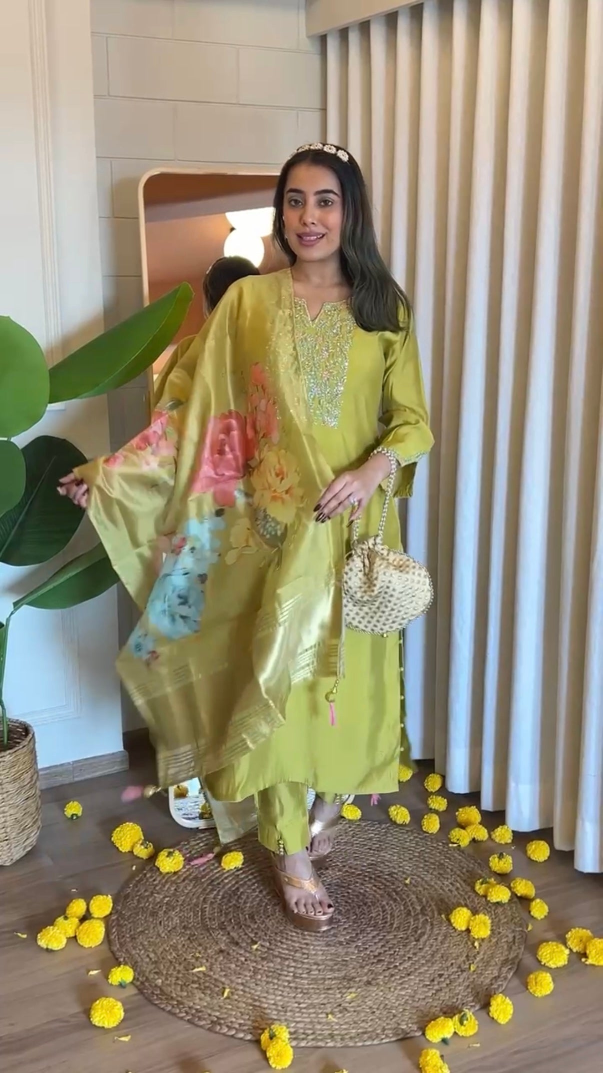 Premium Roman silk kurti with handwork on the yoke & sleeves of the kurta with a printed organza dupatta and a silk bottom