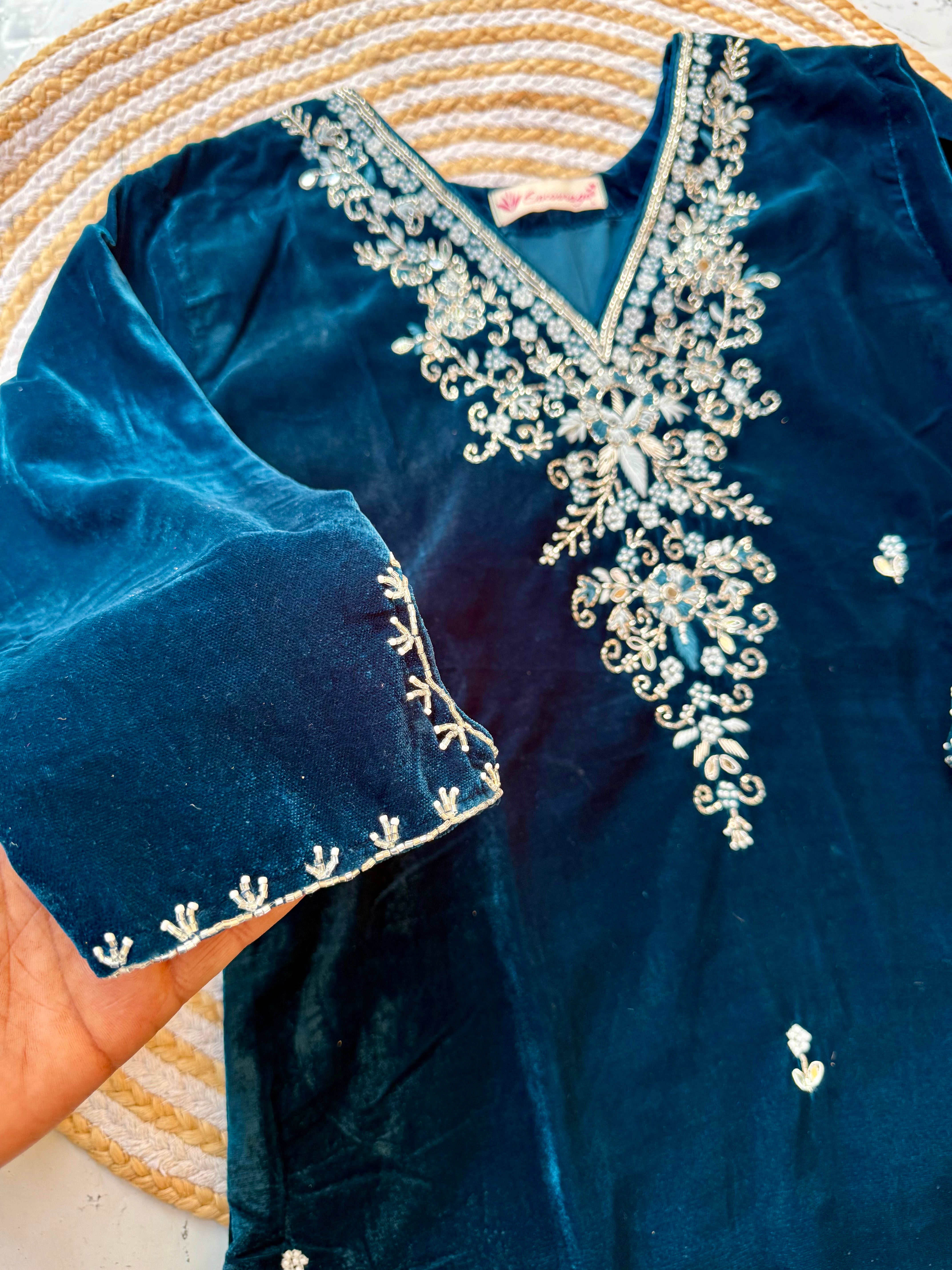 “Kiara” Peacock blue heavy velvet suit set