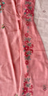 - Fine multi-color thread embroidery with floral motifs
