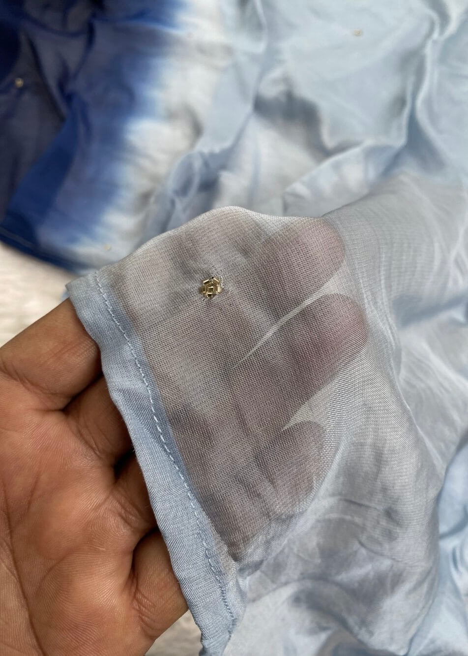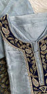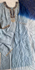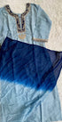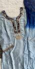 Beautiful blue shade Handwork kurta set with beautiful handwork on the yoke and sleeve of the kurta with a Double tone long Chinnon dupatta and a dola silk bottom