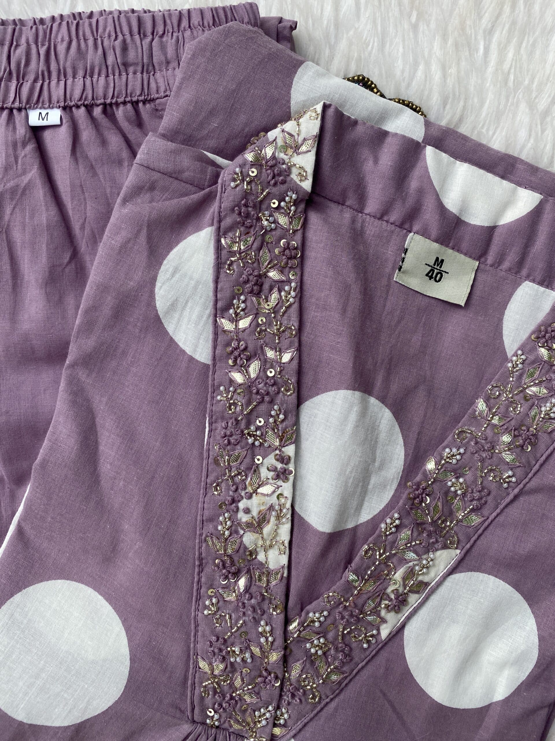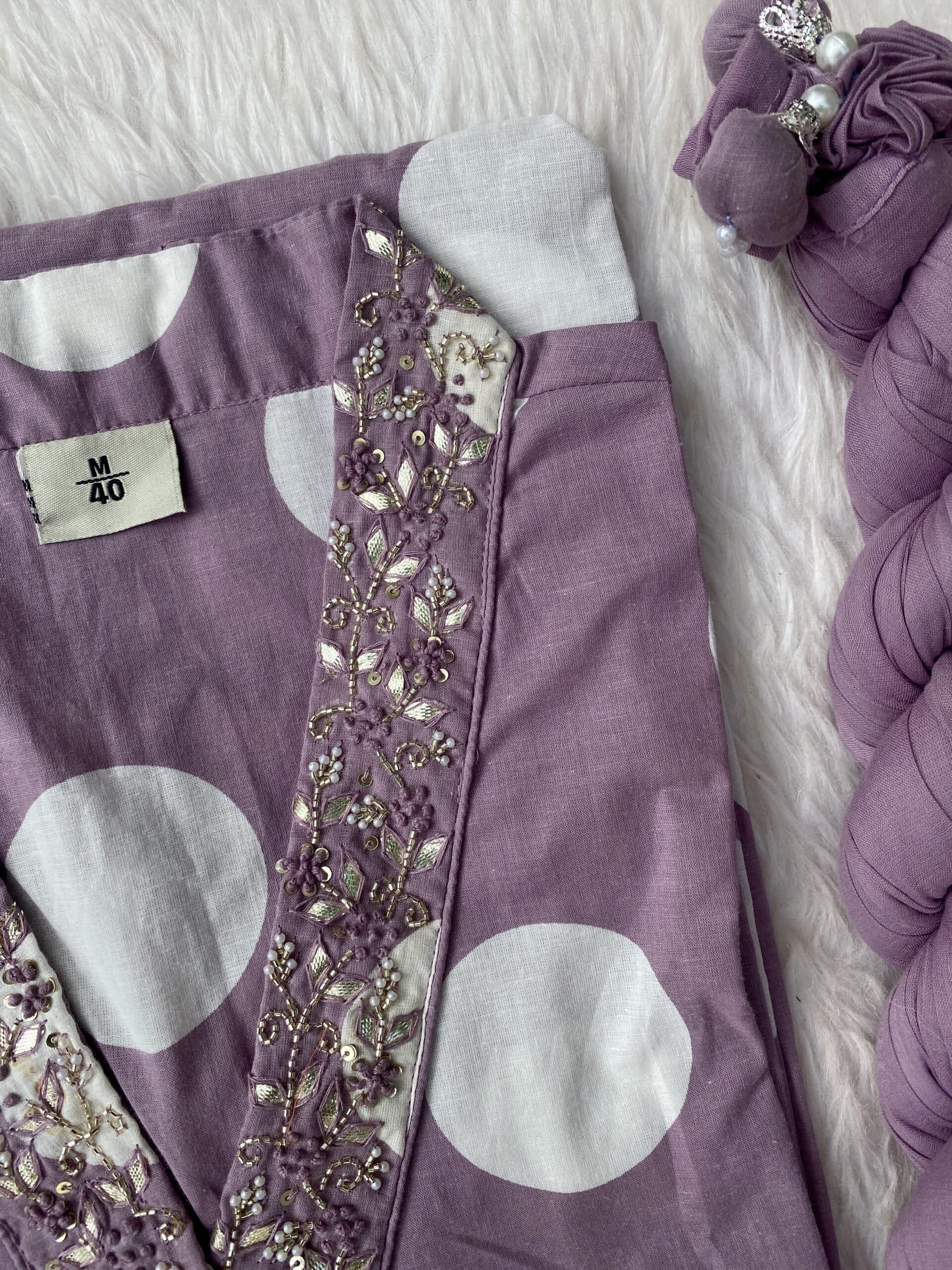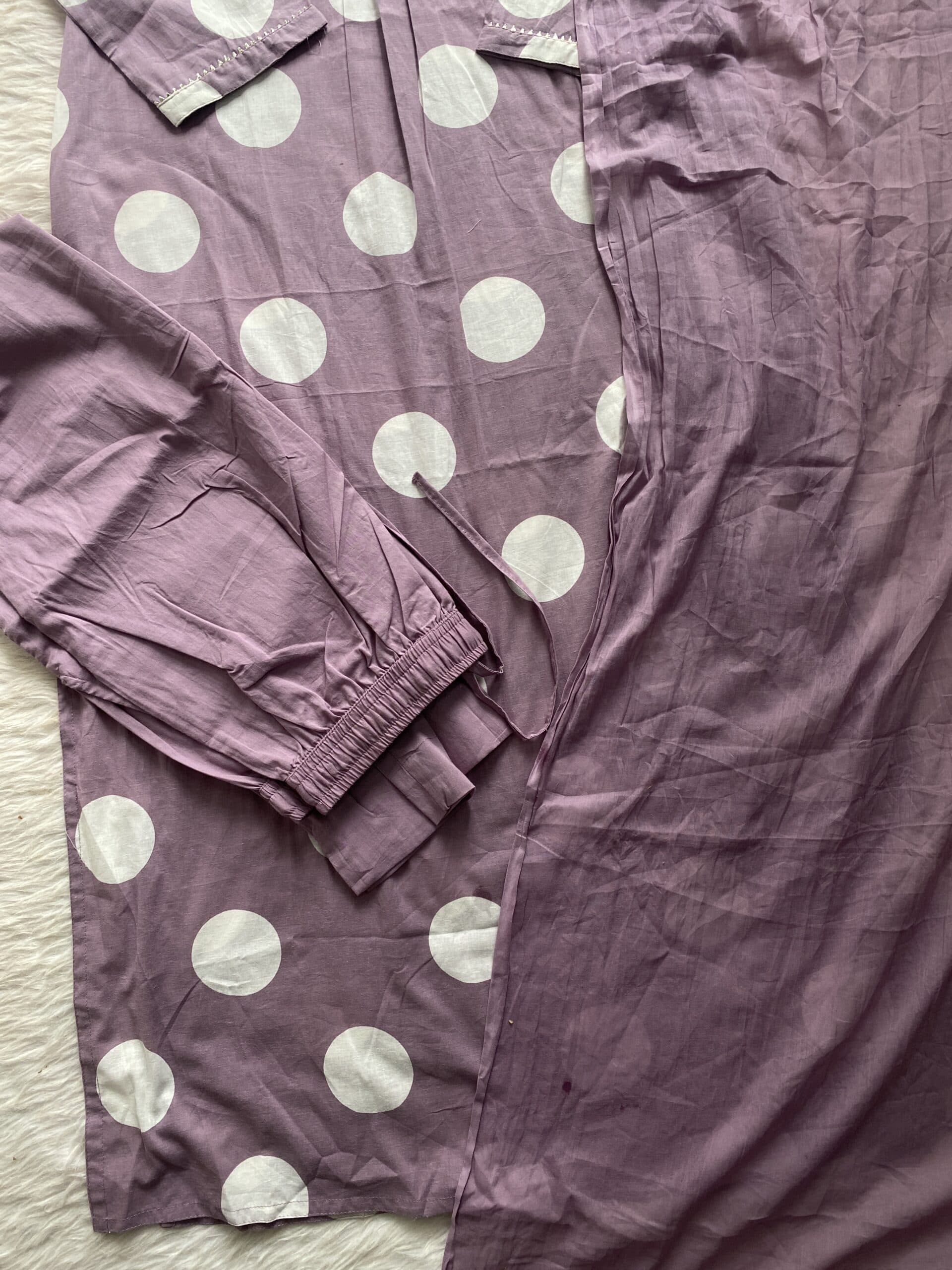 “Yarana” V neck cotton Polka Dots kurti dupatta bottom set