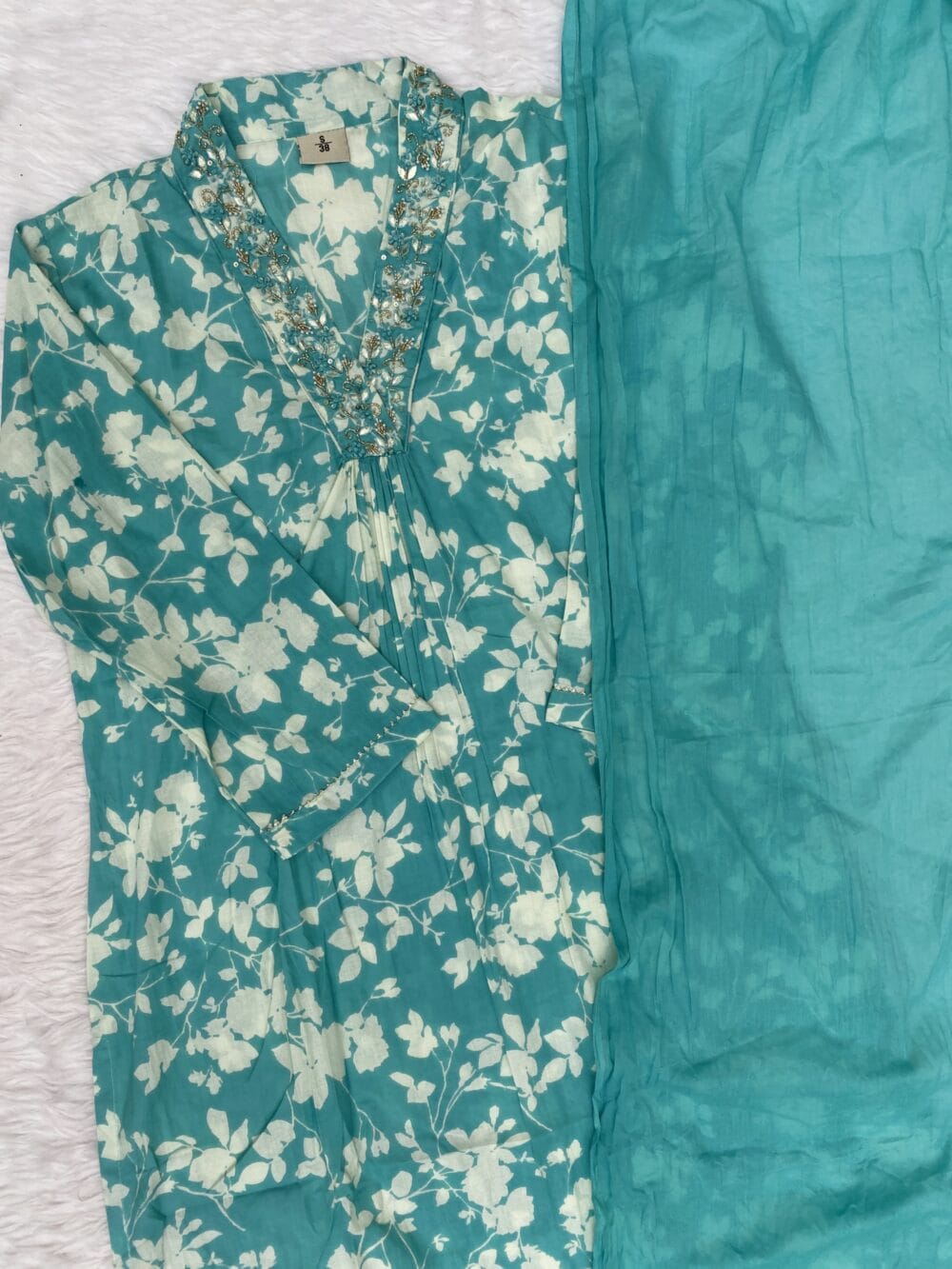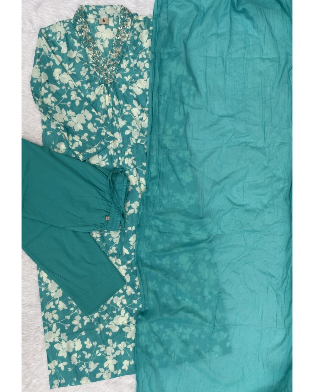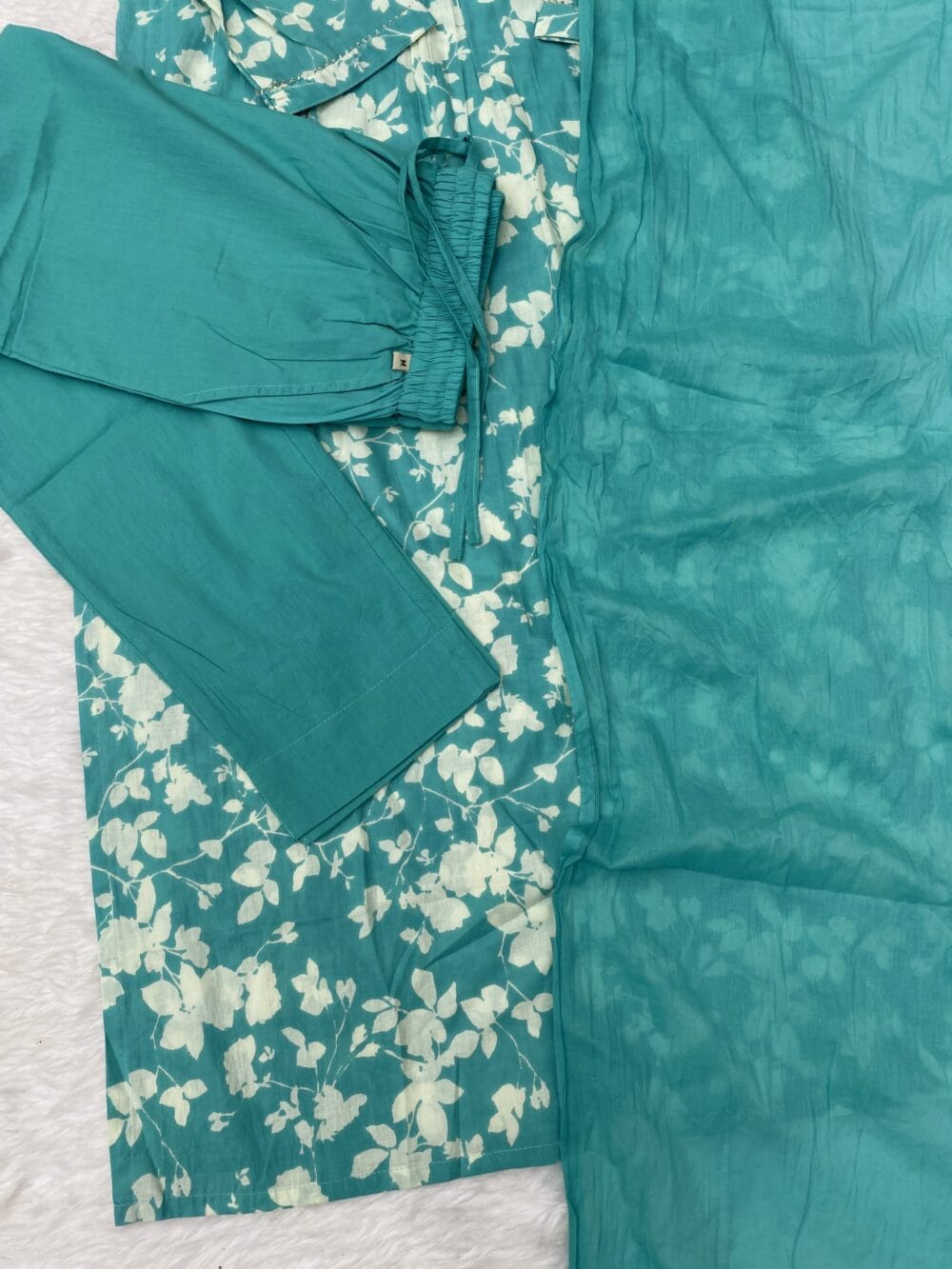 “Zikr” V neck cotton printed kurti dupatta bottom set