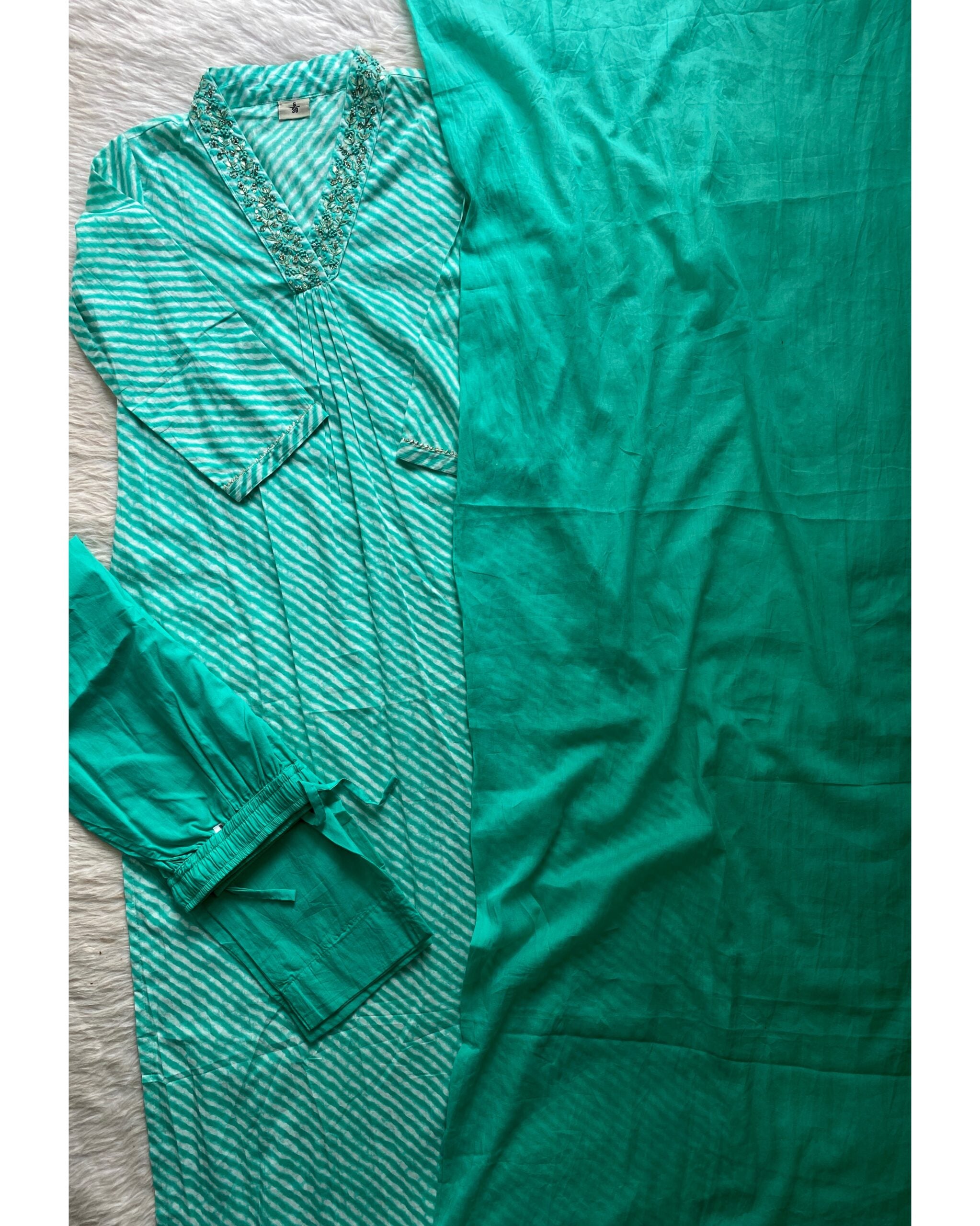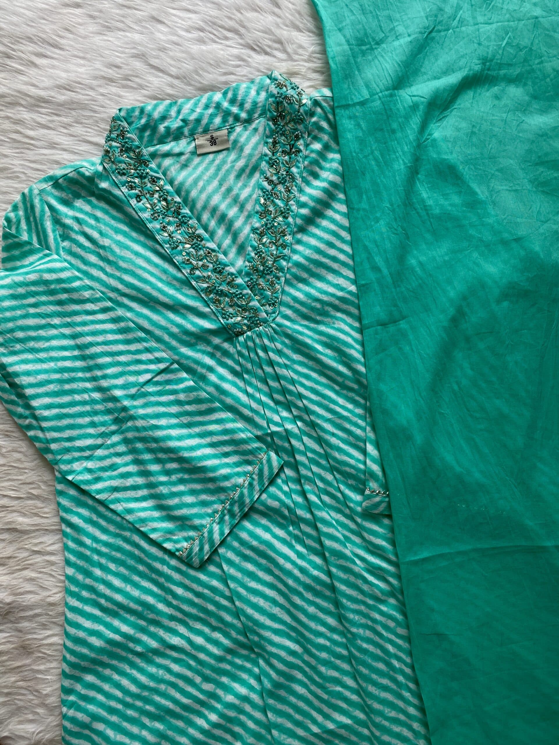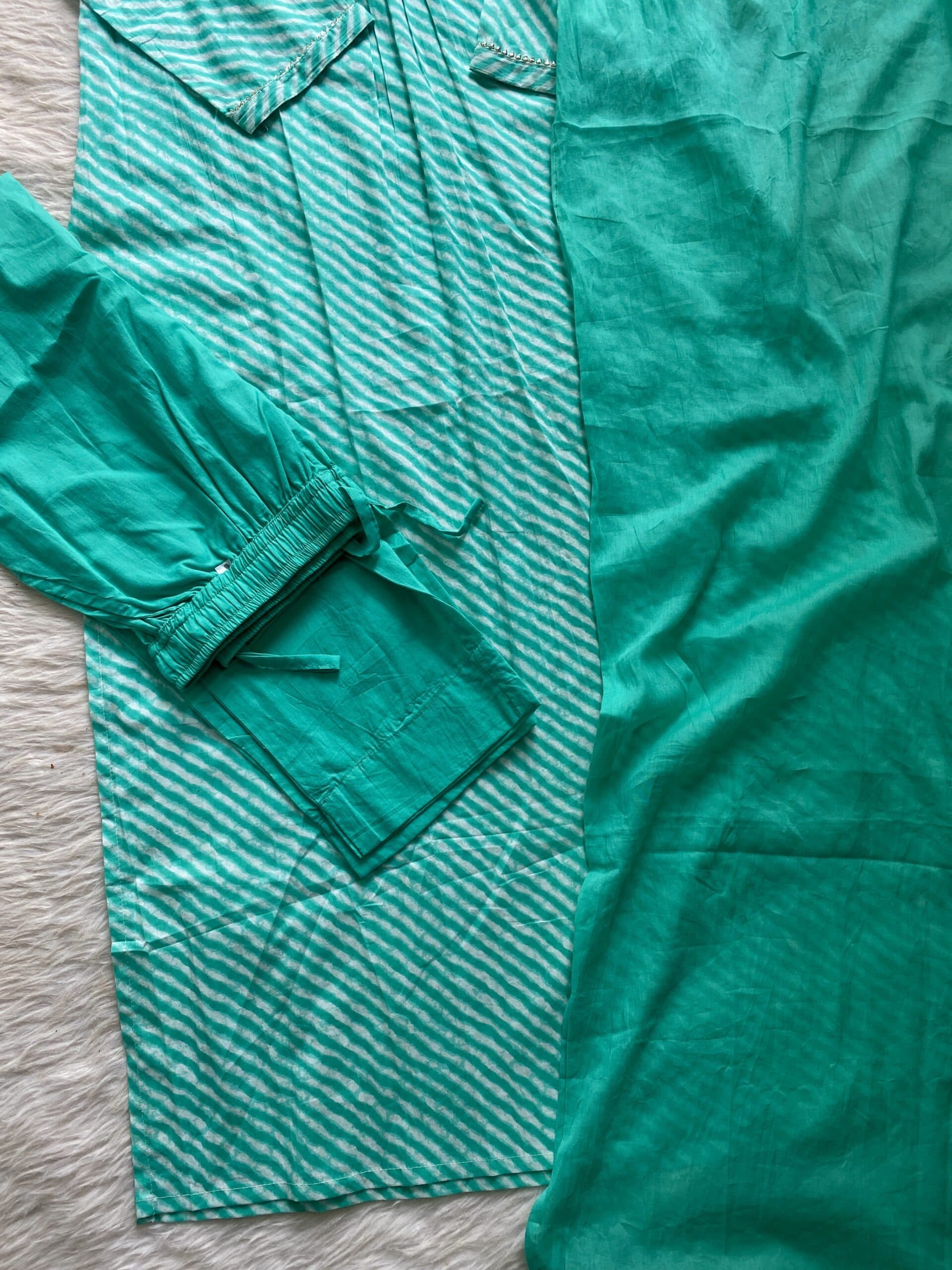 “Lihaaz” Bandani printed cotton kurti dupatta bottom set