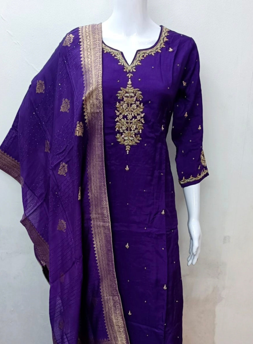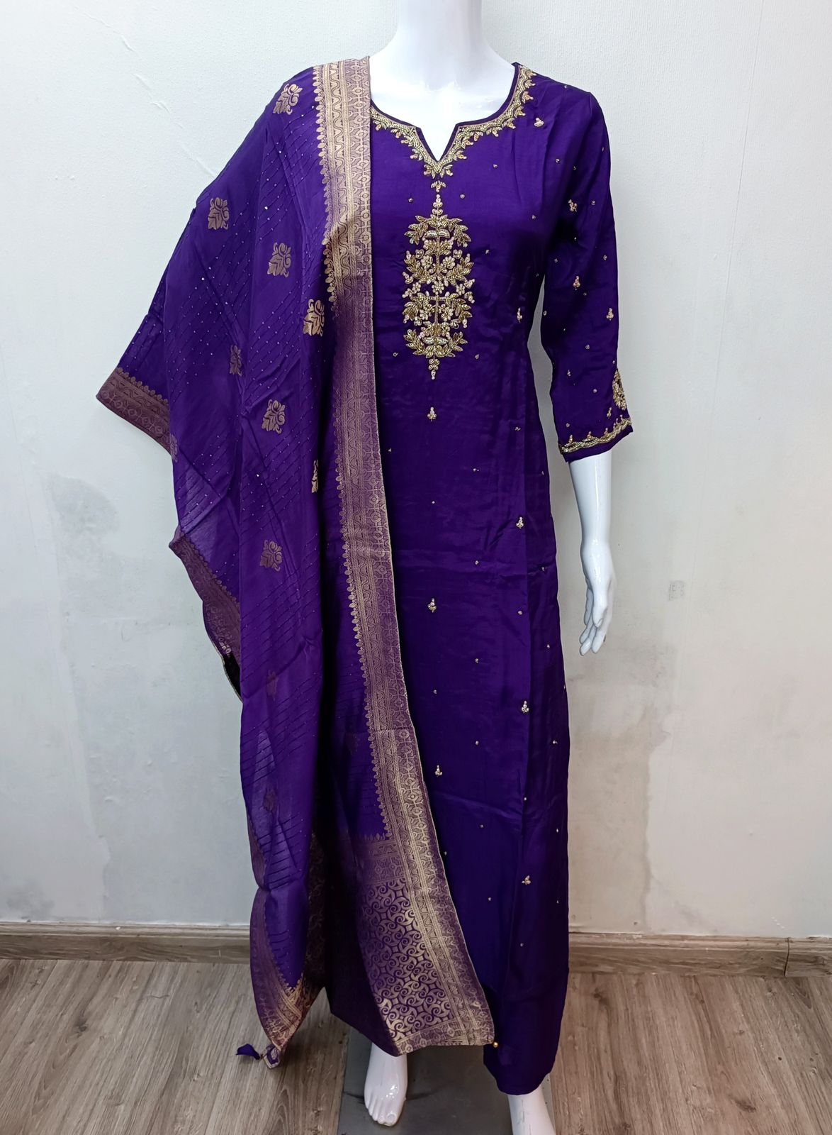 Premium range Heavy handwork on the yoke & Sleevs with a long woven bansari dupatta with a plane silk bottom
