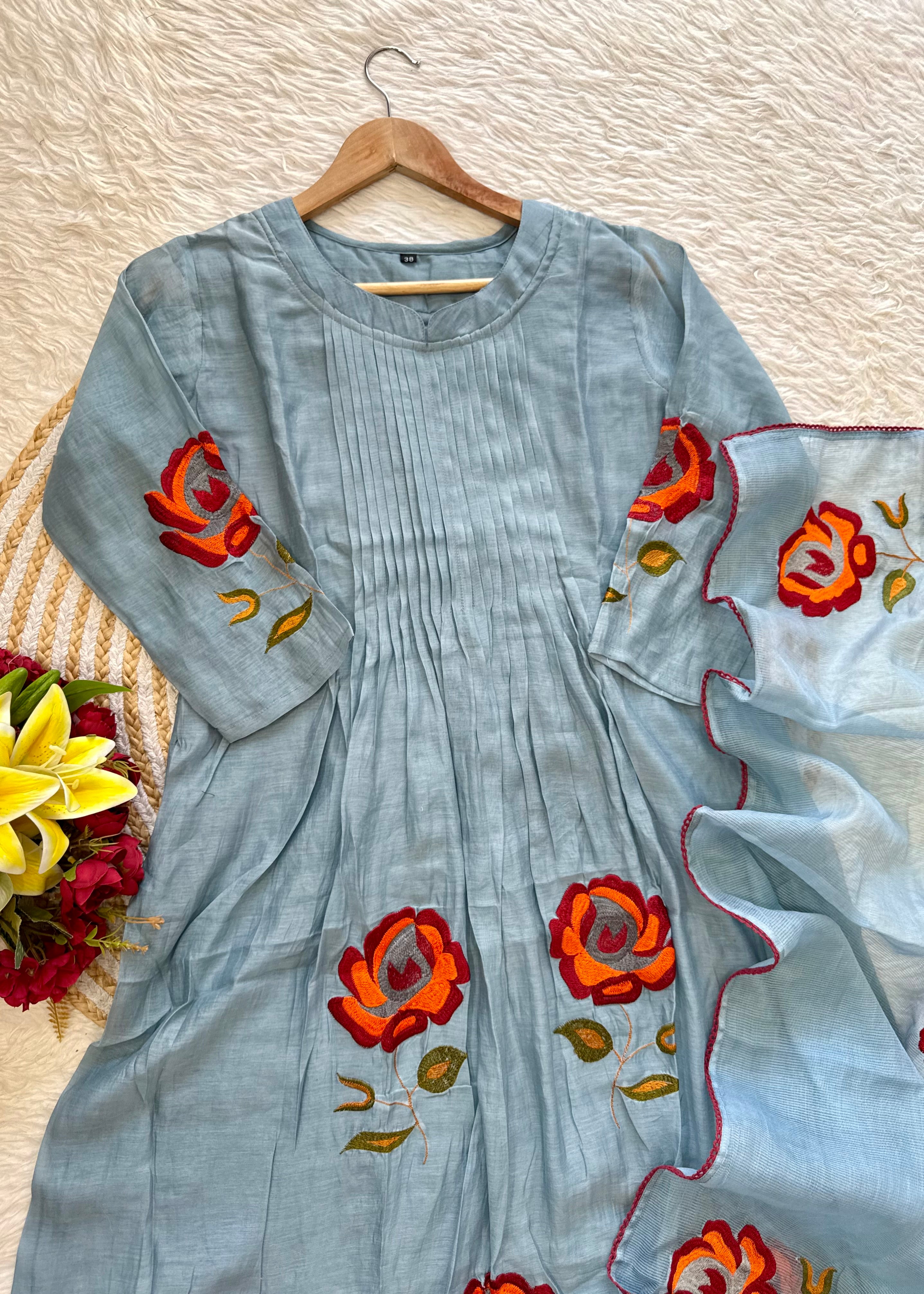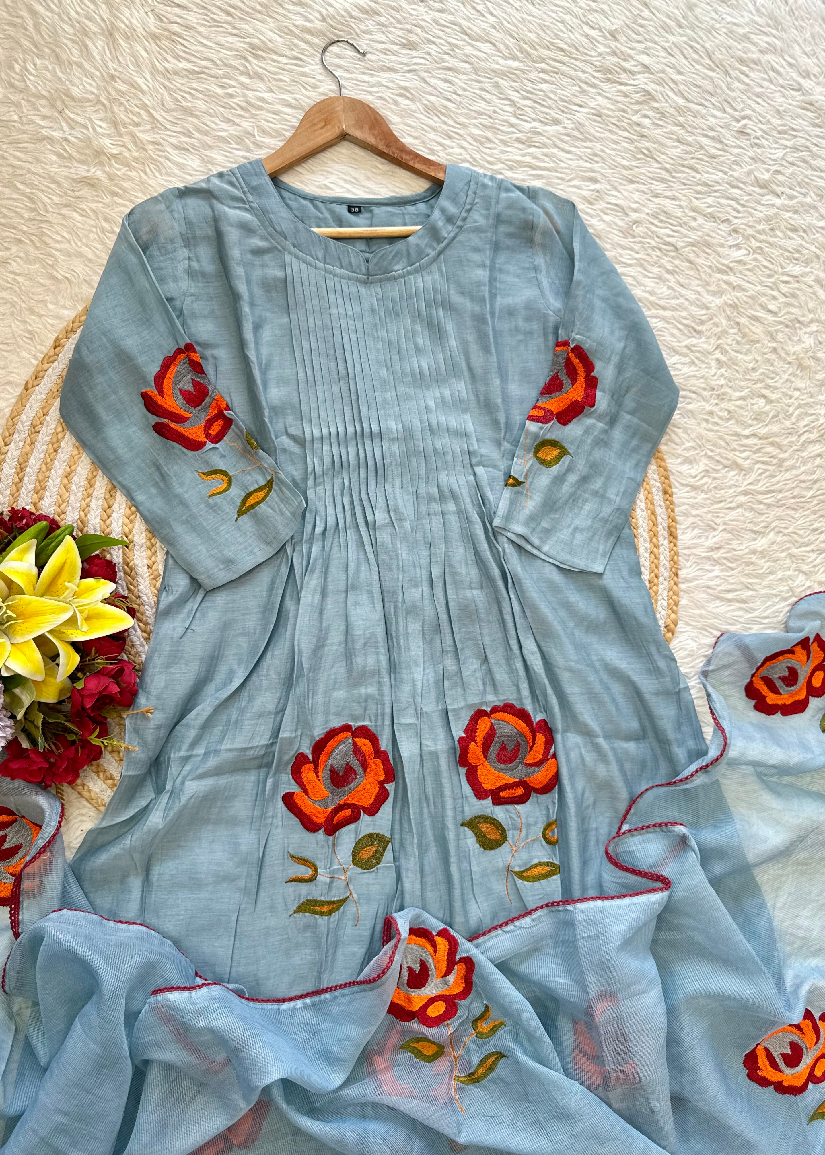 “MAHA” Beautiful Mul Chanderi anarkali kurti set