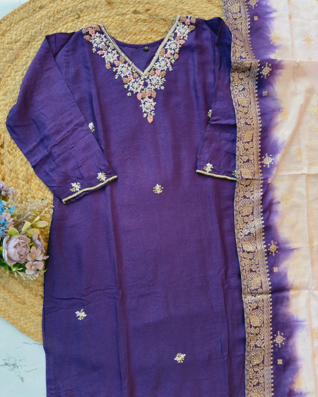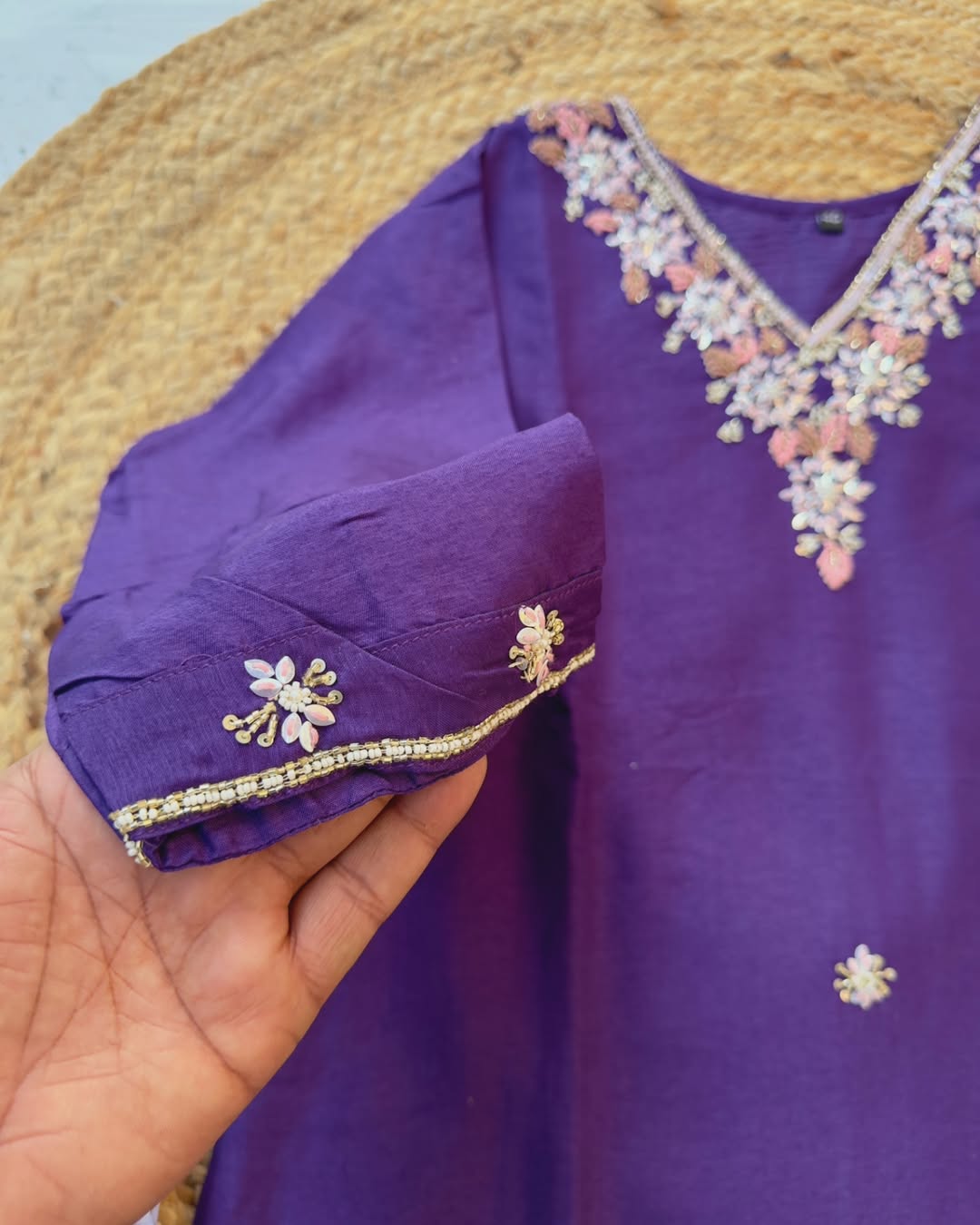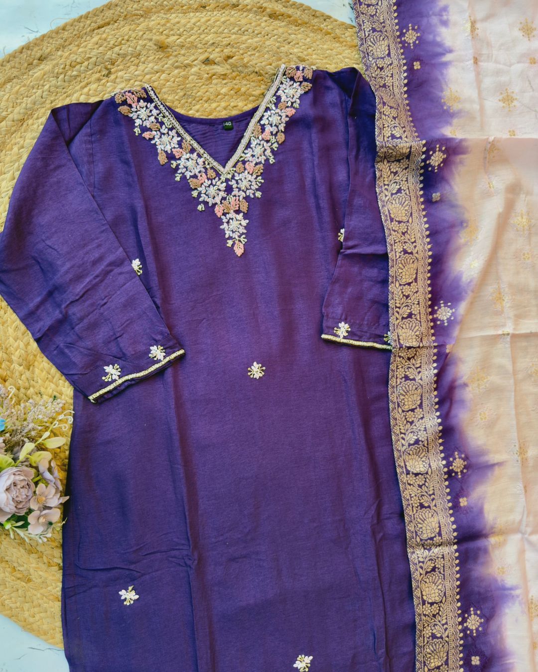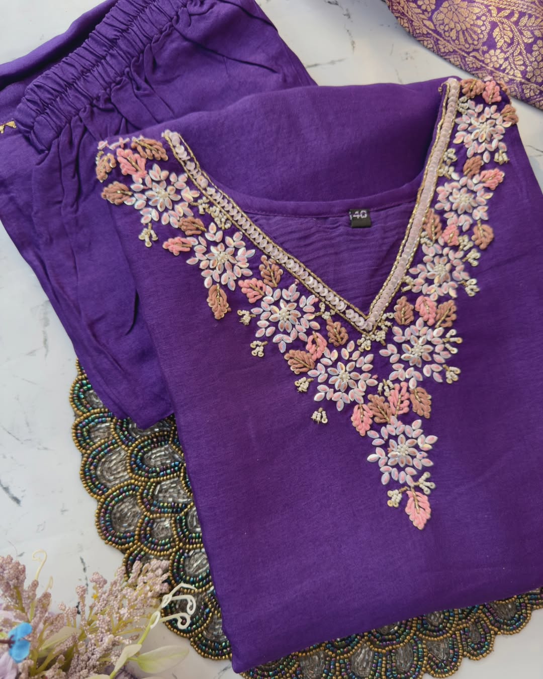 “Akansha” Purple dola silk handwork kurt set 🛍️