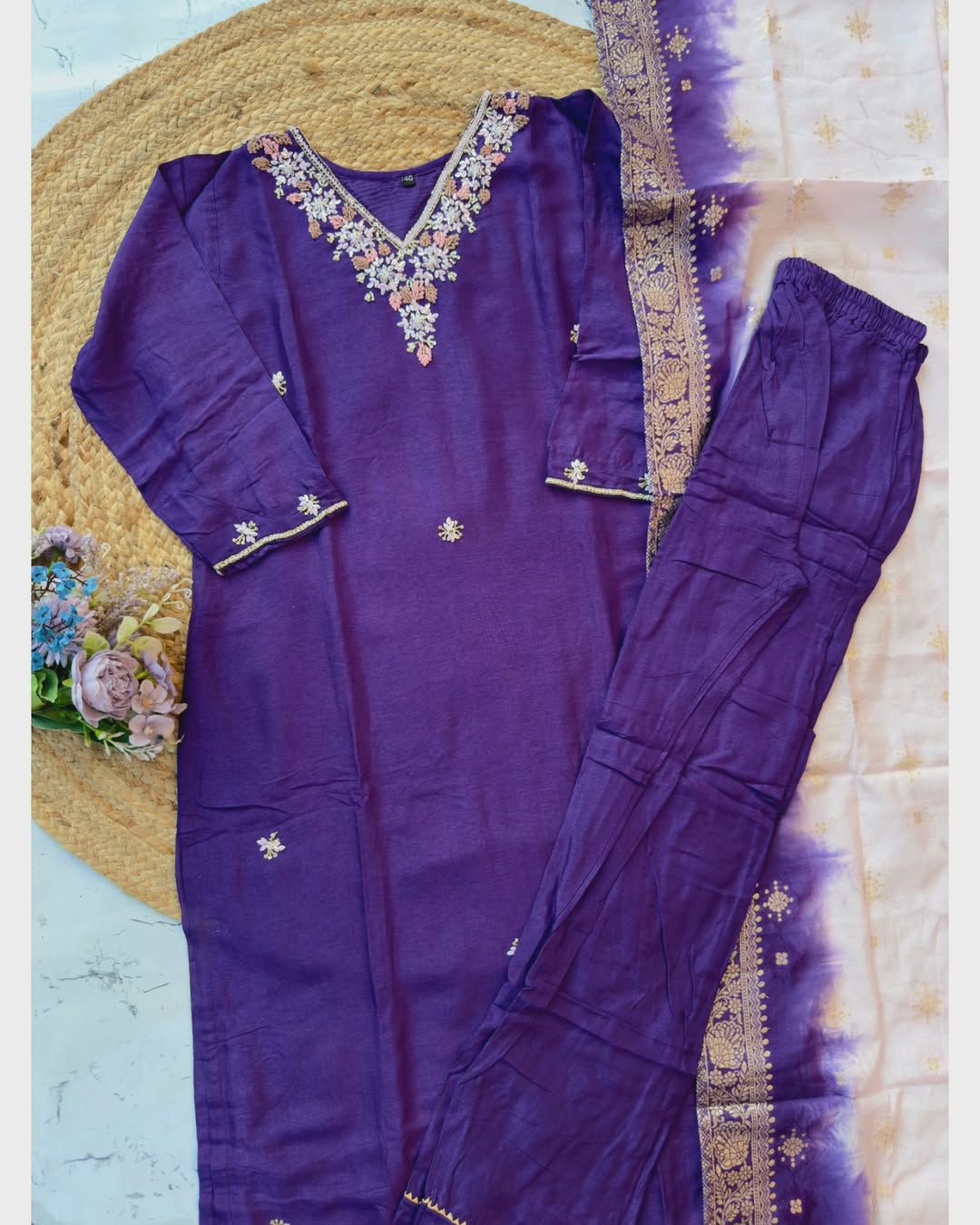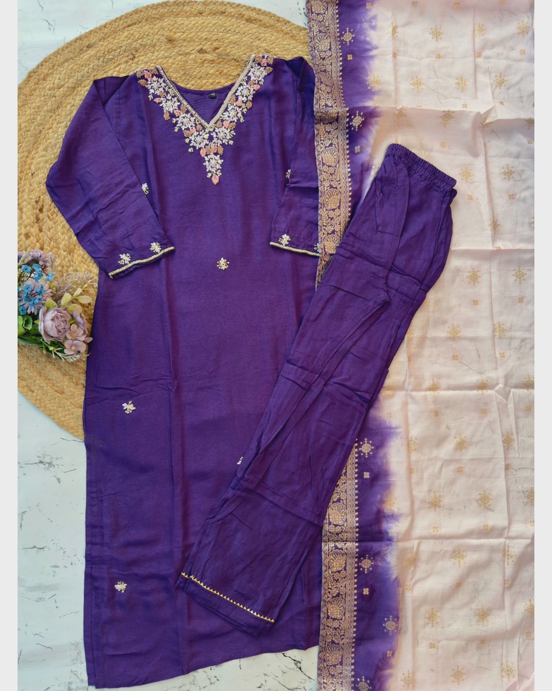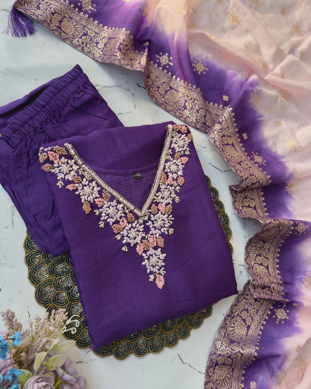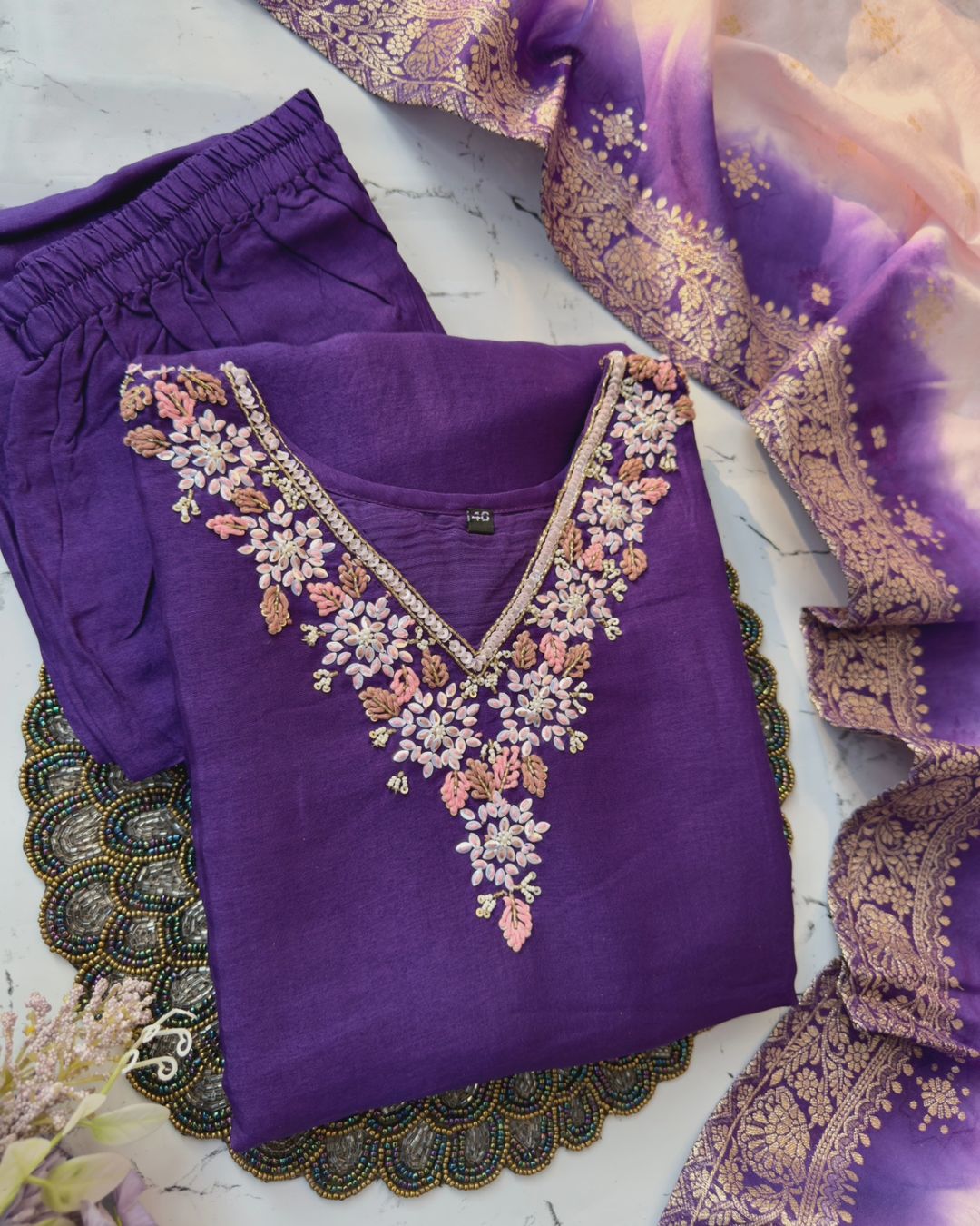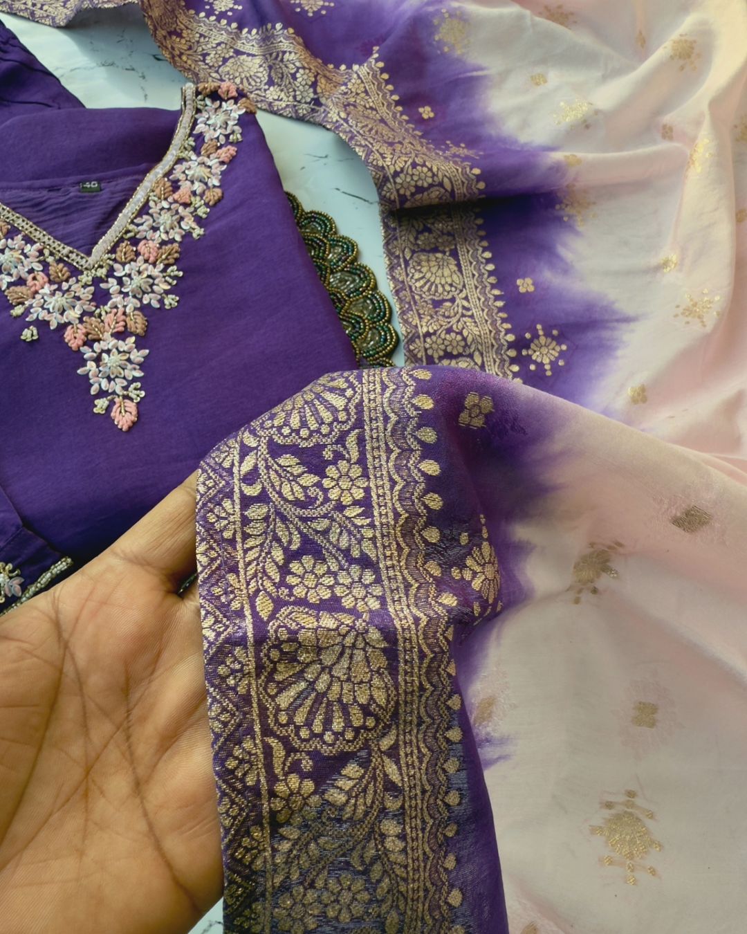 “Akansha” Purple dola silk handwork kurt set 🛍️