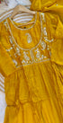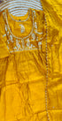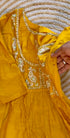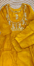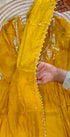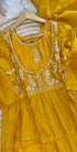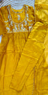 A classic mul chanderi A line suit set with handwork is an extremely pretty option to wear. Make a classy style statement with a beautiful color scheme with embroidery details