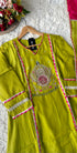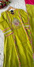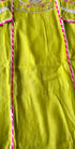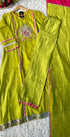 Our Mul Chanderi sets-adorned with timeless peacock yoke motifs-unfold in two regal shades: Aqua blue and Mehendi Green.