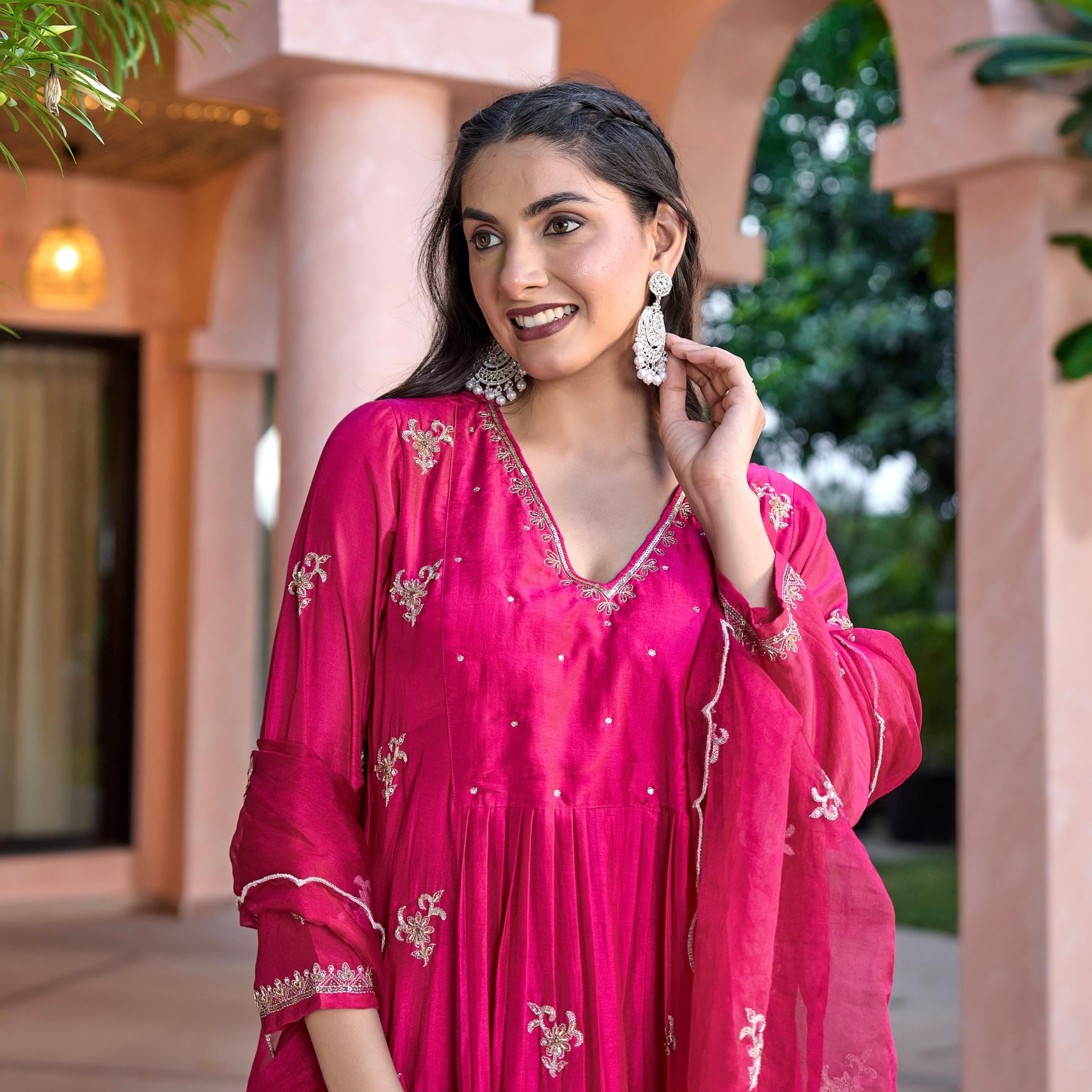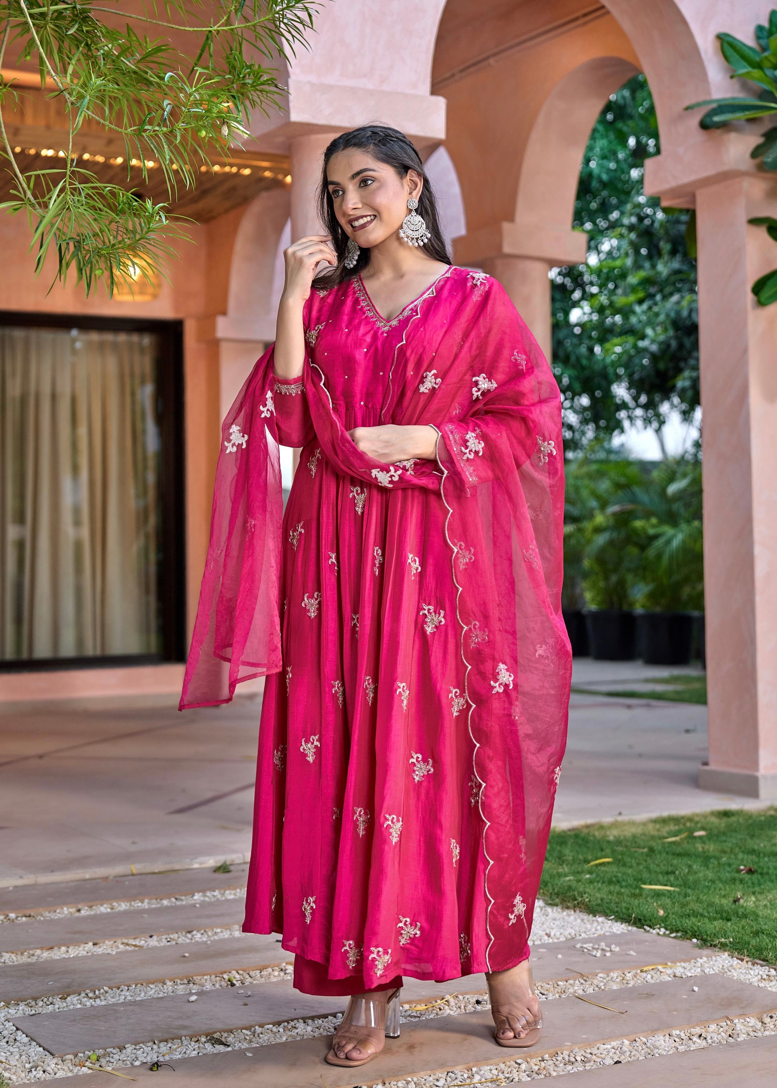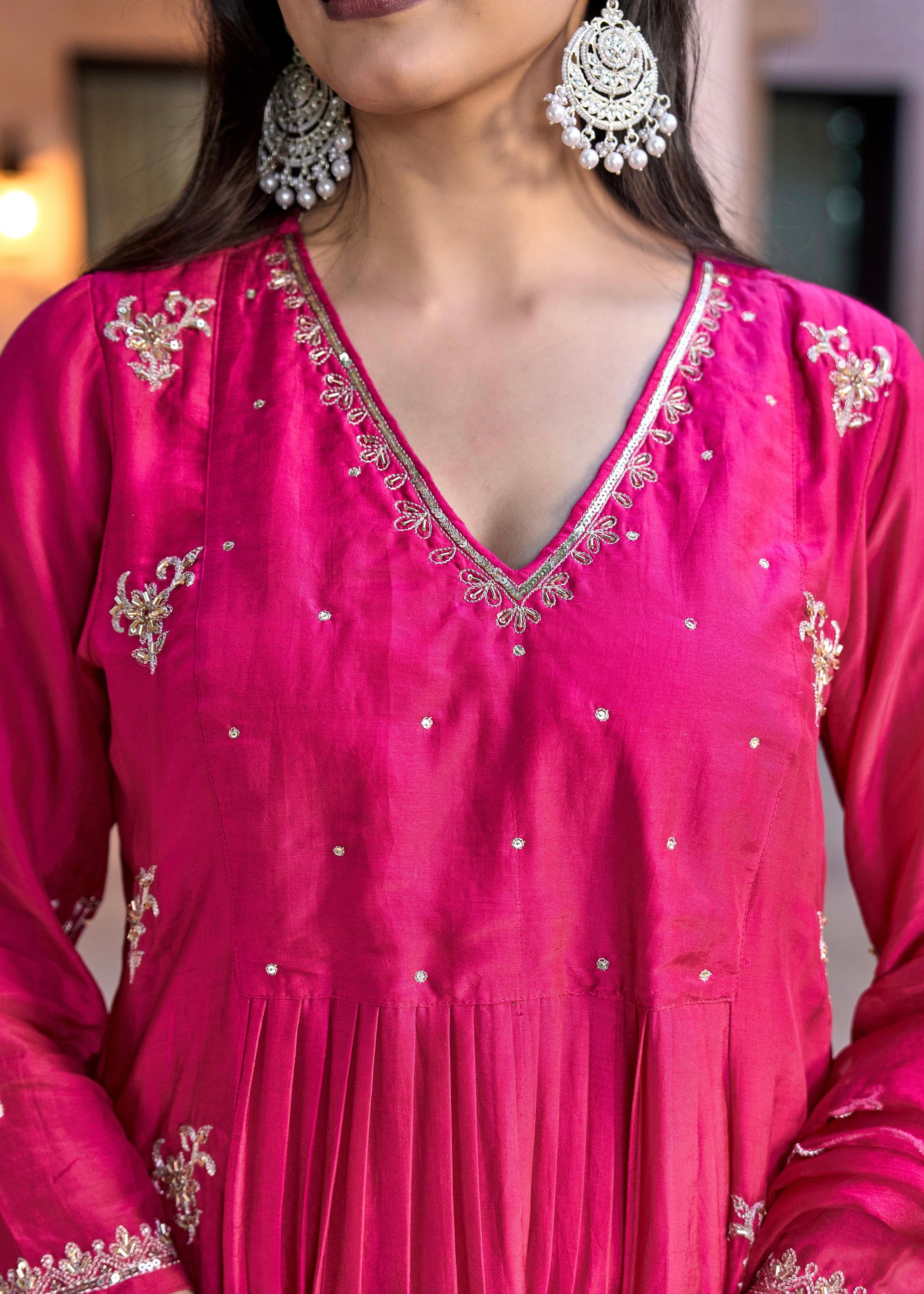 “Ishira” Premium Mul Chanderi Anarkali Kurta Set with Handwork