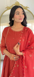 Premium mul Chanderi anarkali kurti with handwork all over the kurta with a handwork detailed mul Chanderi dupatta and a silk bottom