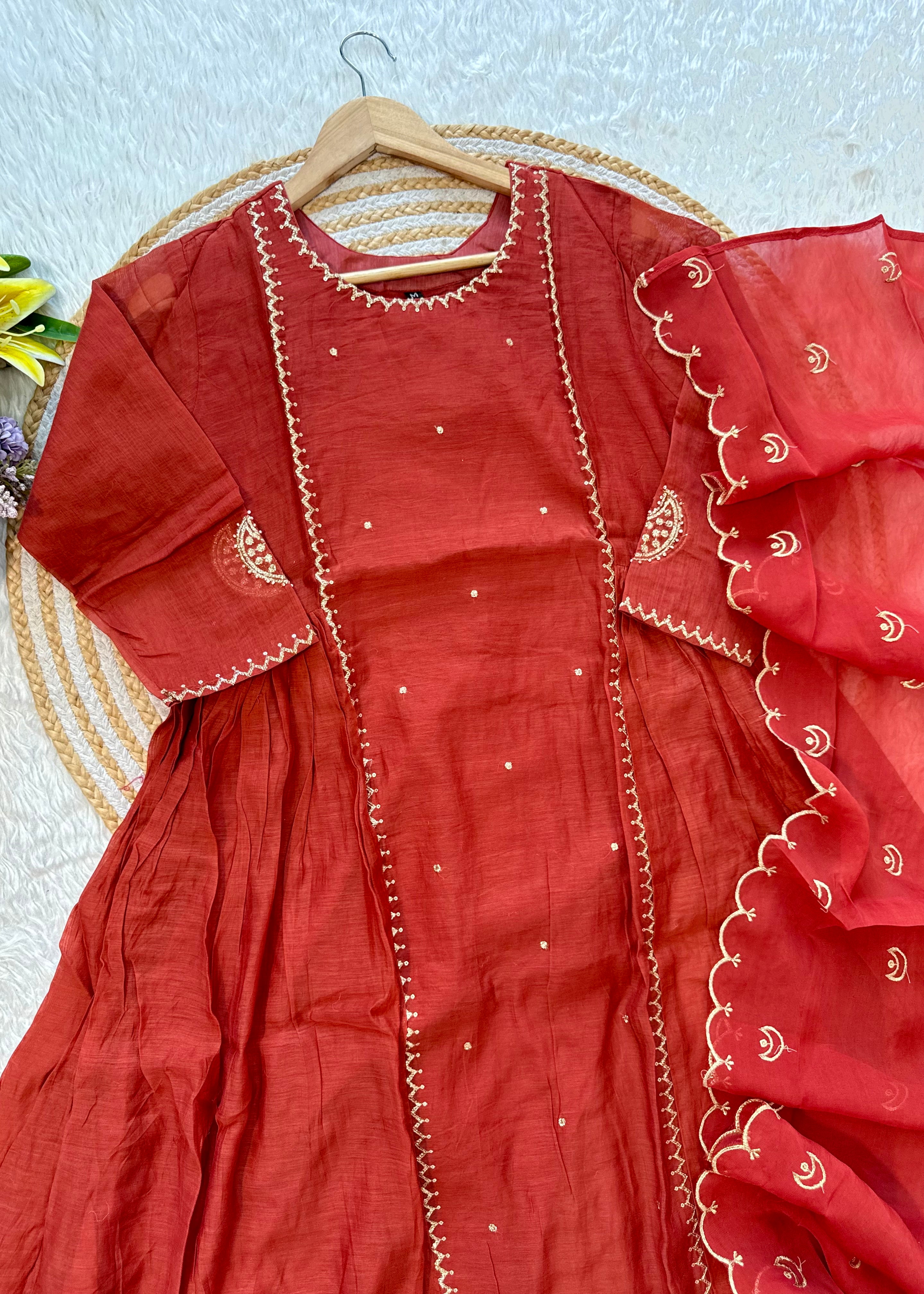 “MUL” Beautiful Mul Chanderi anarkali kurti set