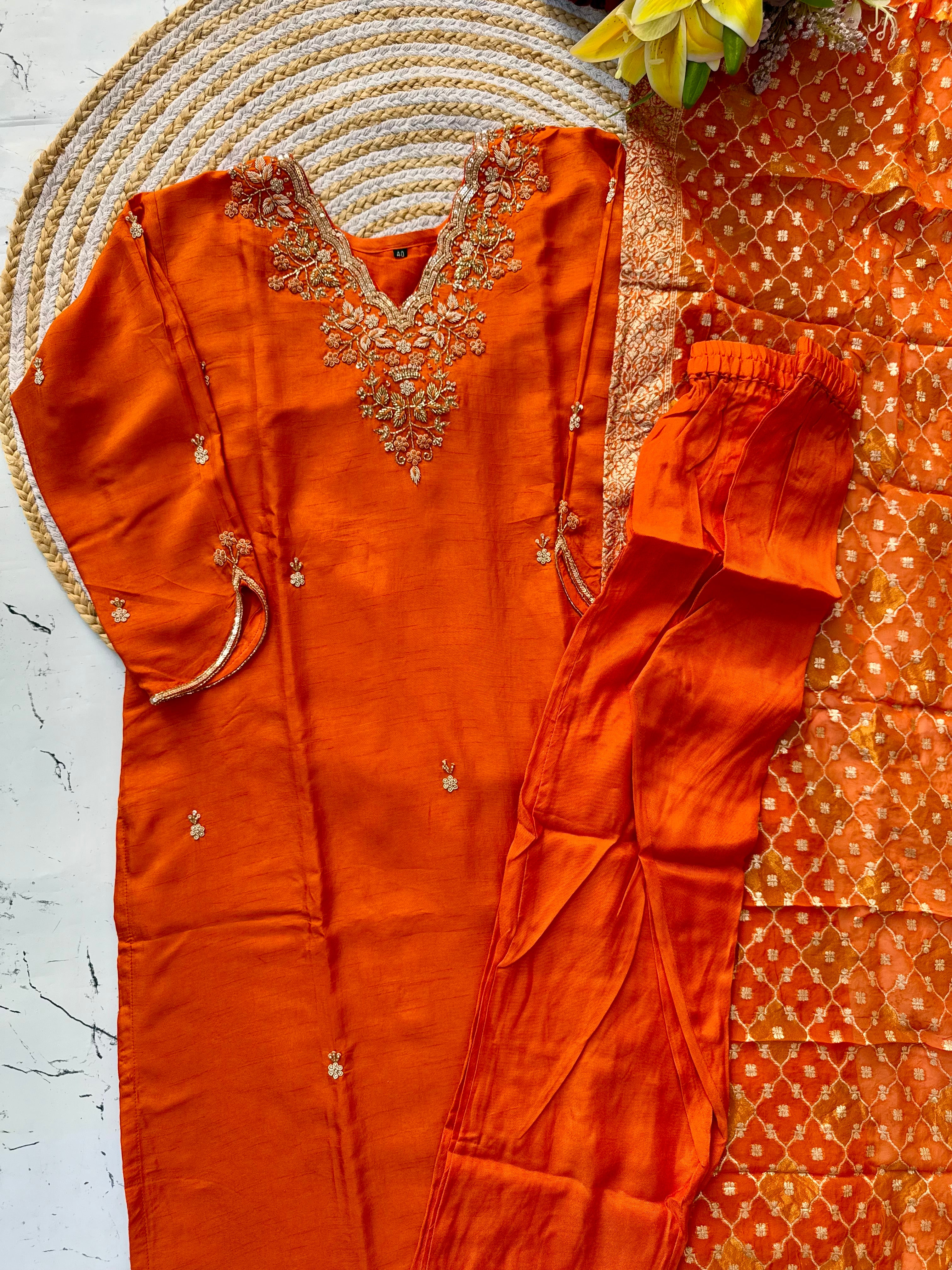 "Mulk" Party wear Handcrafted dola silk kurti set