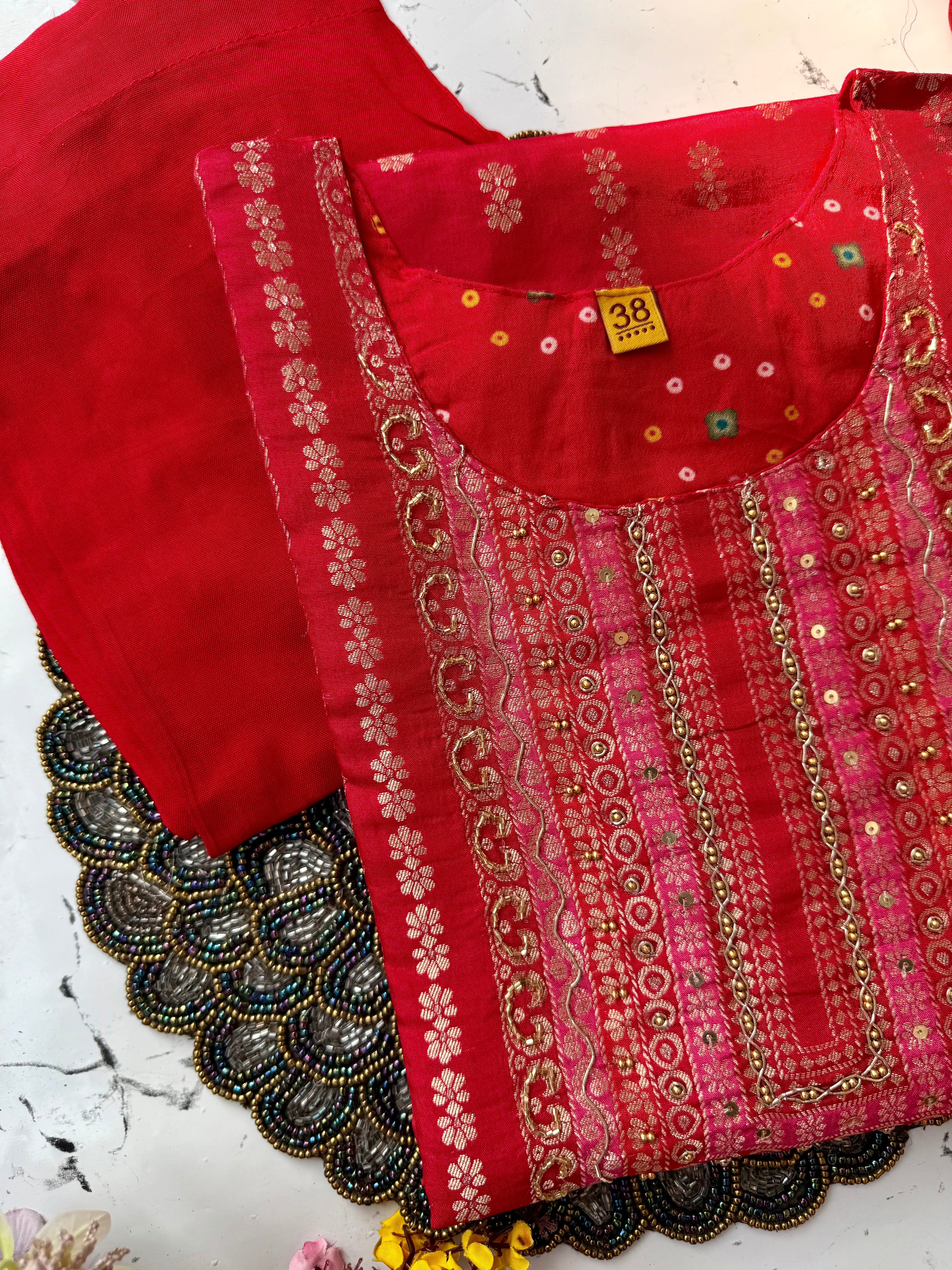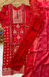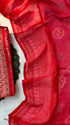 Beautiful jacquard weaving kurti with handwork on the yoke of the kurta with we a long banarsi dupatta and a silk bottom
