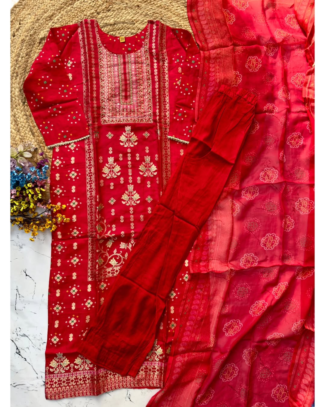“Mustarab” Beautiful jacquard silk kurti pant with dupatta set 🛍️♥️