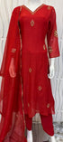 “Zeenat” Beautiful Red Mul Chanderi A line Anarkali Kurta Set