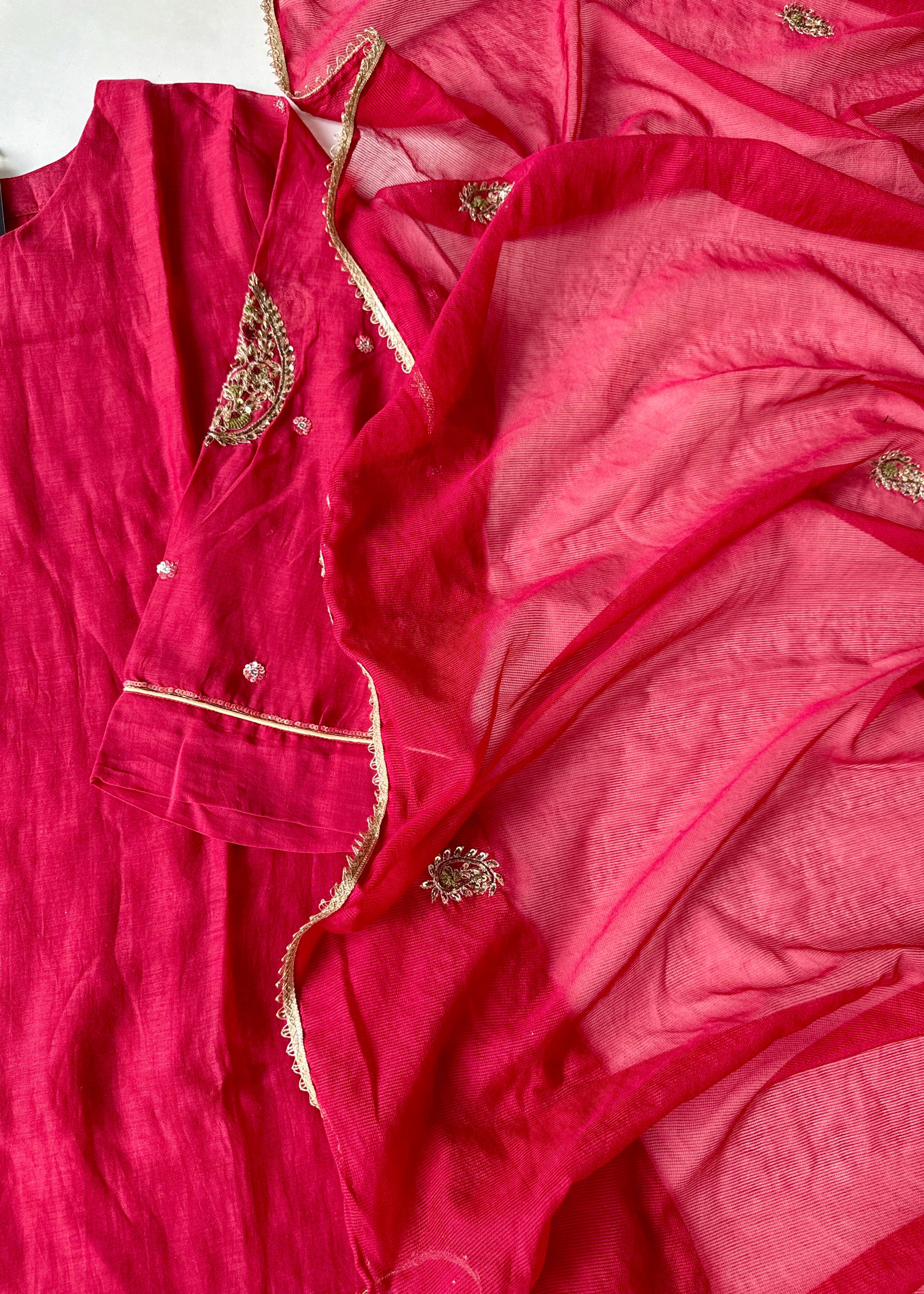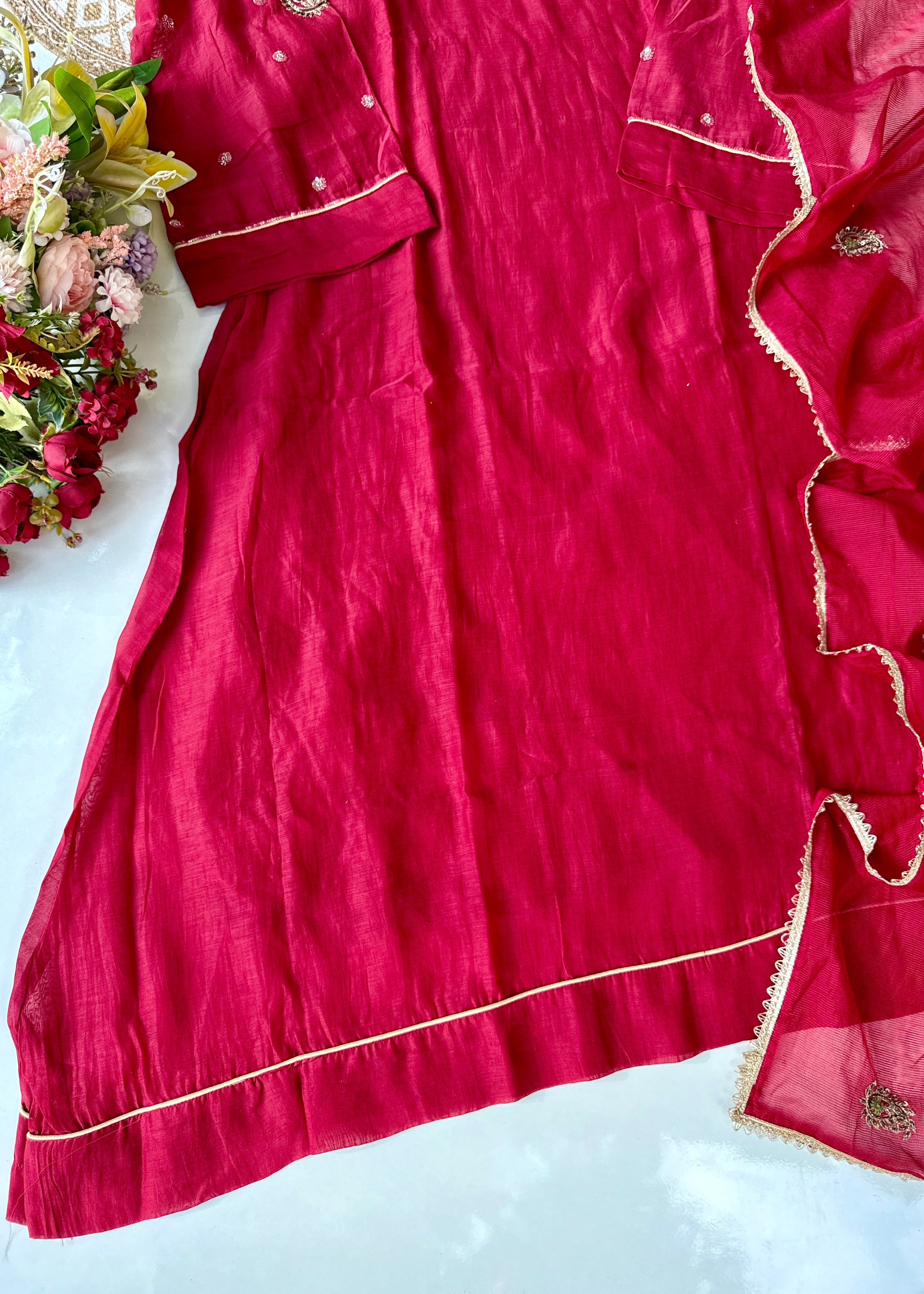 “Navya” Beautiful Red Mul Chanderi A line Anarkali Kurta Set