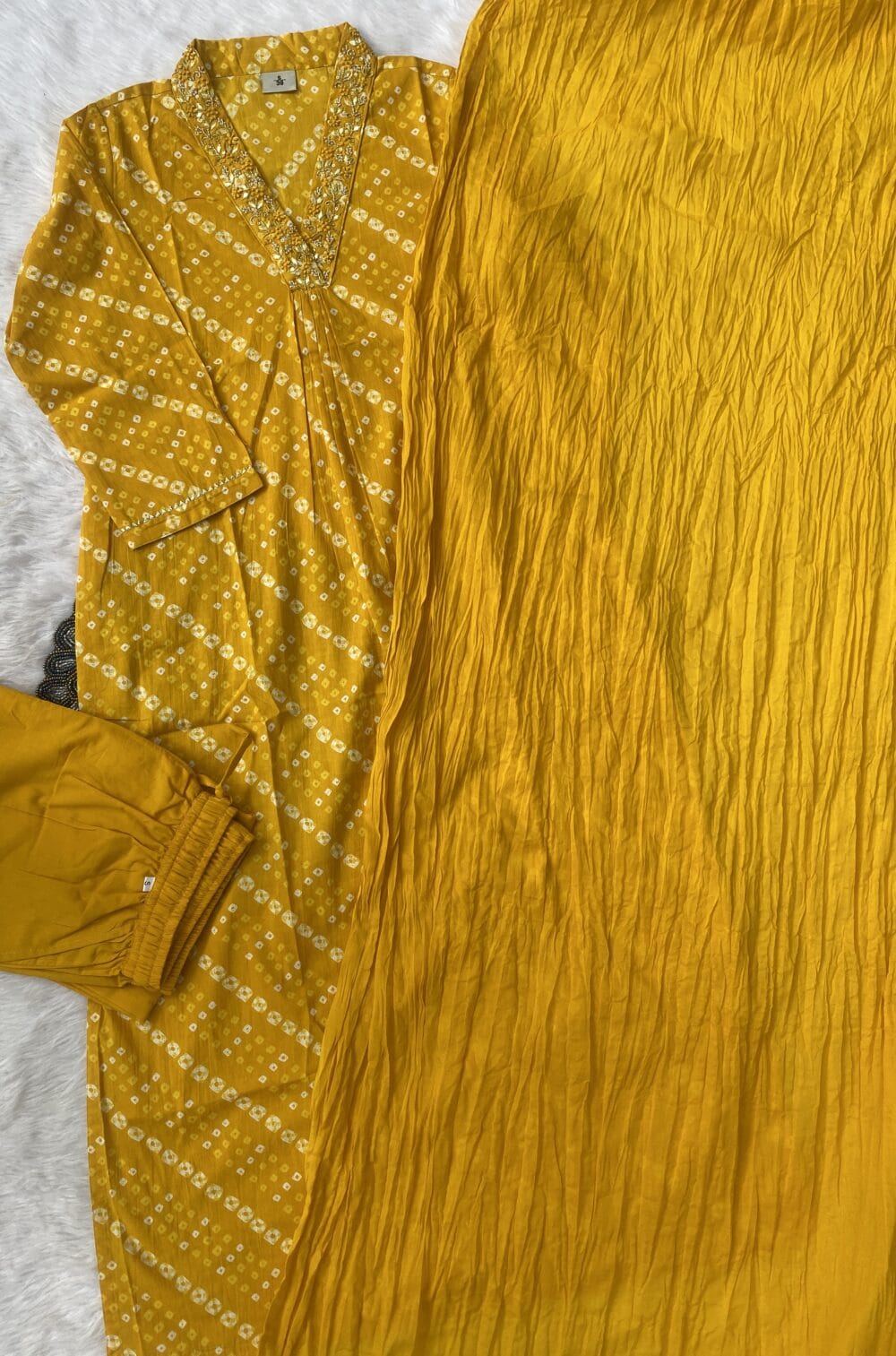 “Alia” Bandani printed cotton kurti dupatta bottom set