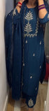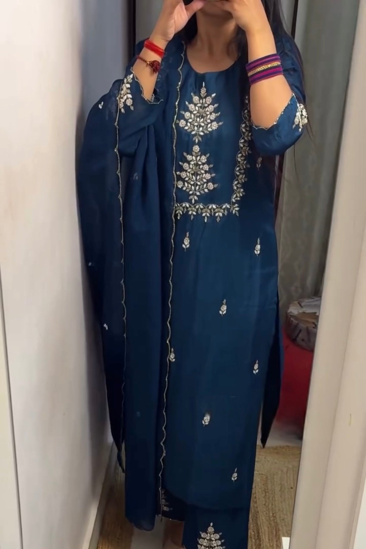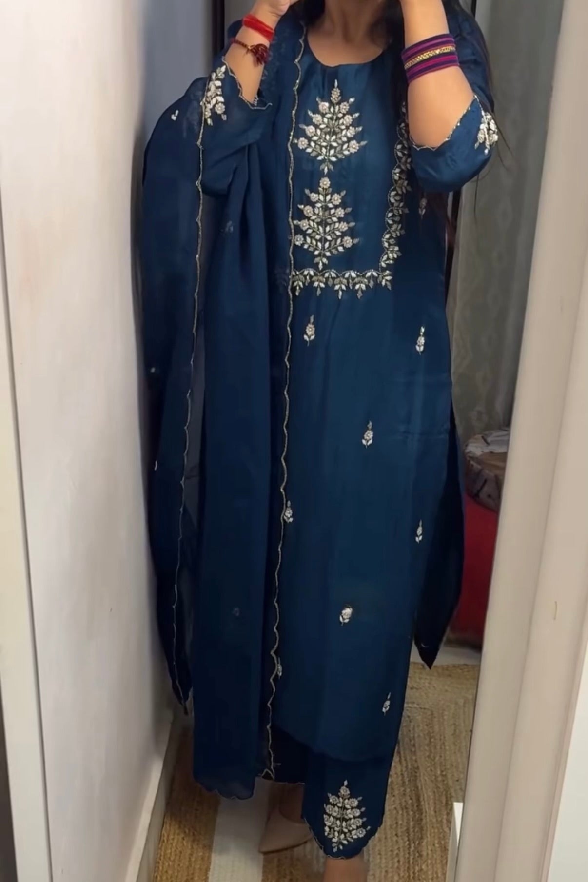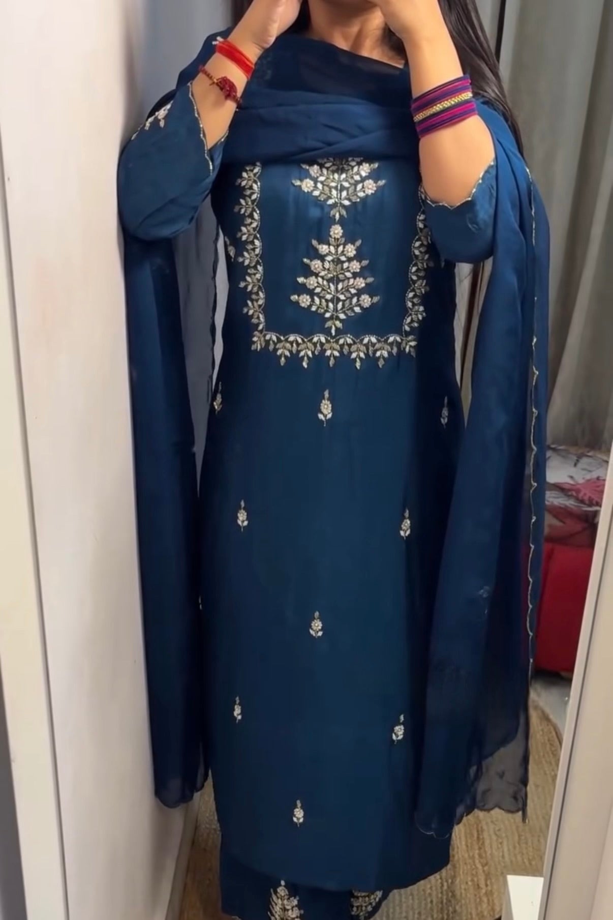 “Orange” Partywear Orange heavy handwork Dola Silk Kurta Set - XS / Blue