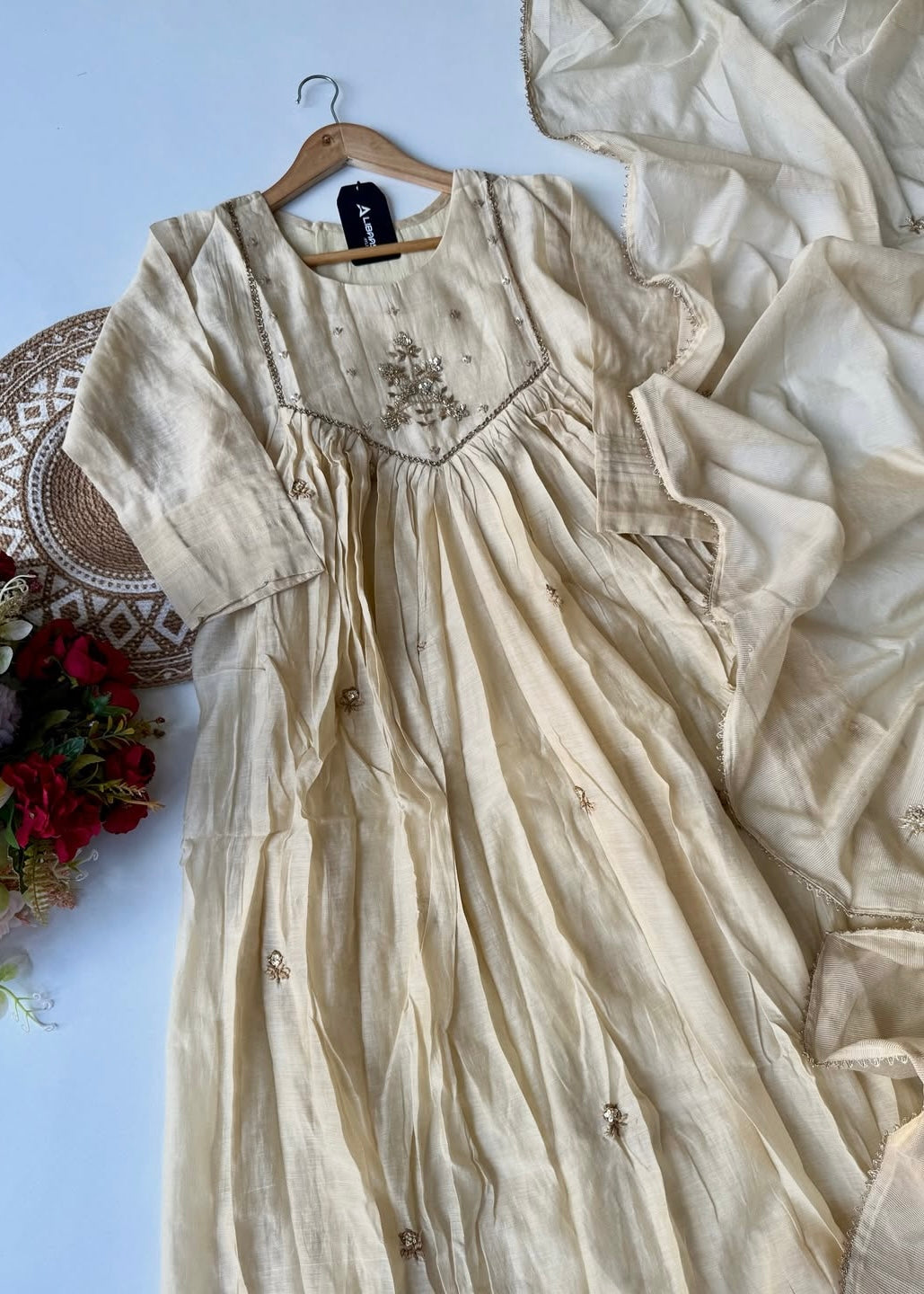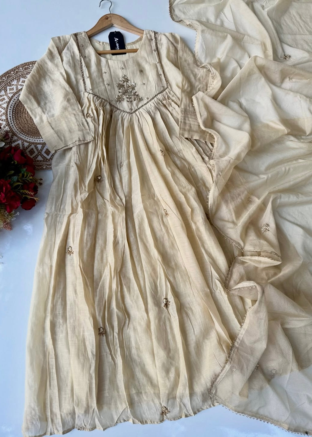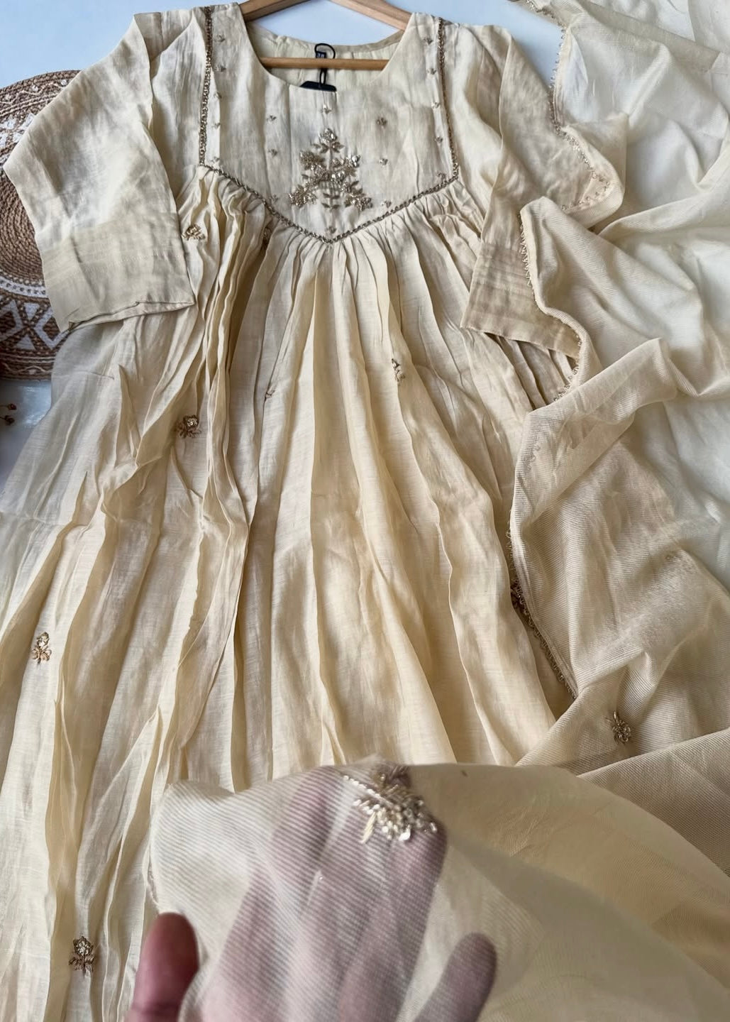 Aylize - This elegant Mul Chanderi Anarkali Suit Set is designed for festive and special occasions. The lightweight fabric gives a regal fall, while the intricate handwork embroidery adds timeless charm.