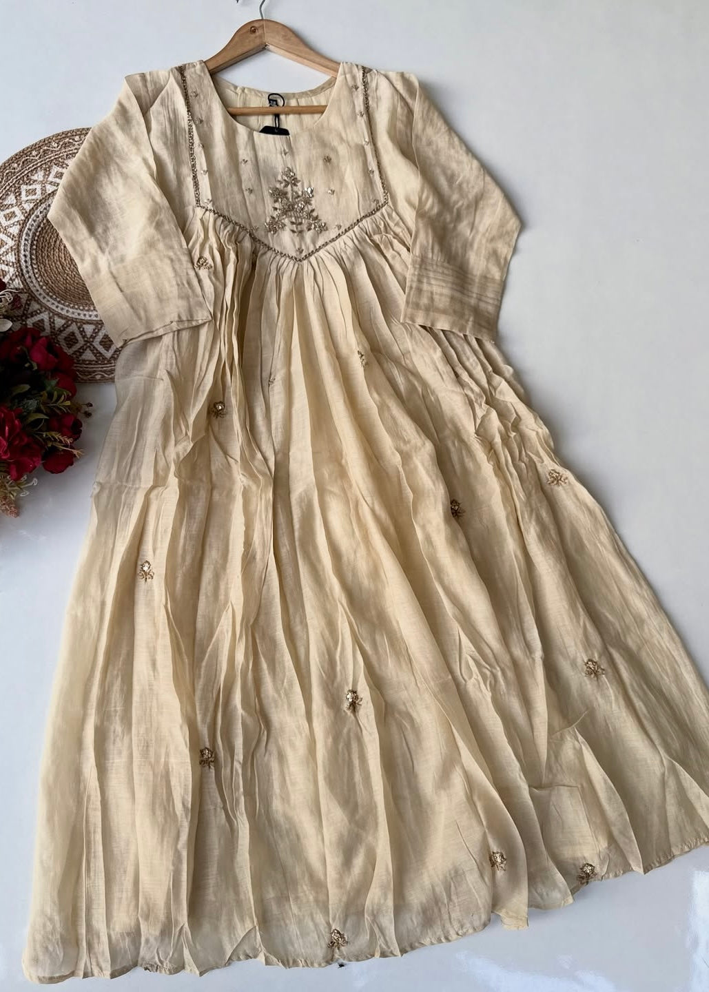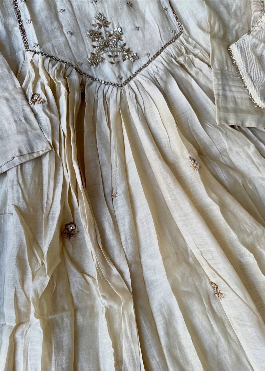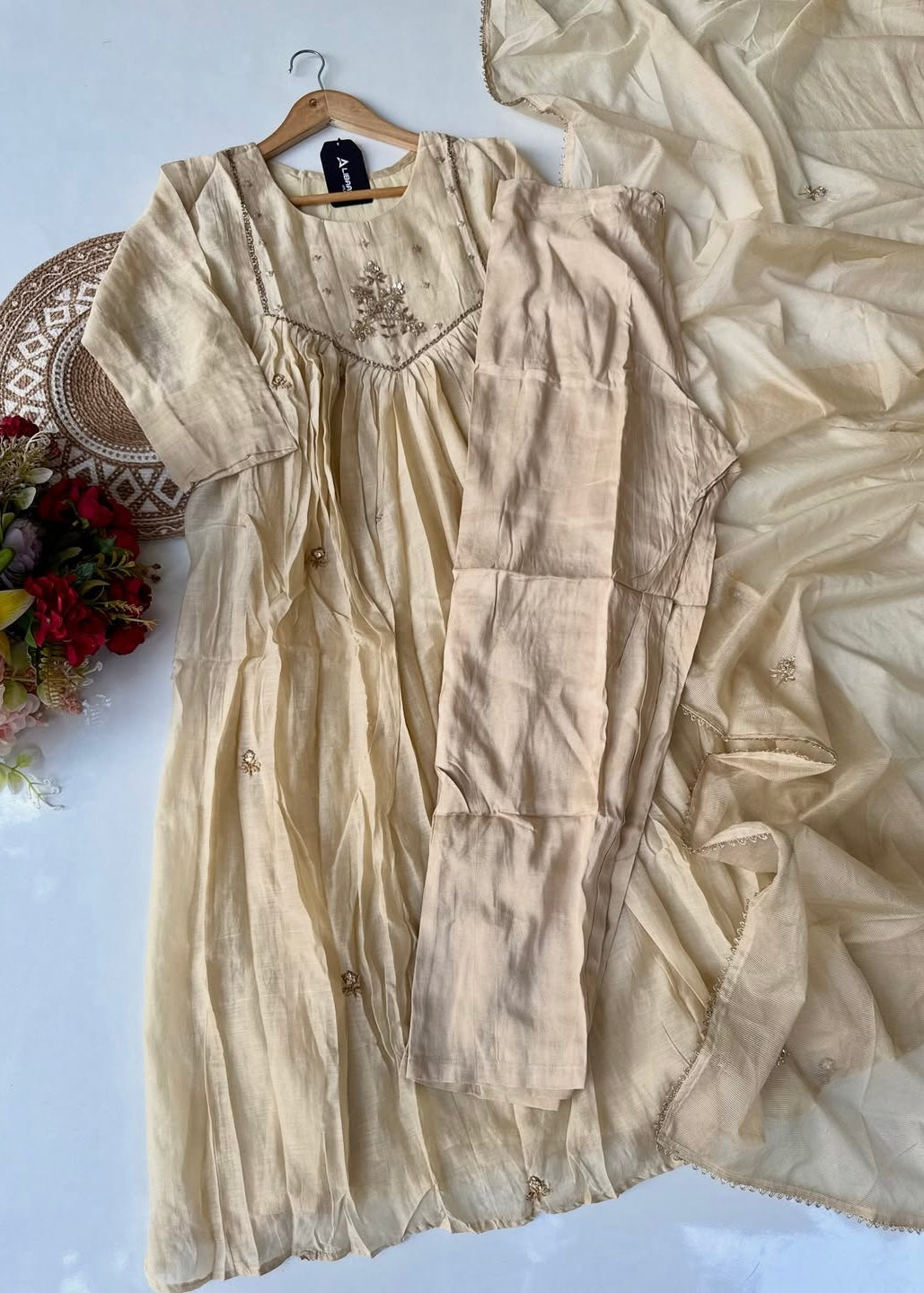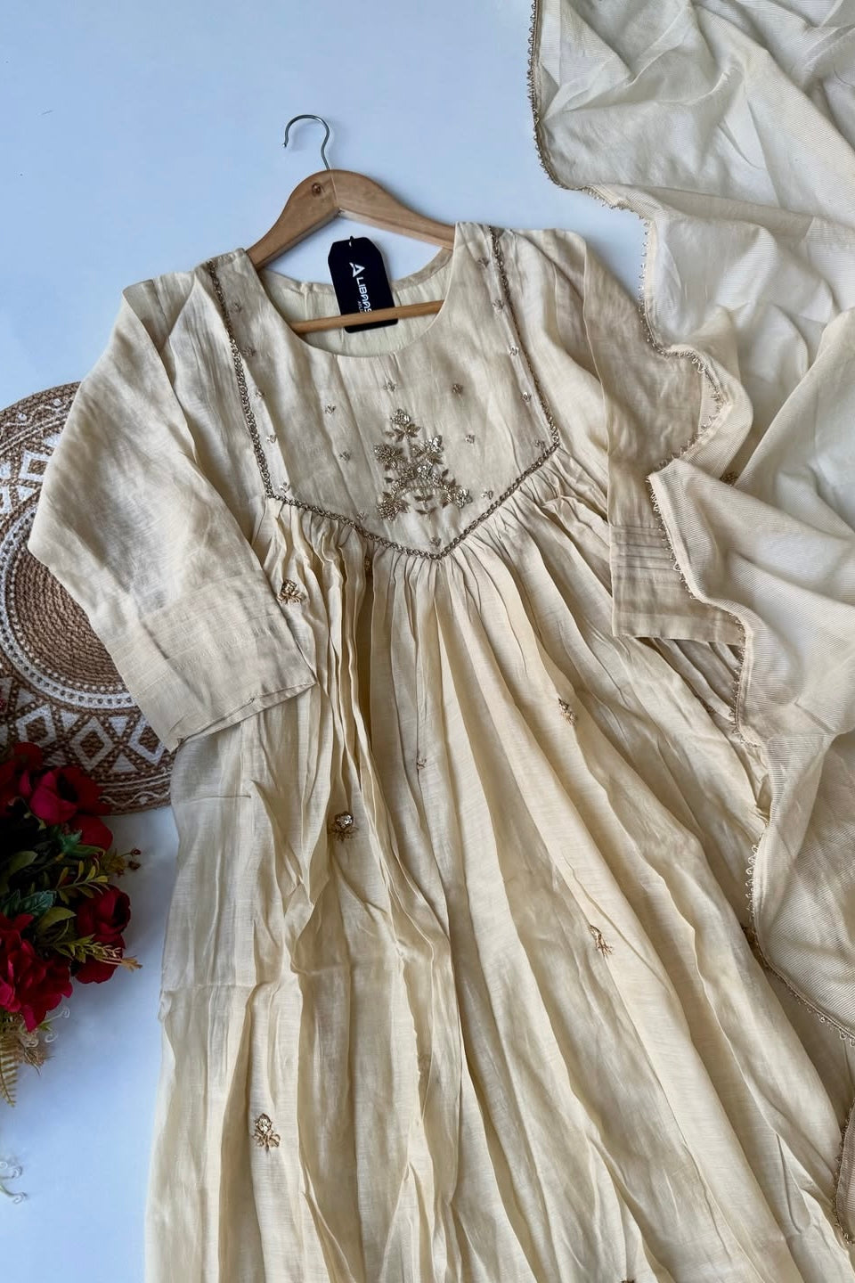 Aylize - This elegant Mul Chanderi Anarkali Suit Set is designed for festive and special occasions. The lightweight fabric gives a regal fall, while the intricate handwork embroidery adds timeless charm.