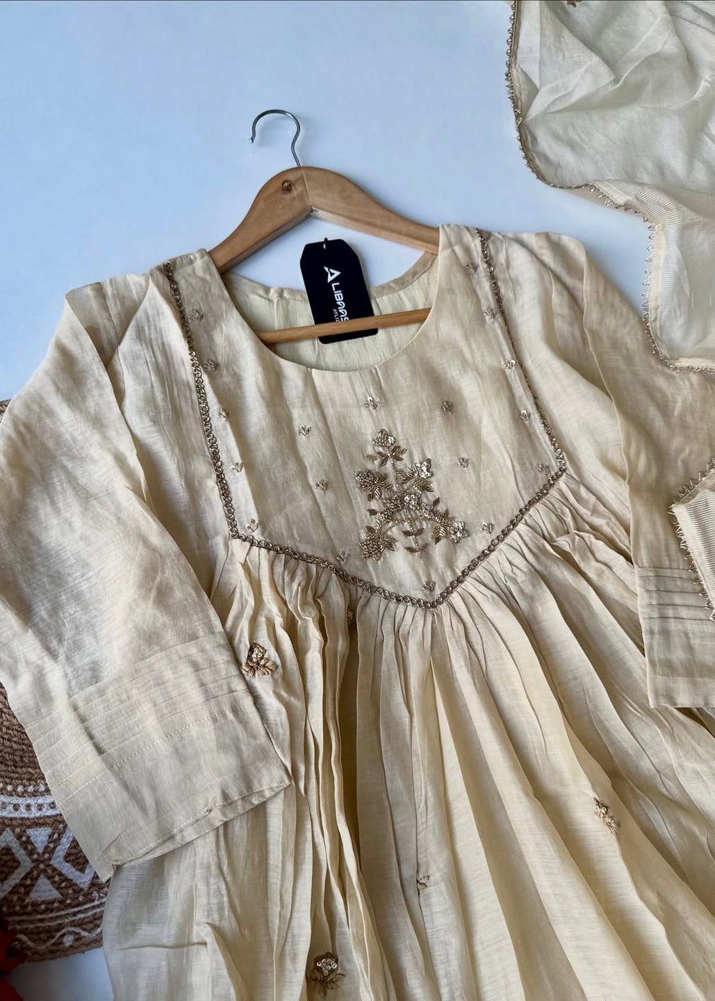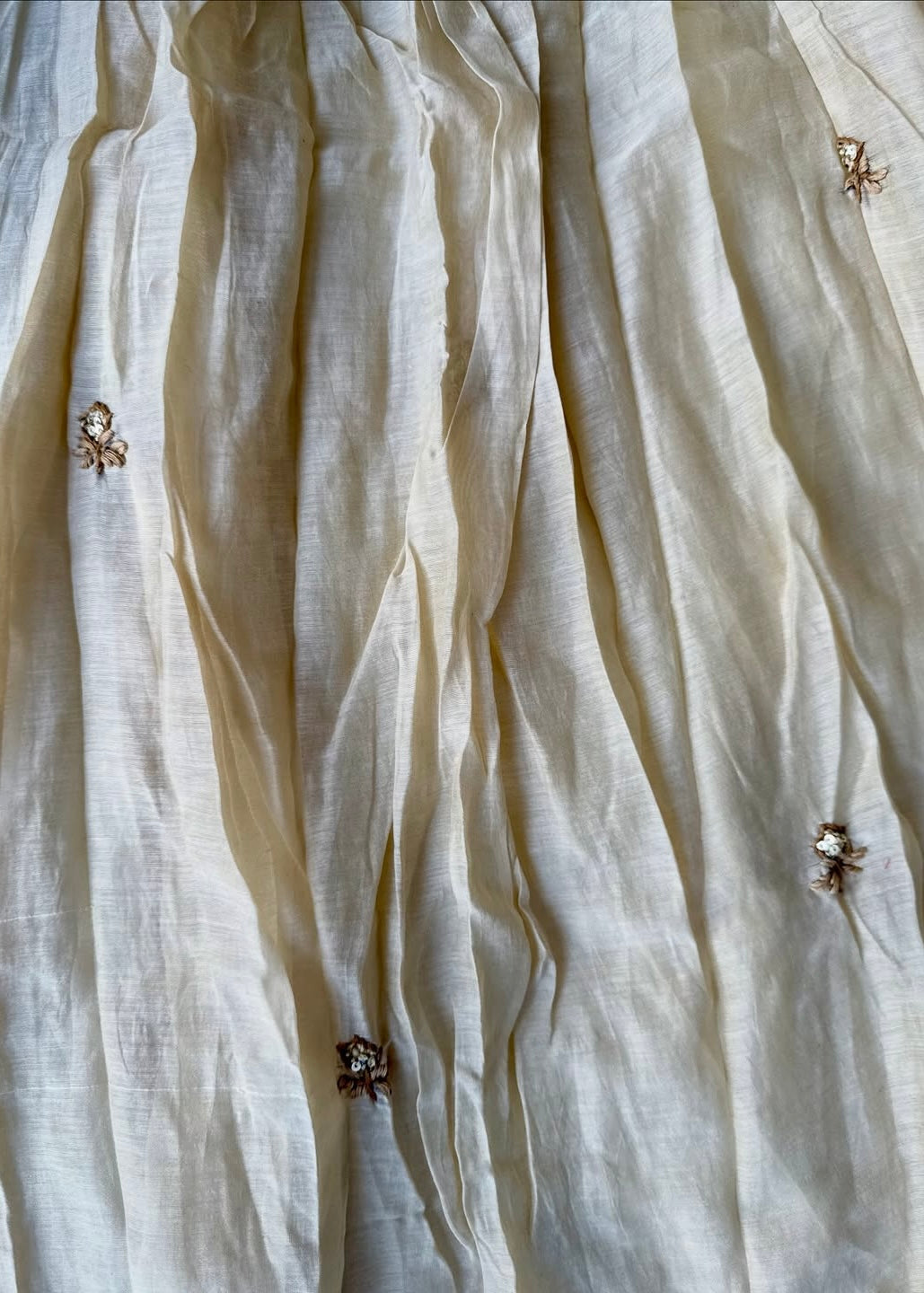 - Top: Mul Chanderi with intricate handwork on the front panel & sleeves