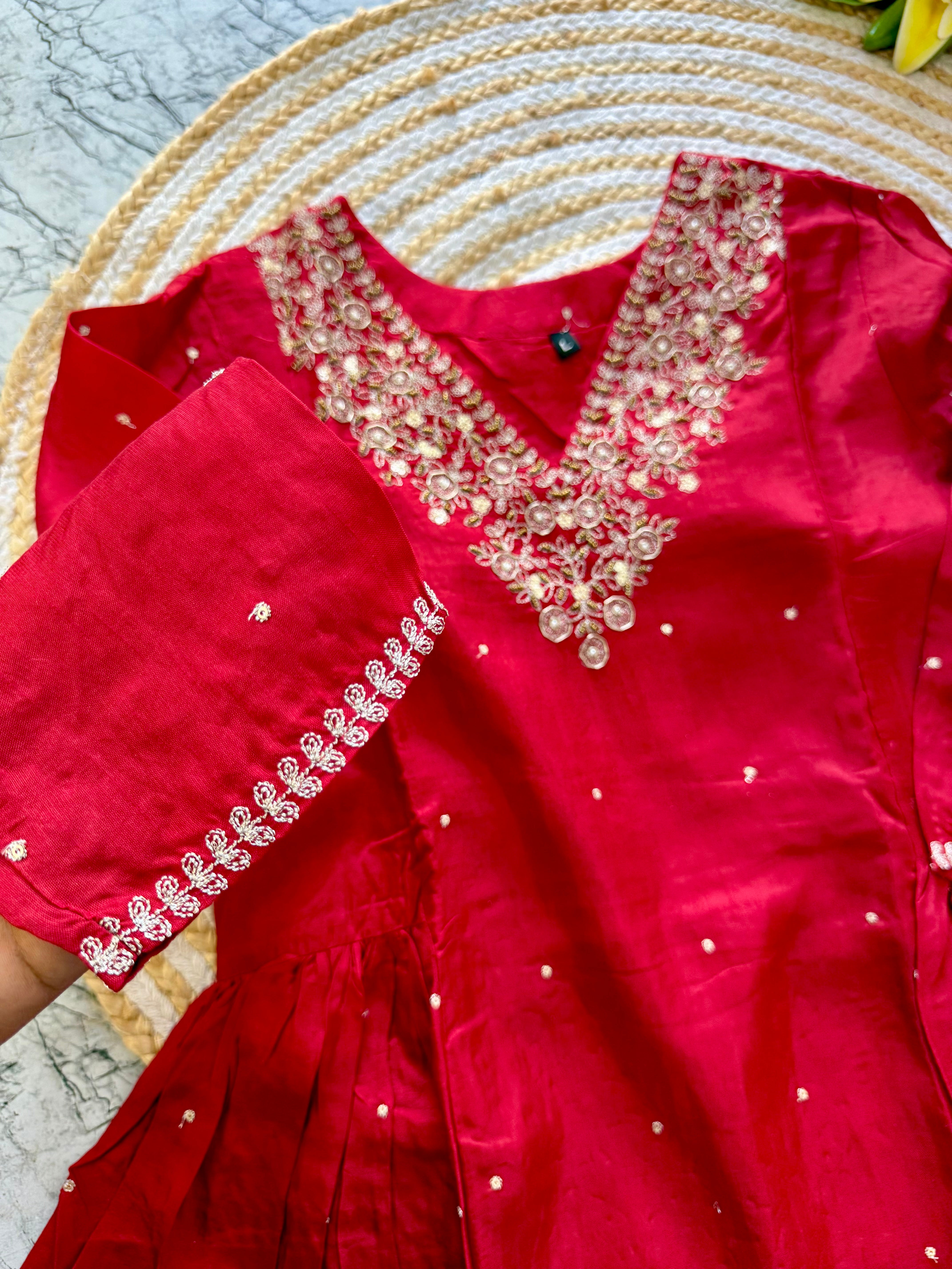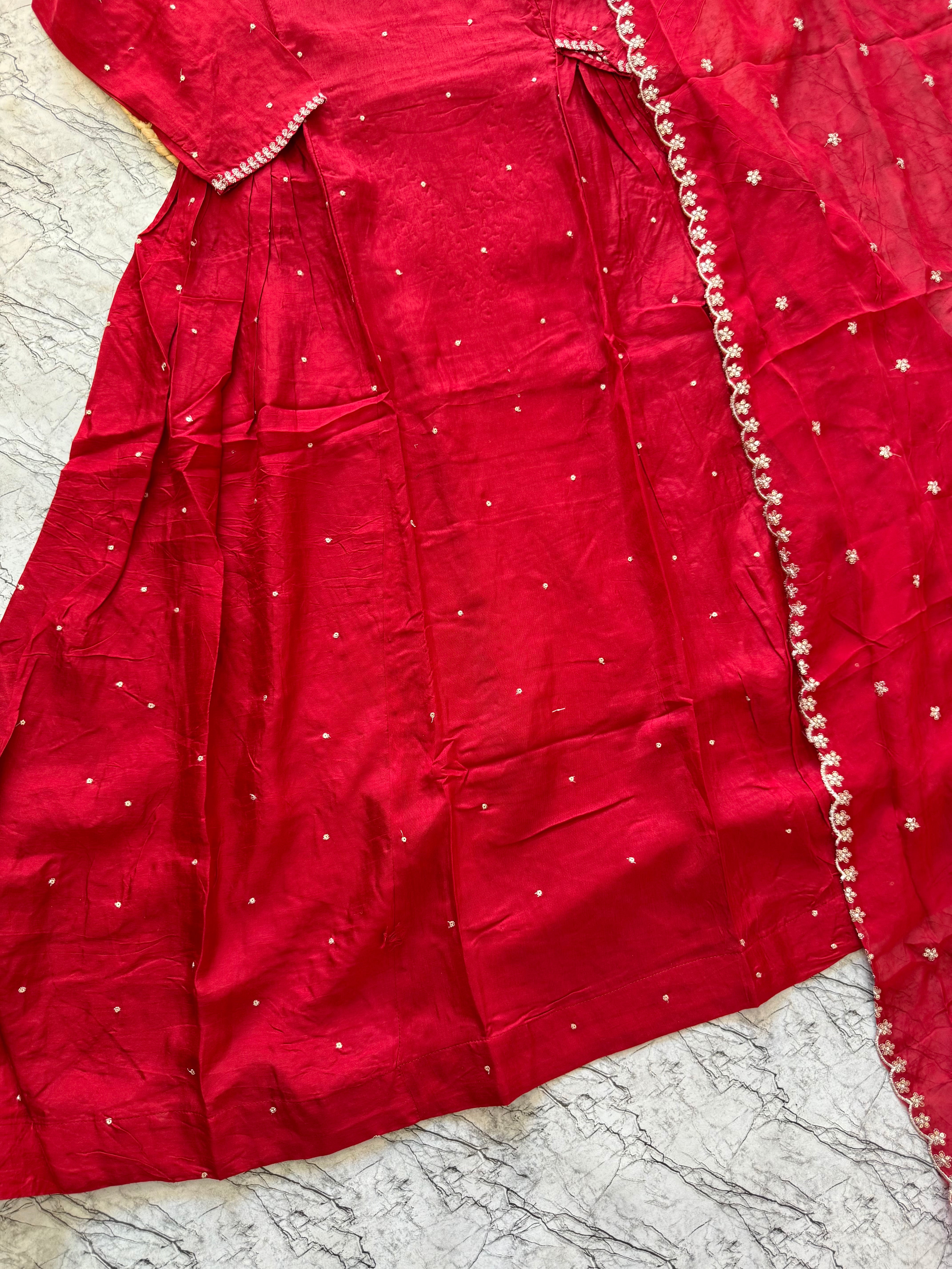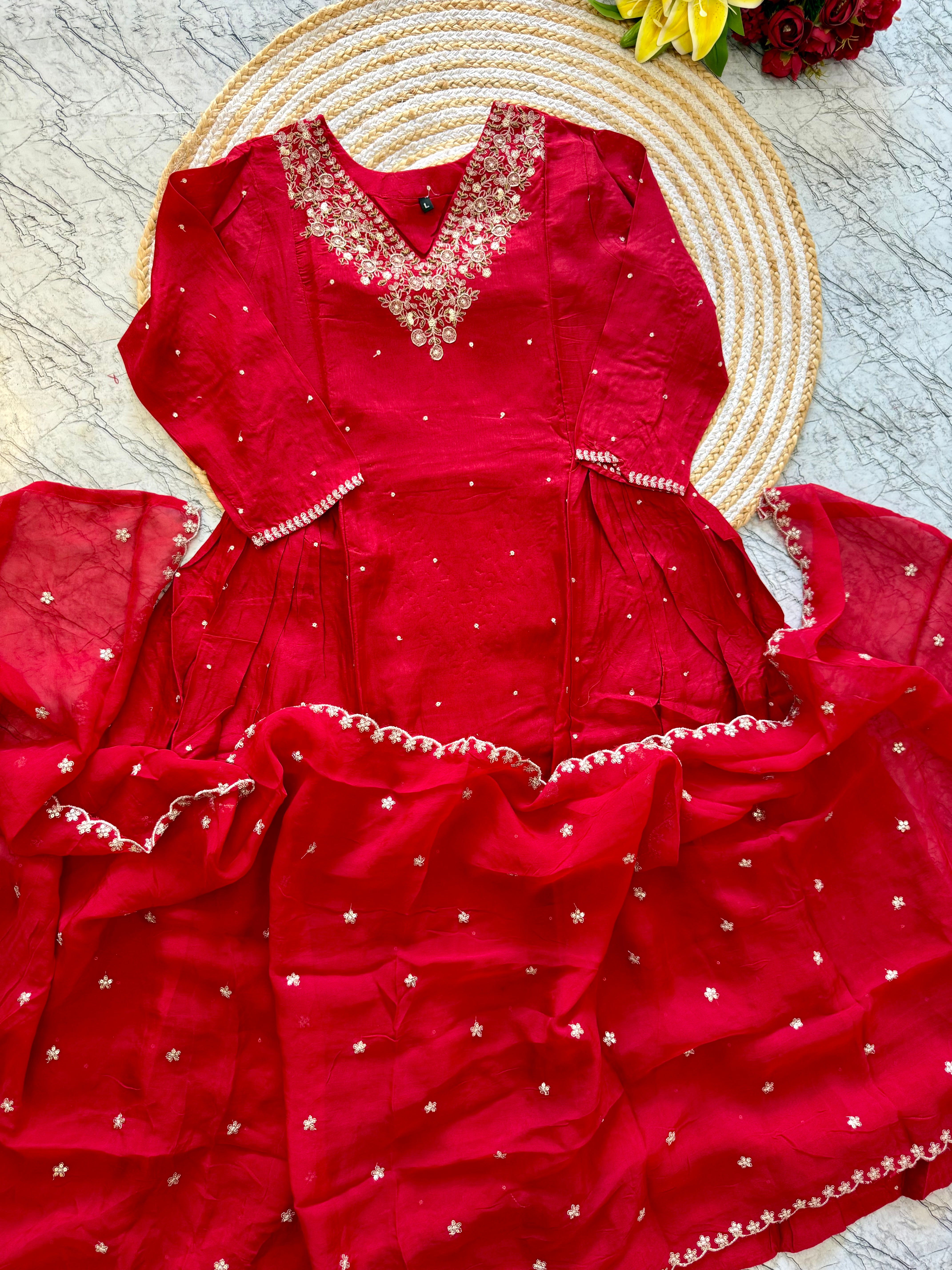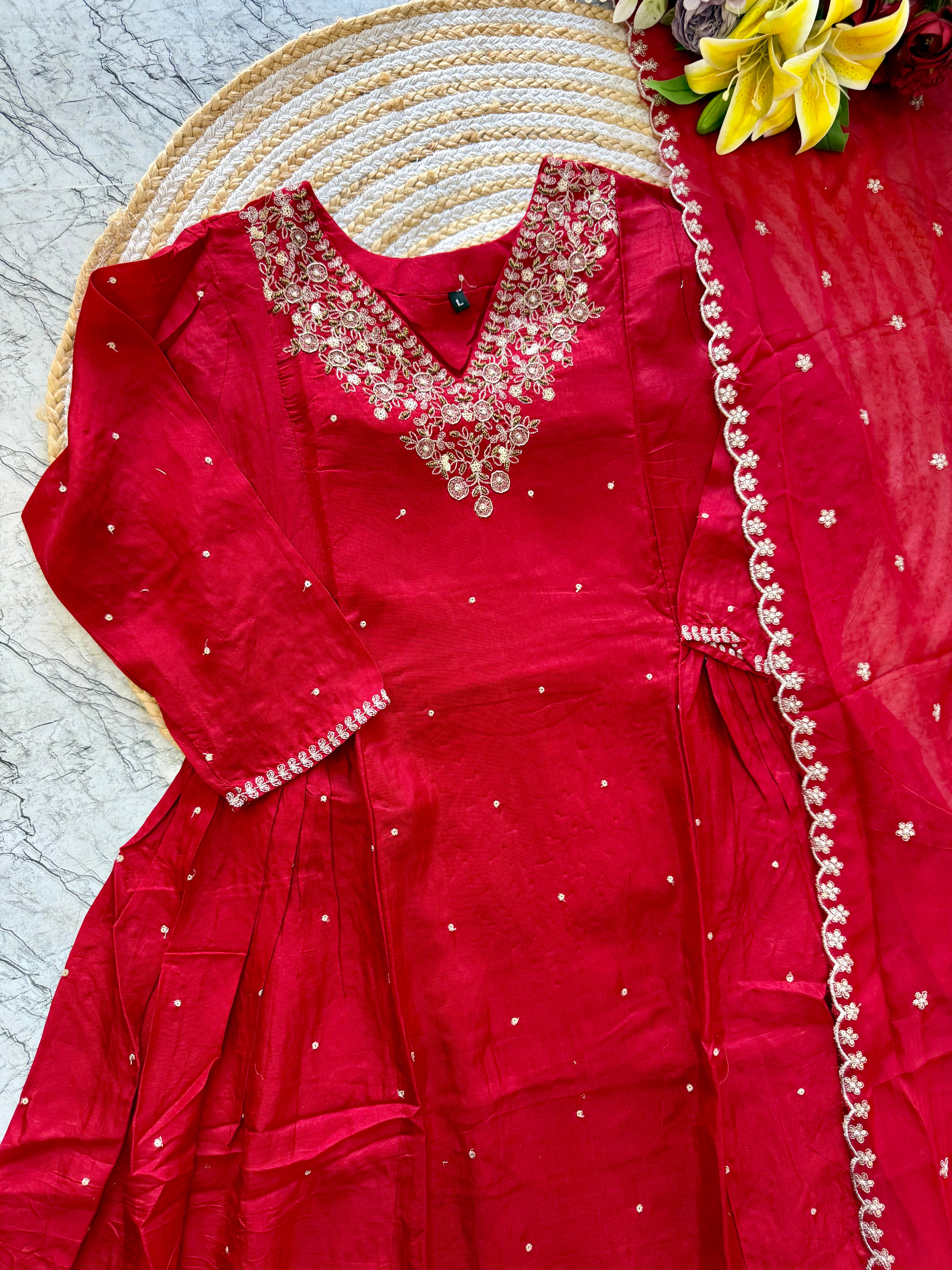"Rahbar" Tissue silk handwork Anarkali with pants and organza dupatta