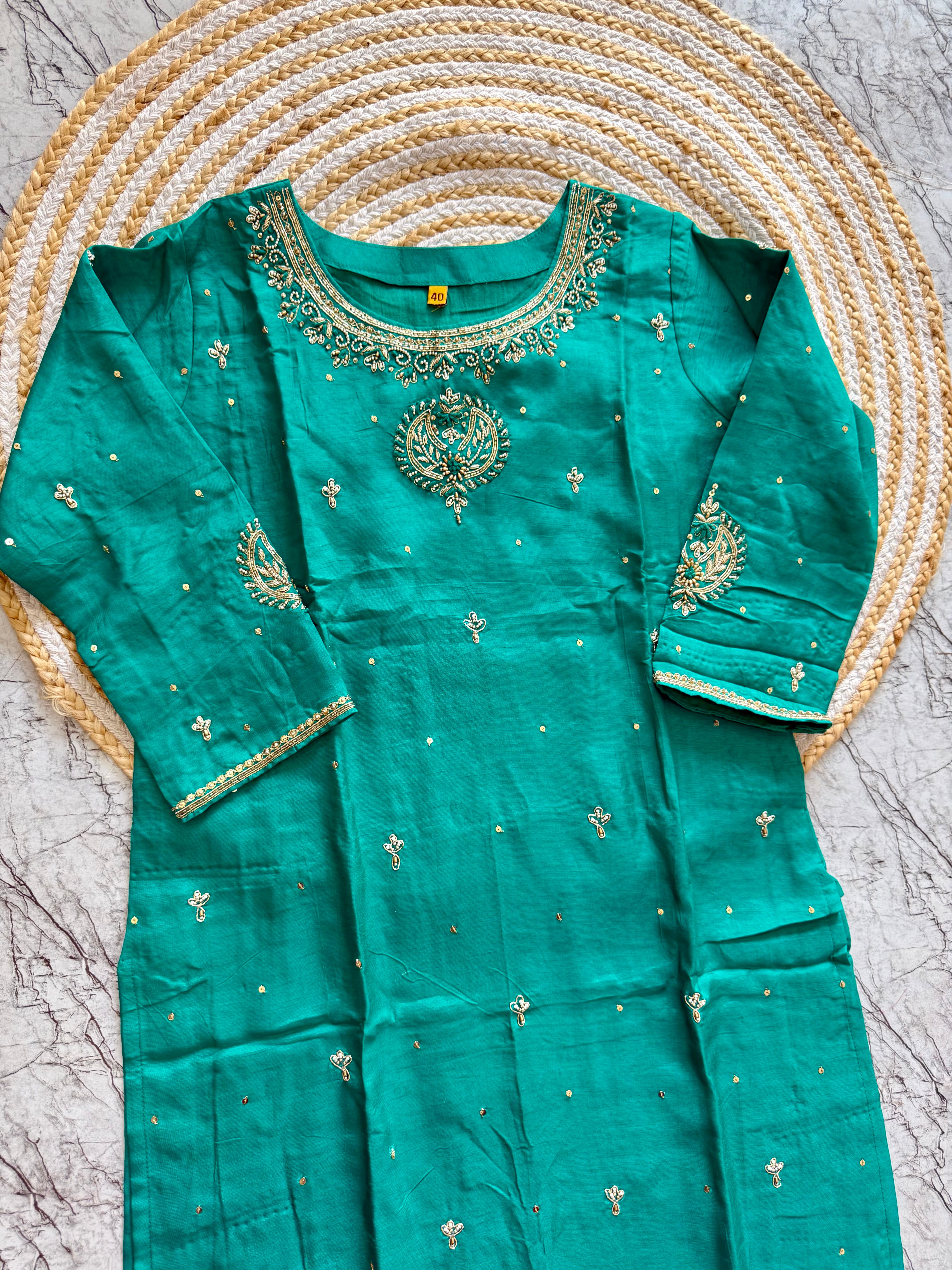 “Riddhi” Premium festive wear Rama green Dola silk kurti set 🛍️
