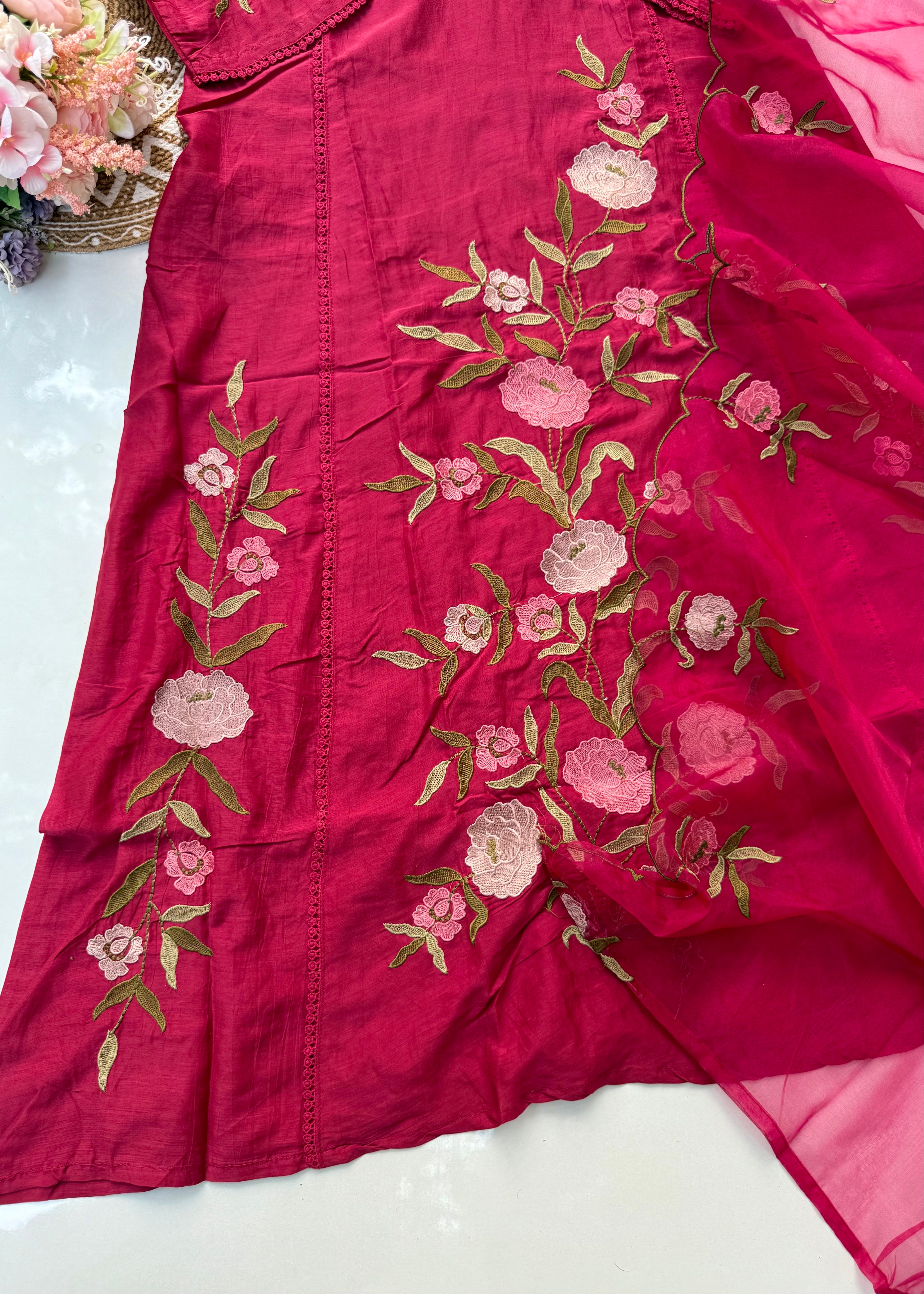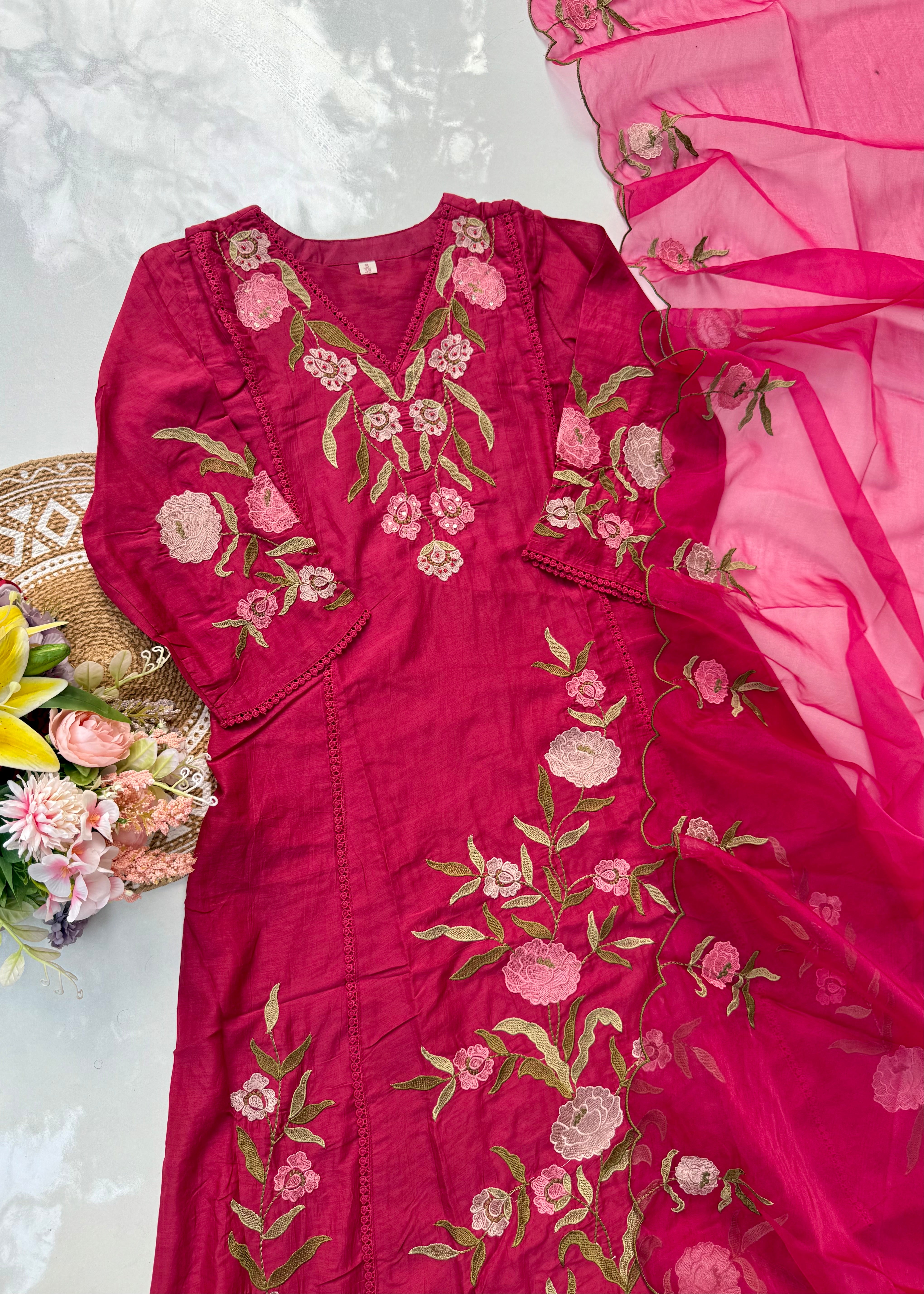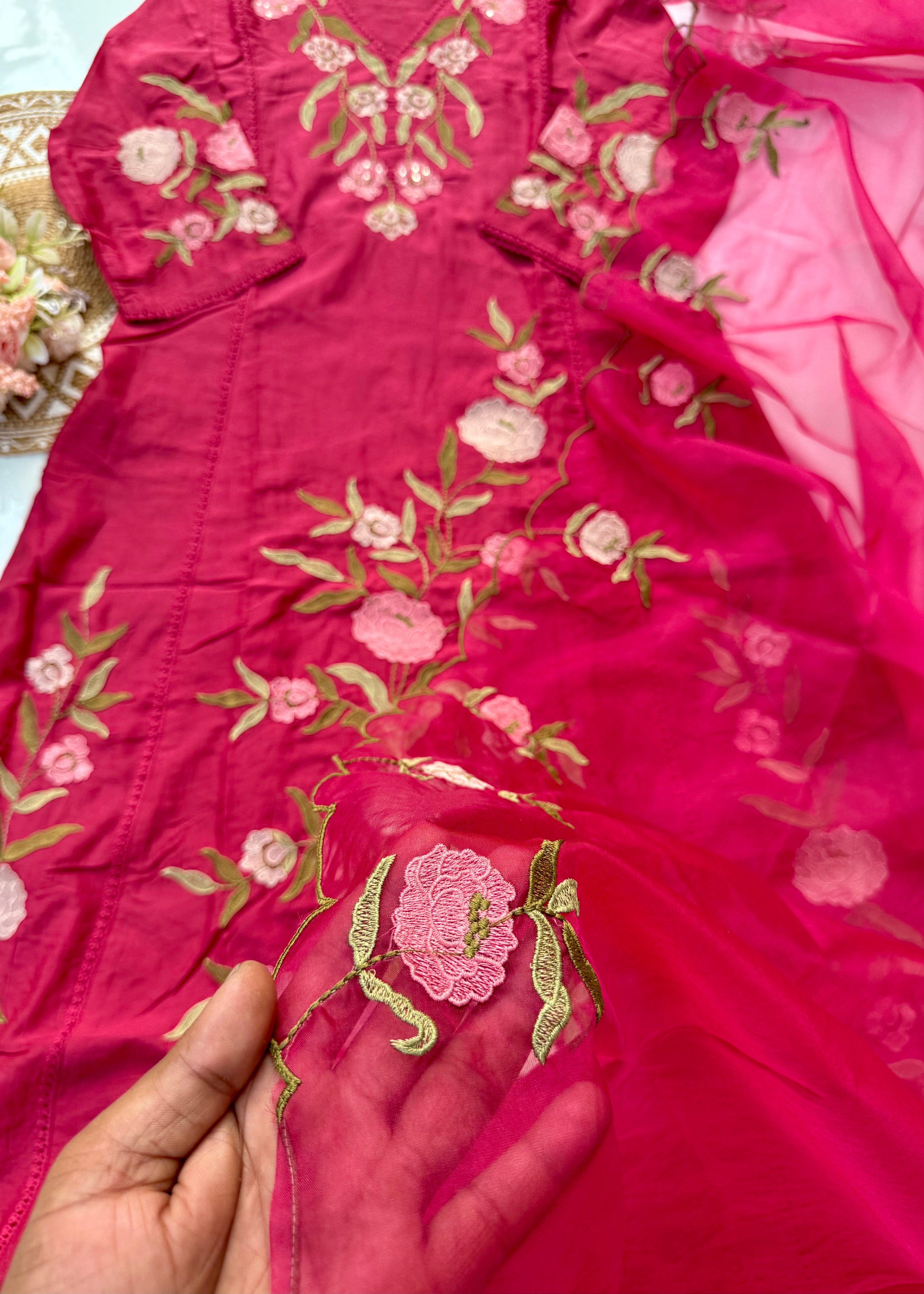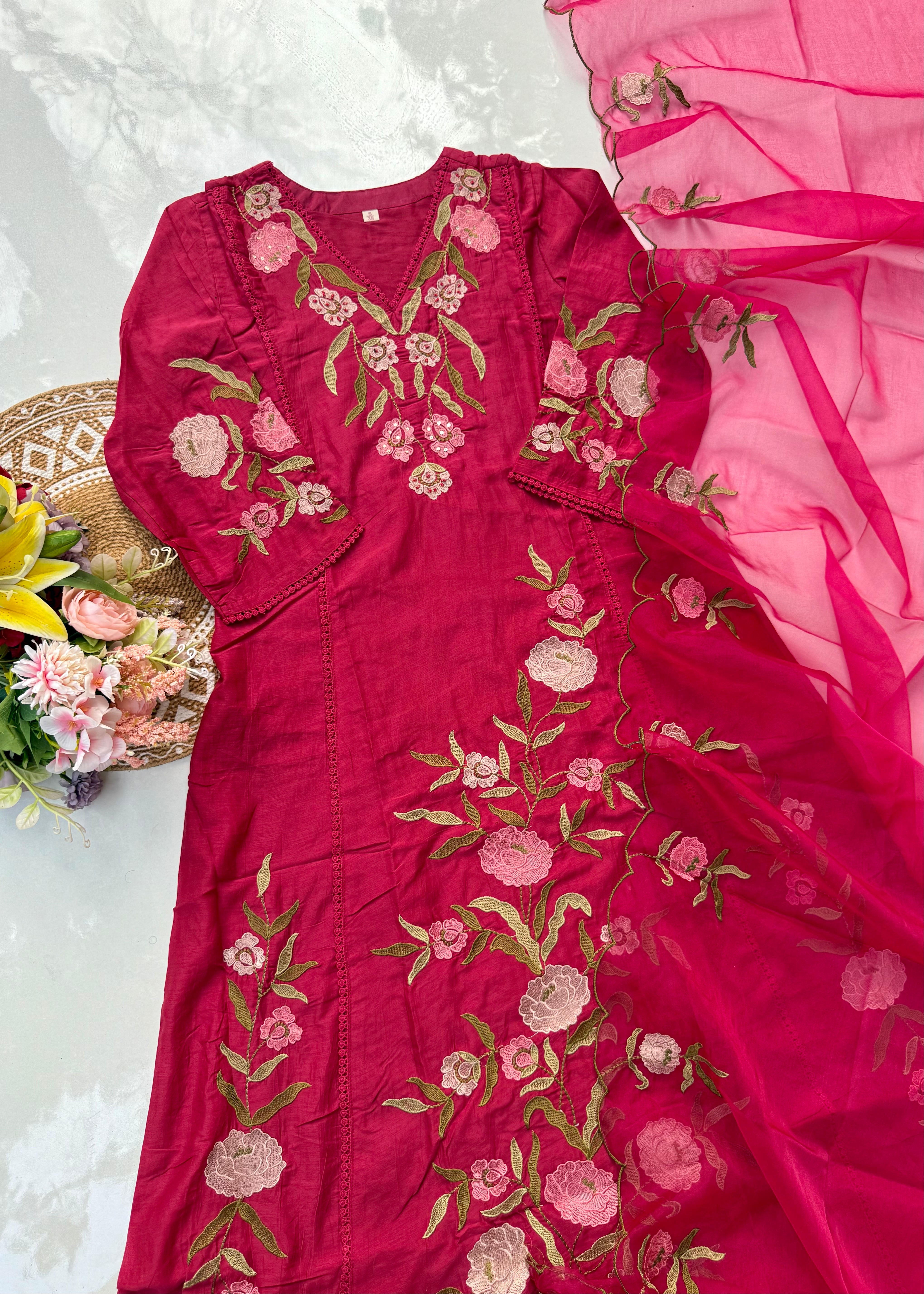 “ROSE” Premium embroidered Mul chanderi anarkali suit set