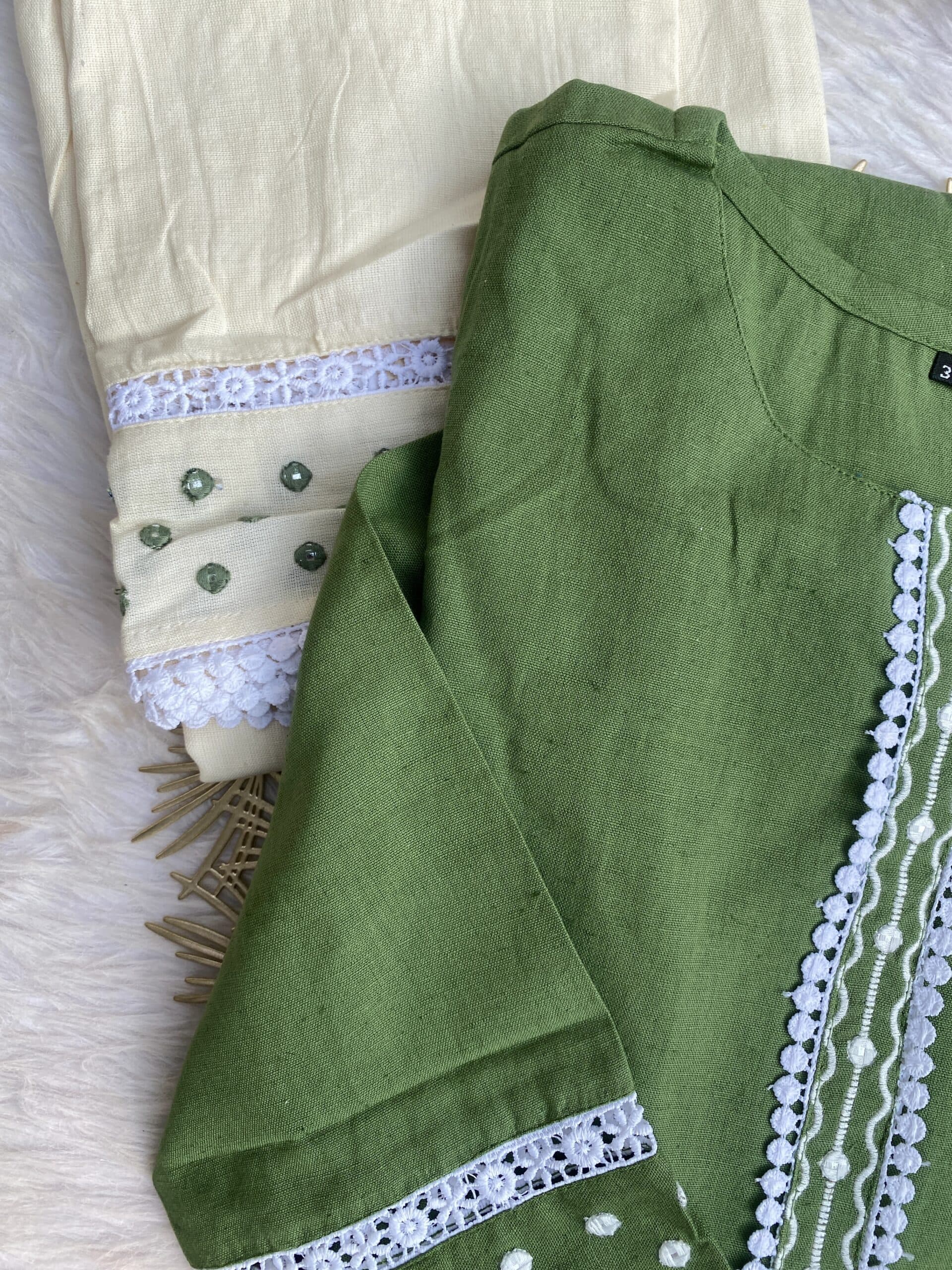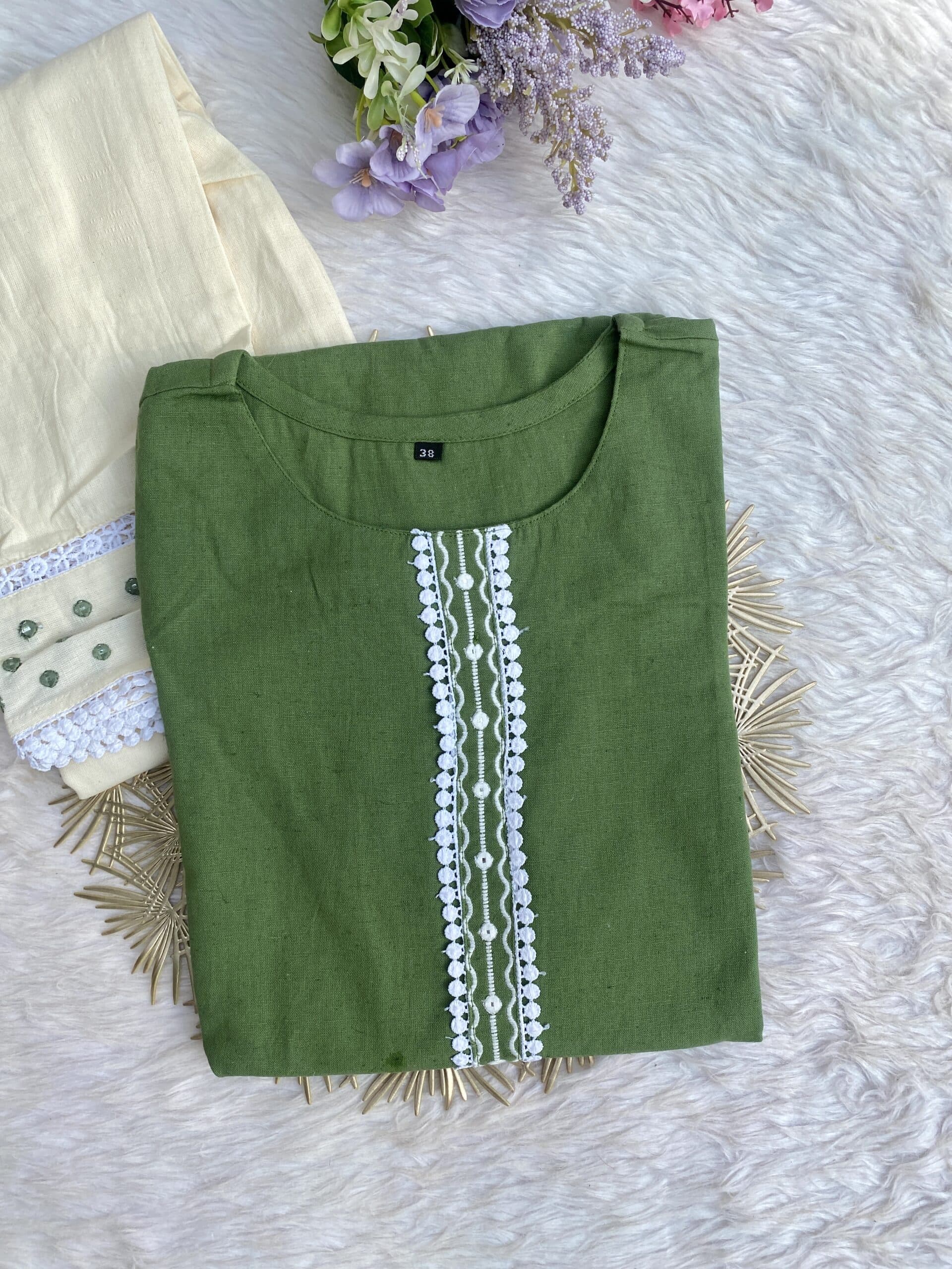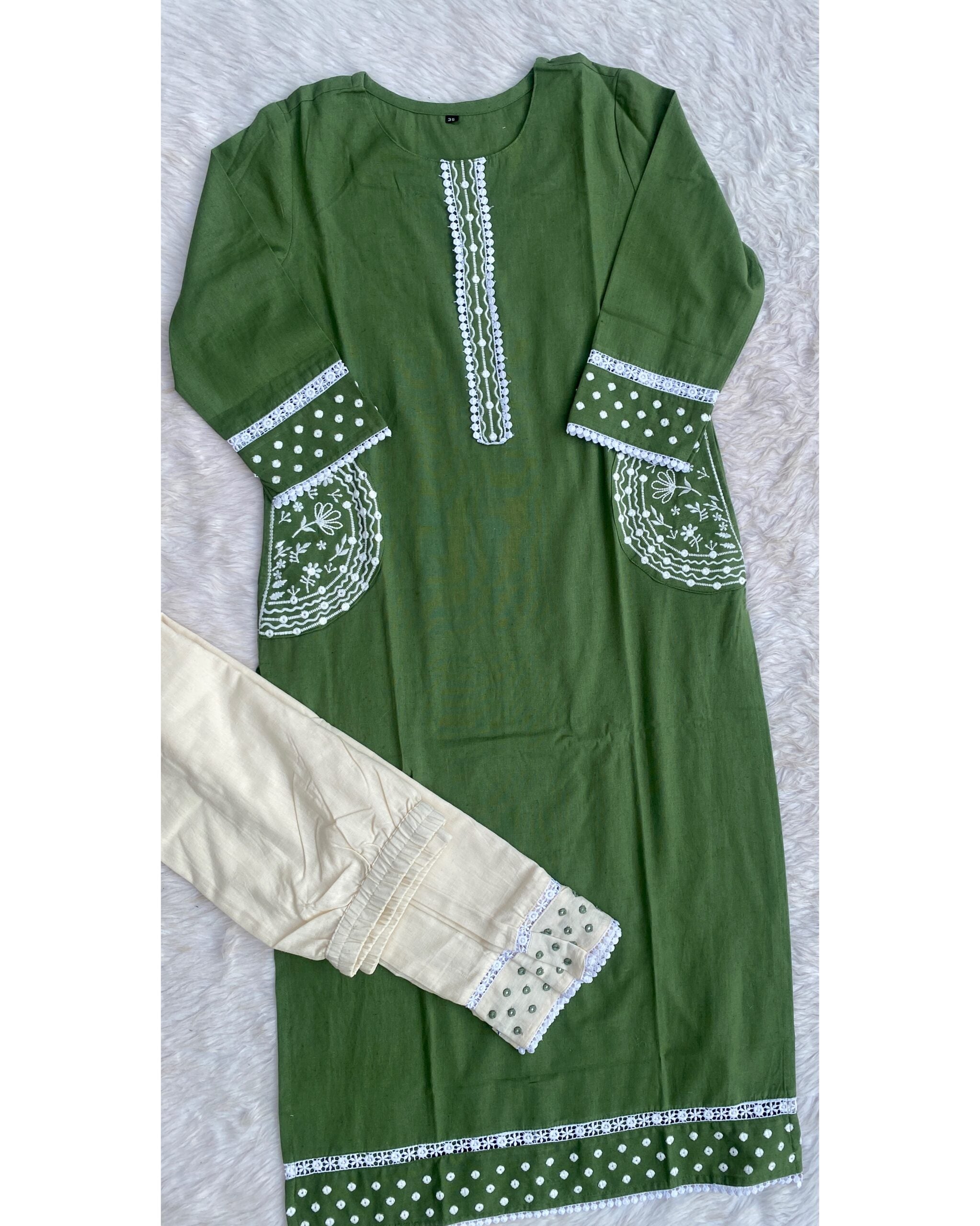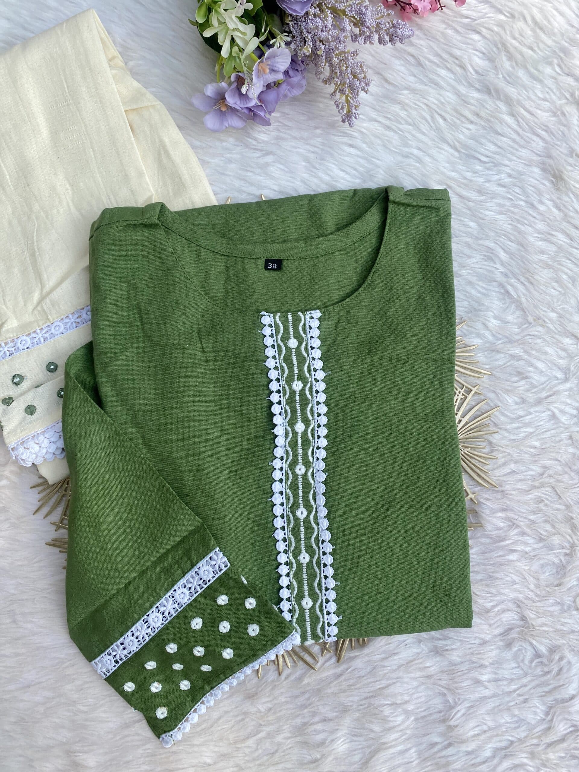 Trendy Cotton thred work kurti bottom set with a side poket and a Cotton bottom