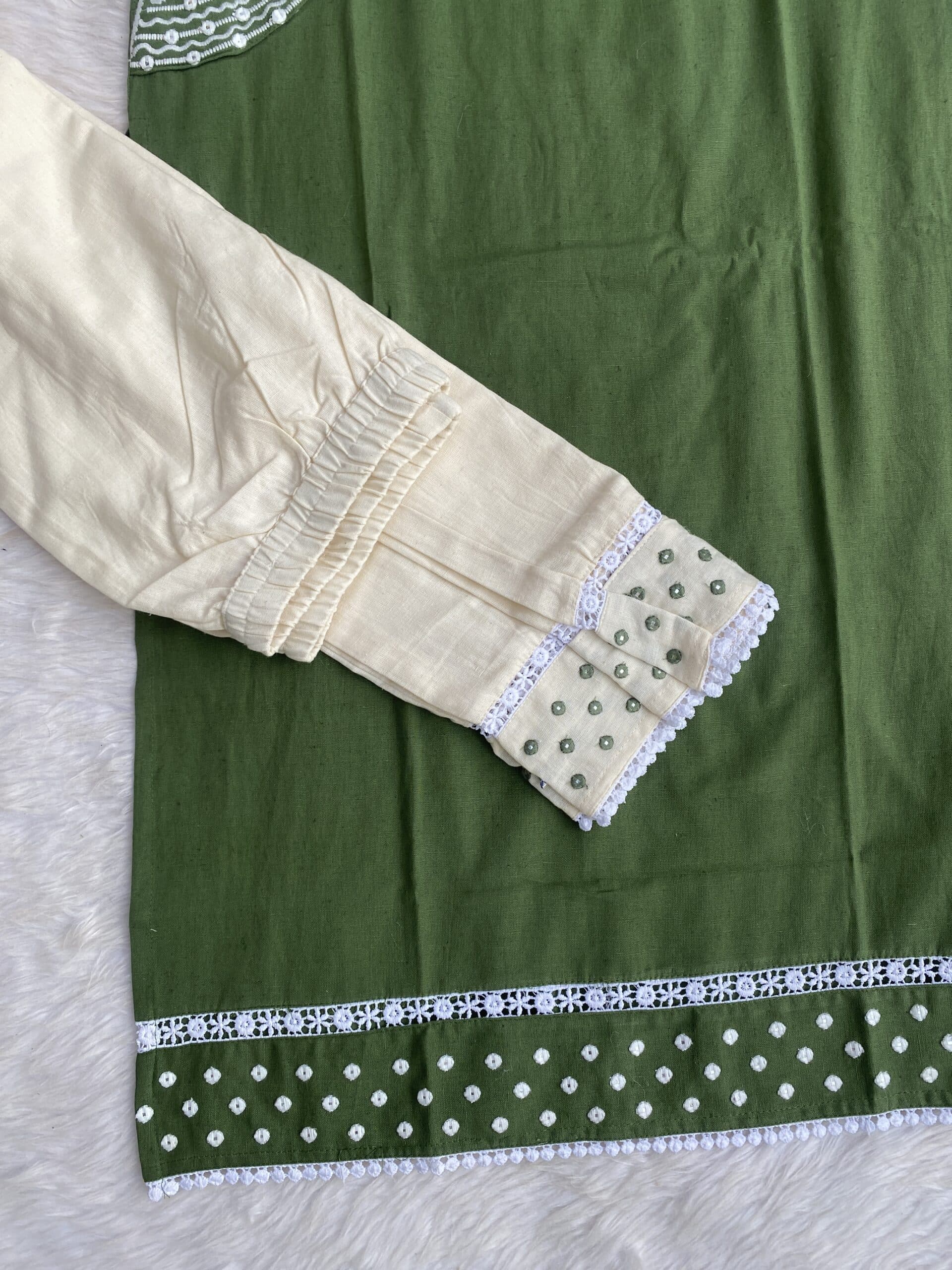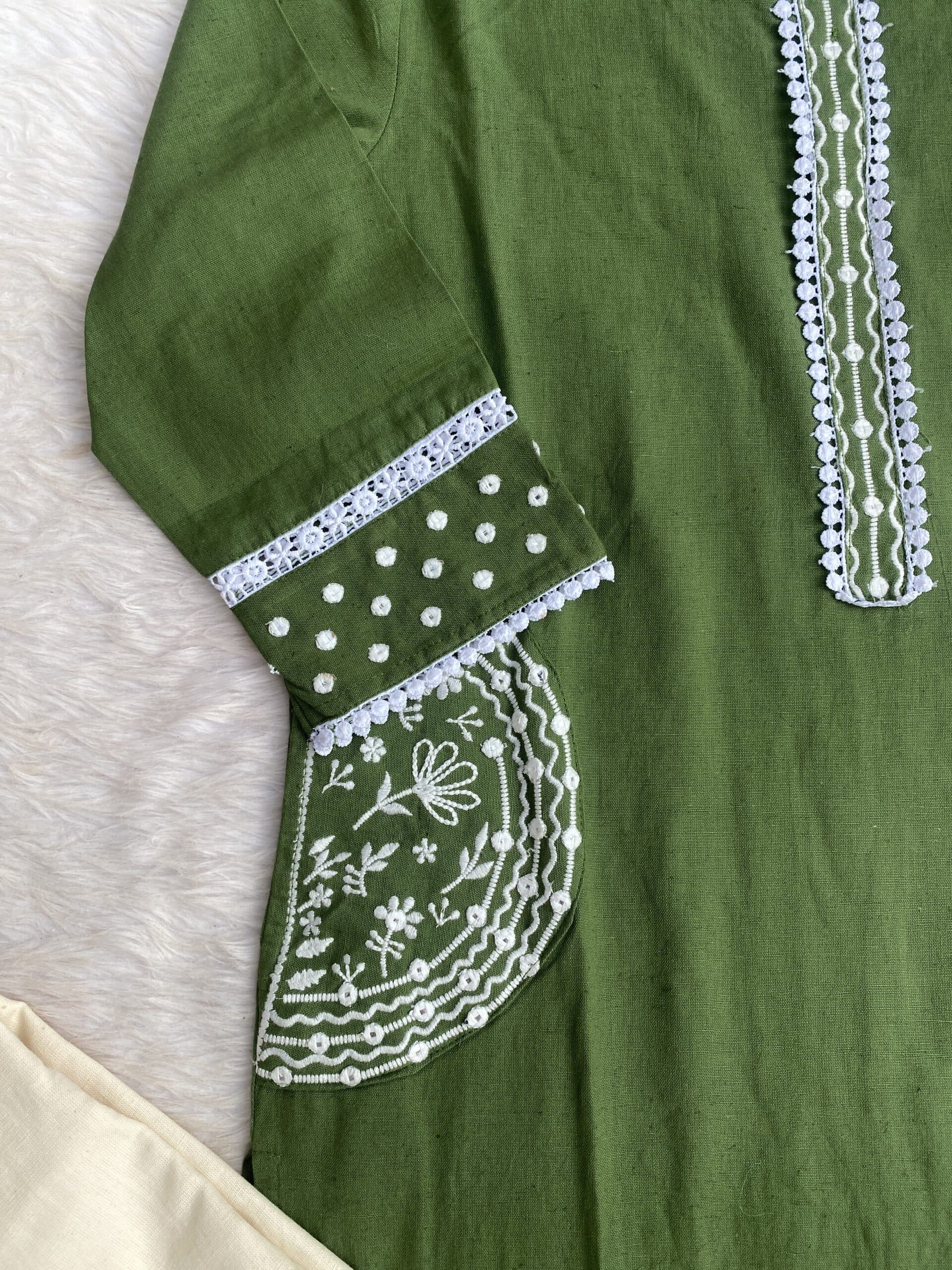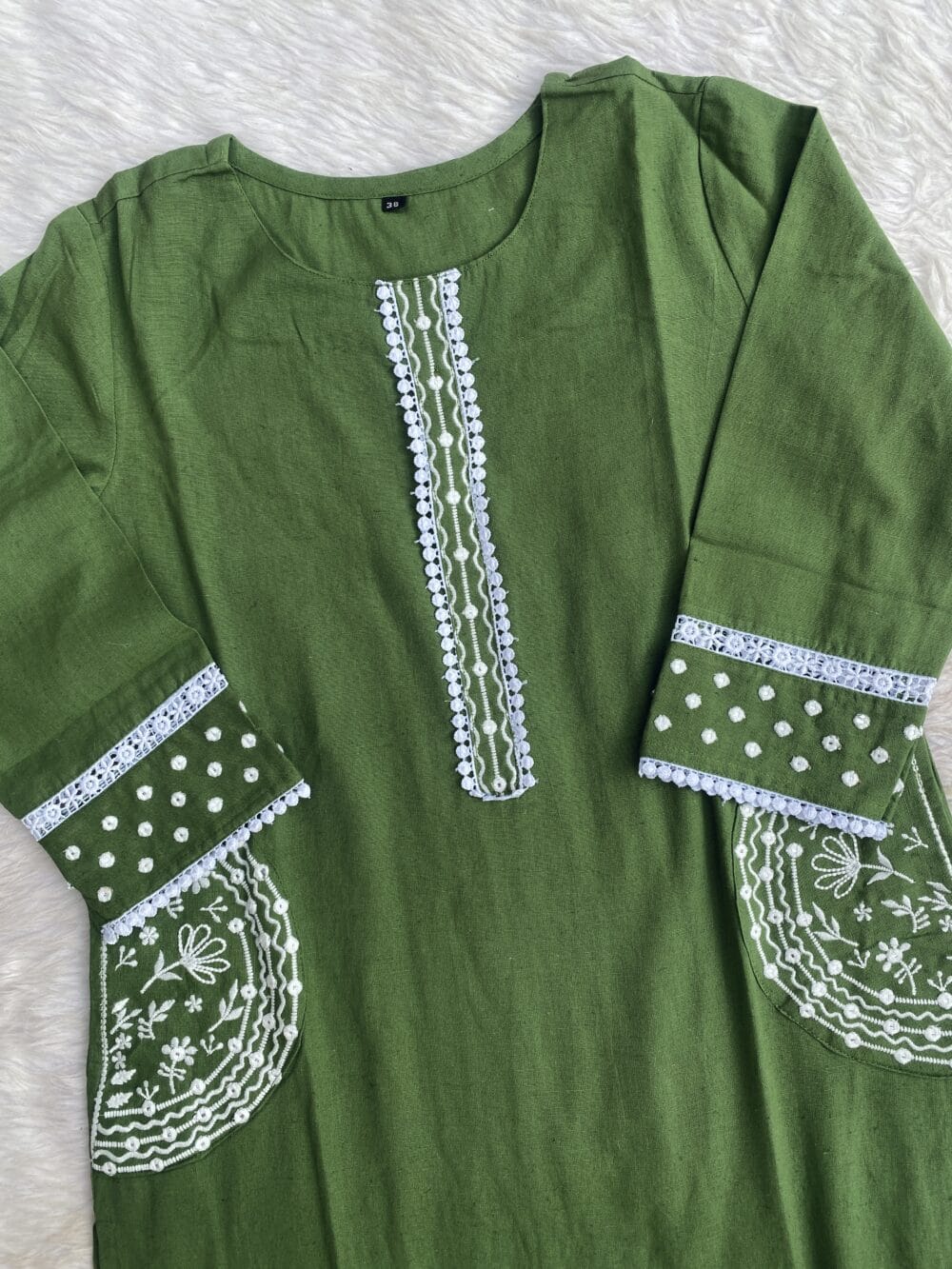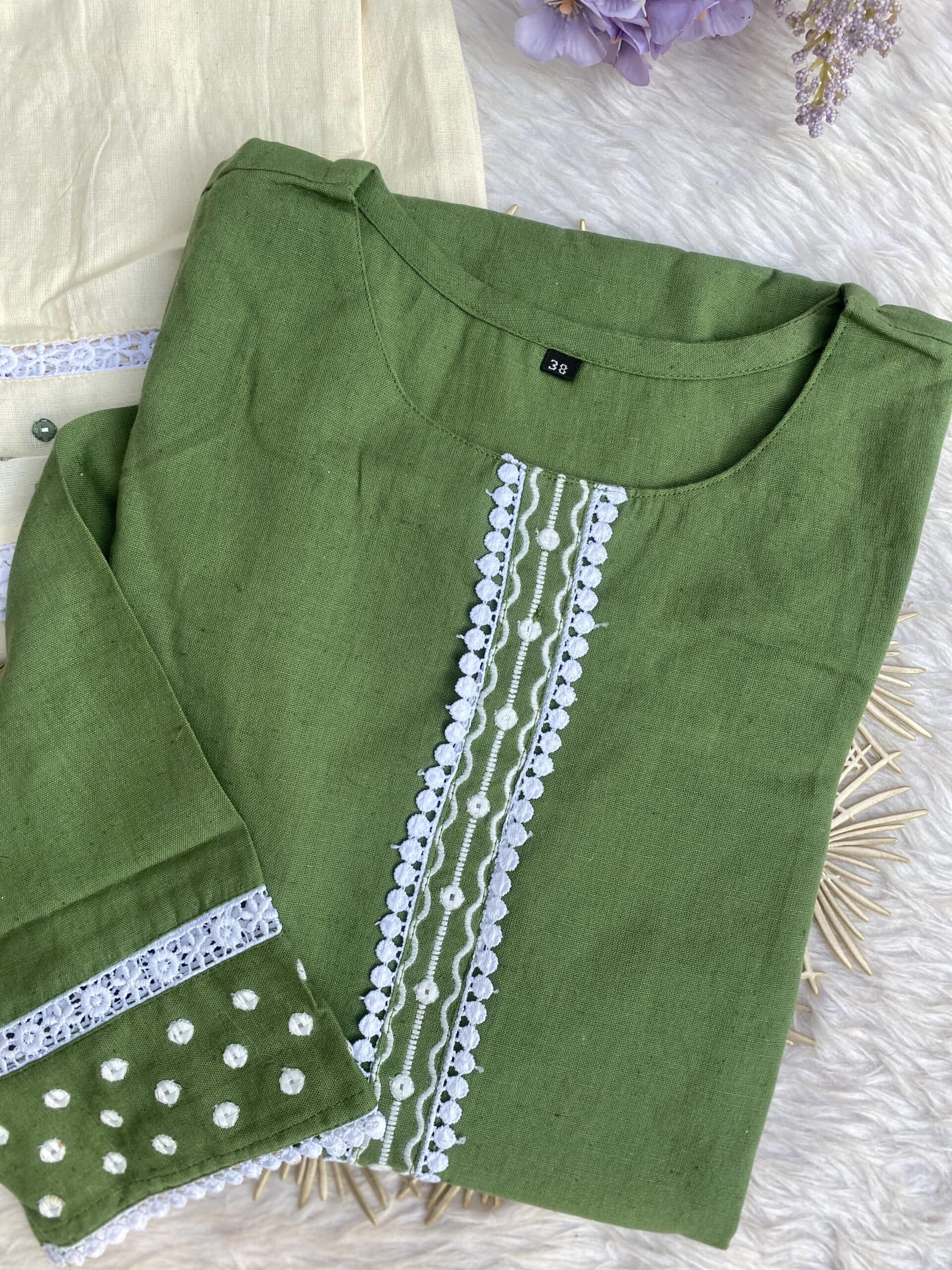 Trendy Cotton thred work kurti bottom set with a side poket and a Cotton bottom