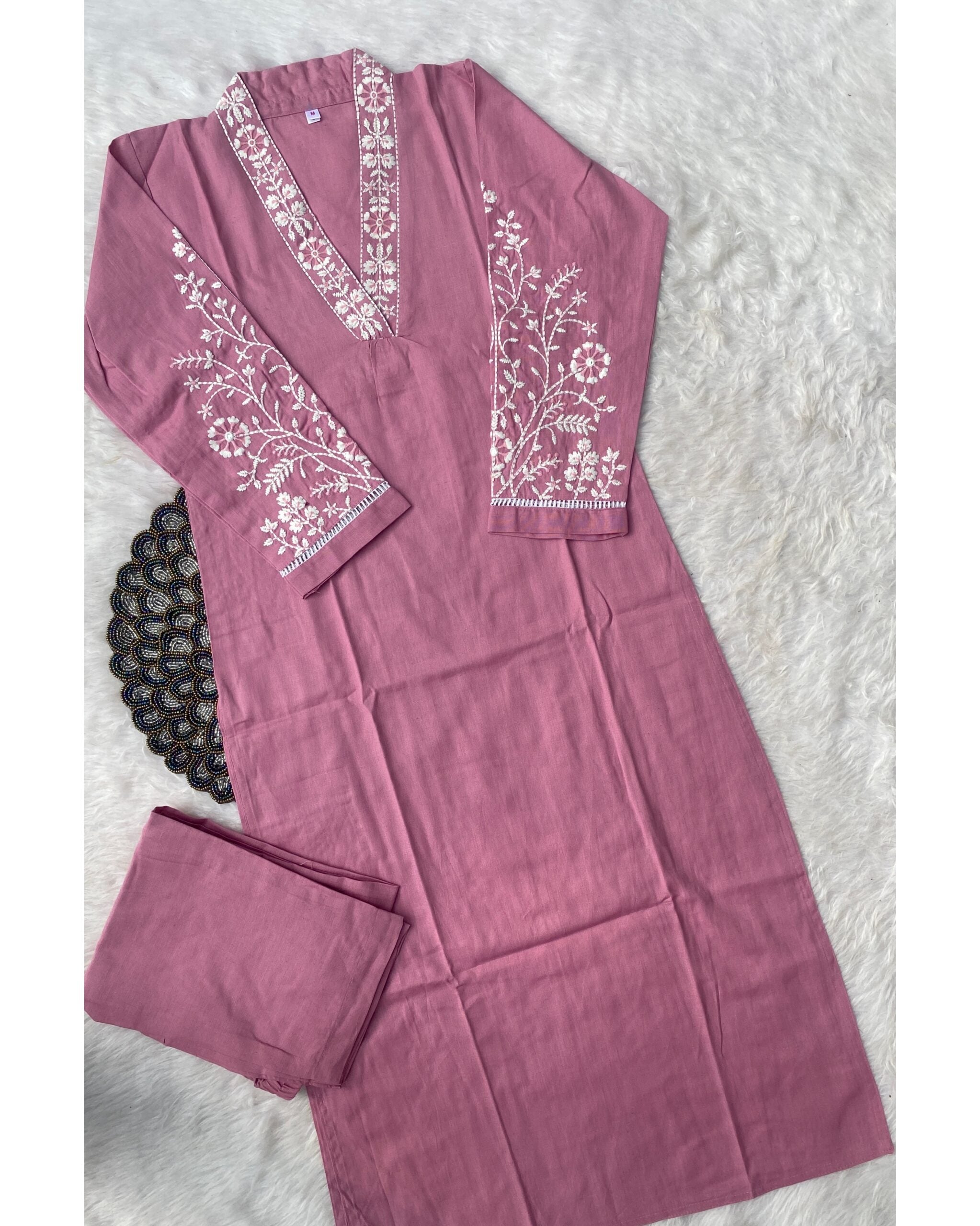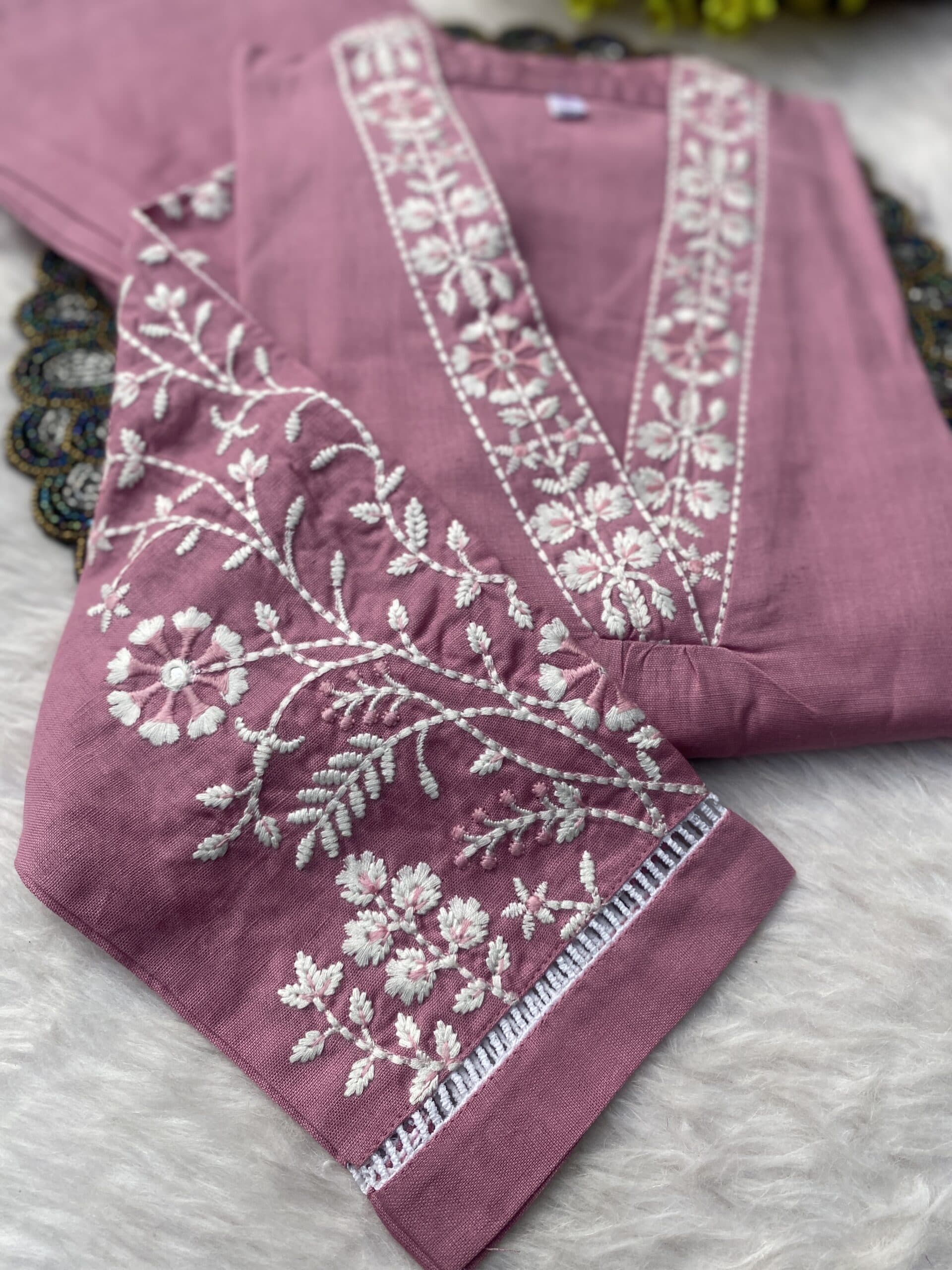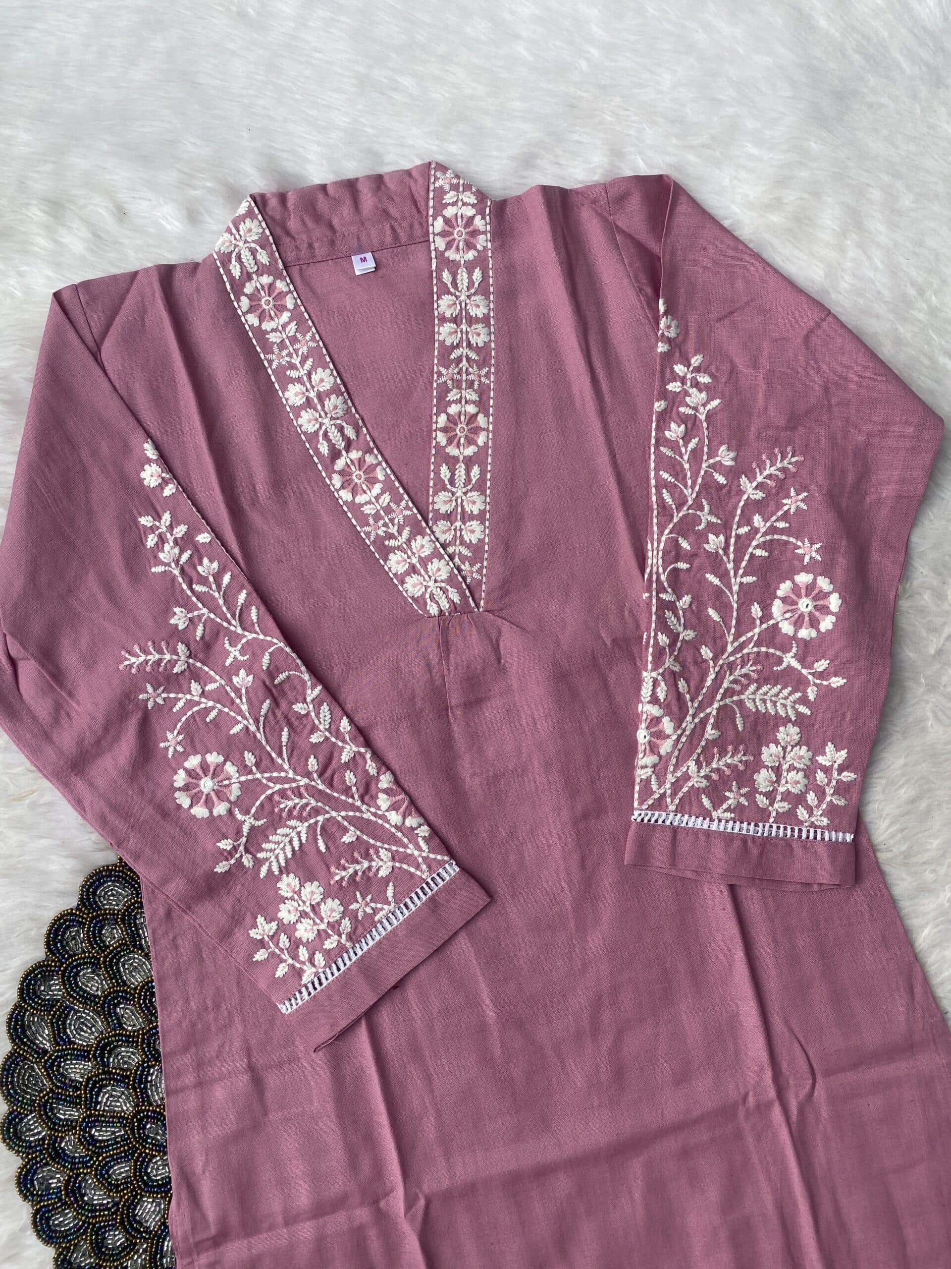 Pure cotton handwork kurta set with heavy work on the sleeve of the kurta with chikan work