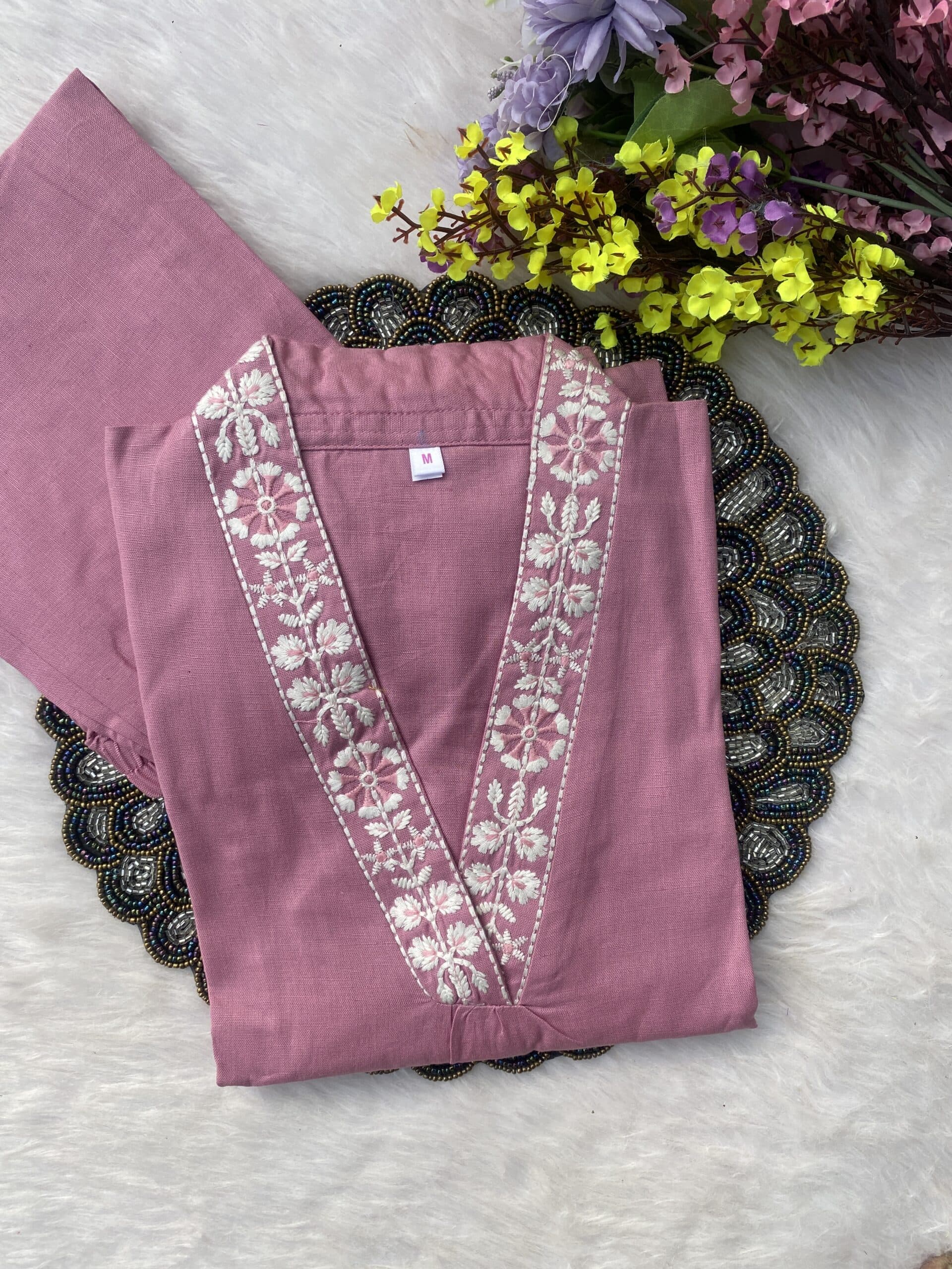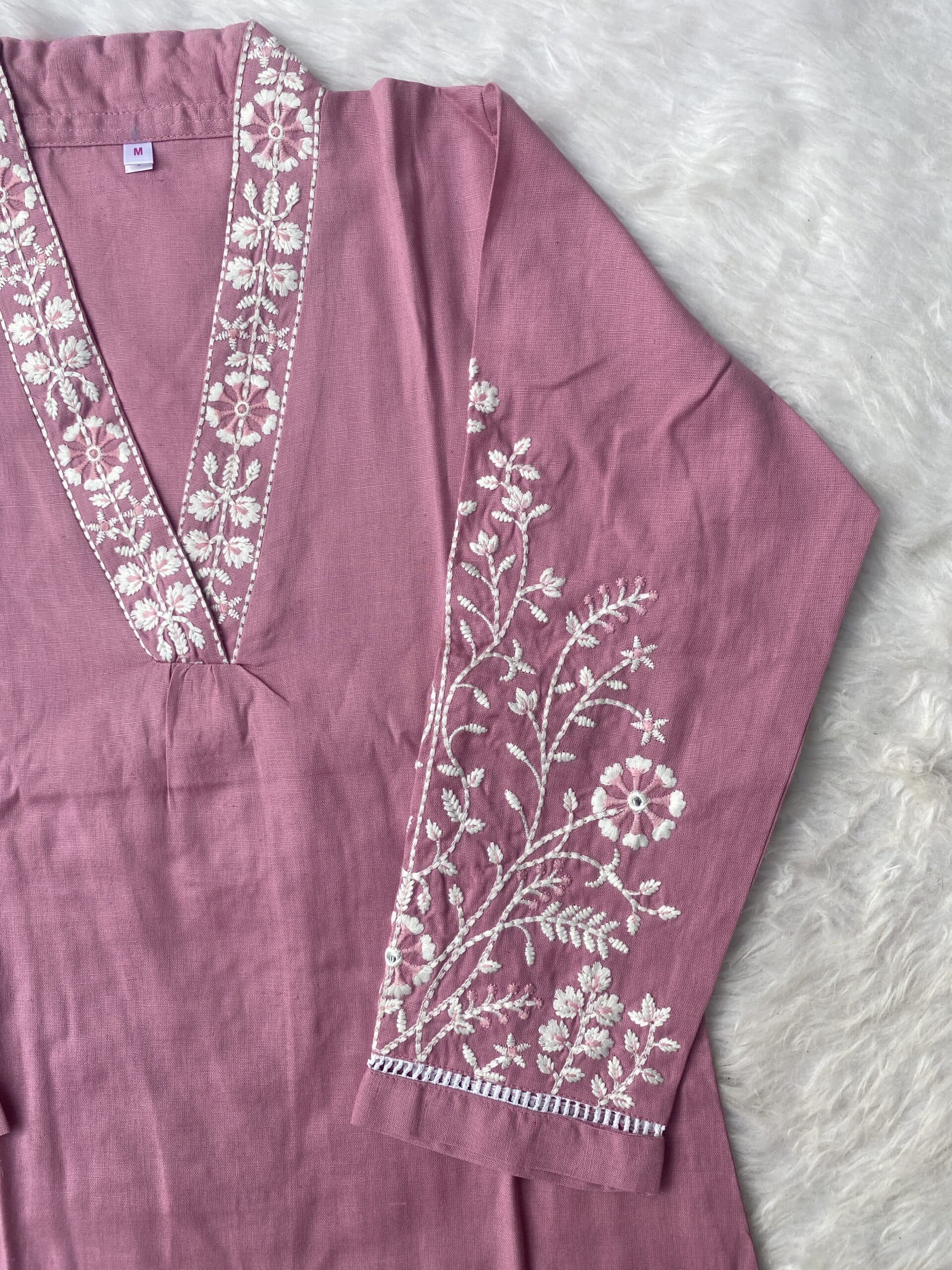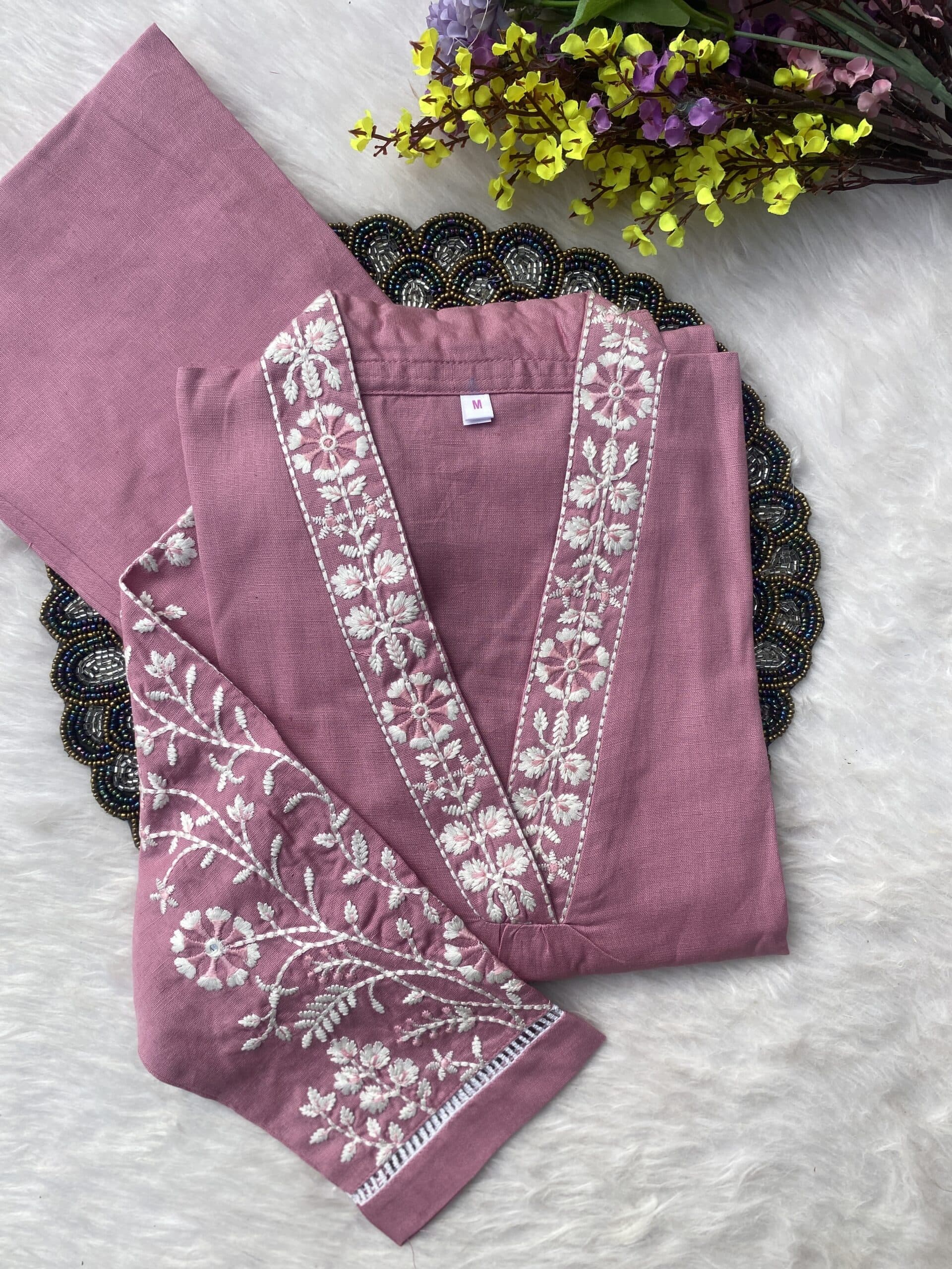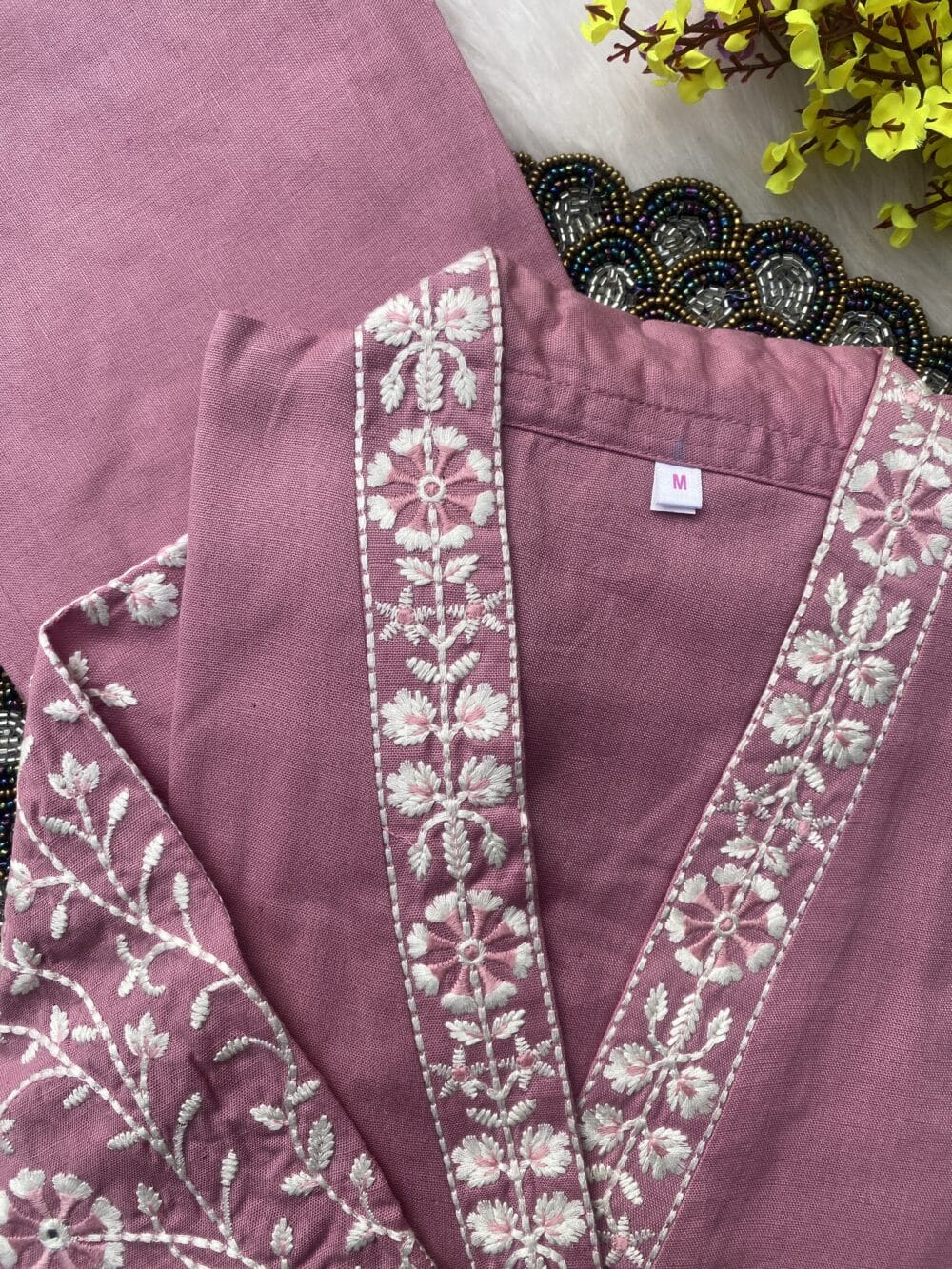 Pure cotton handwork kurta set with heavy work on the sleeve of the kurta with chikan work