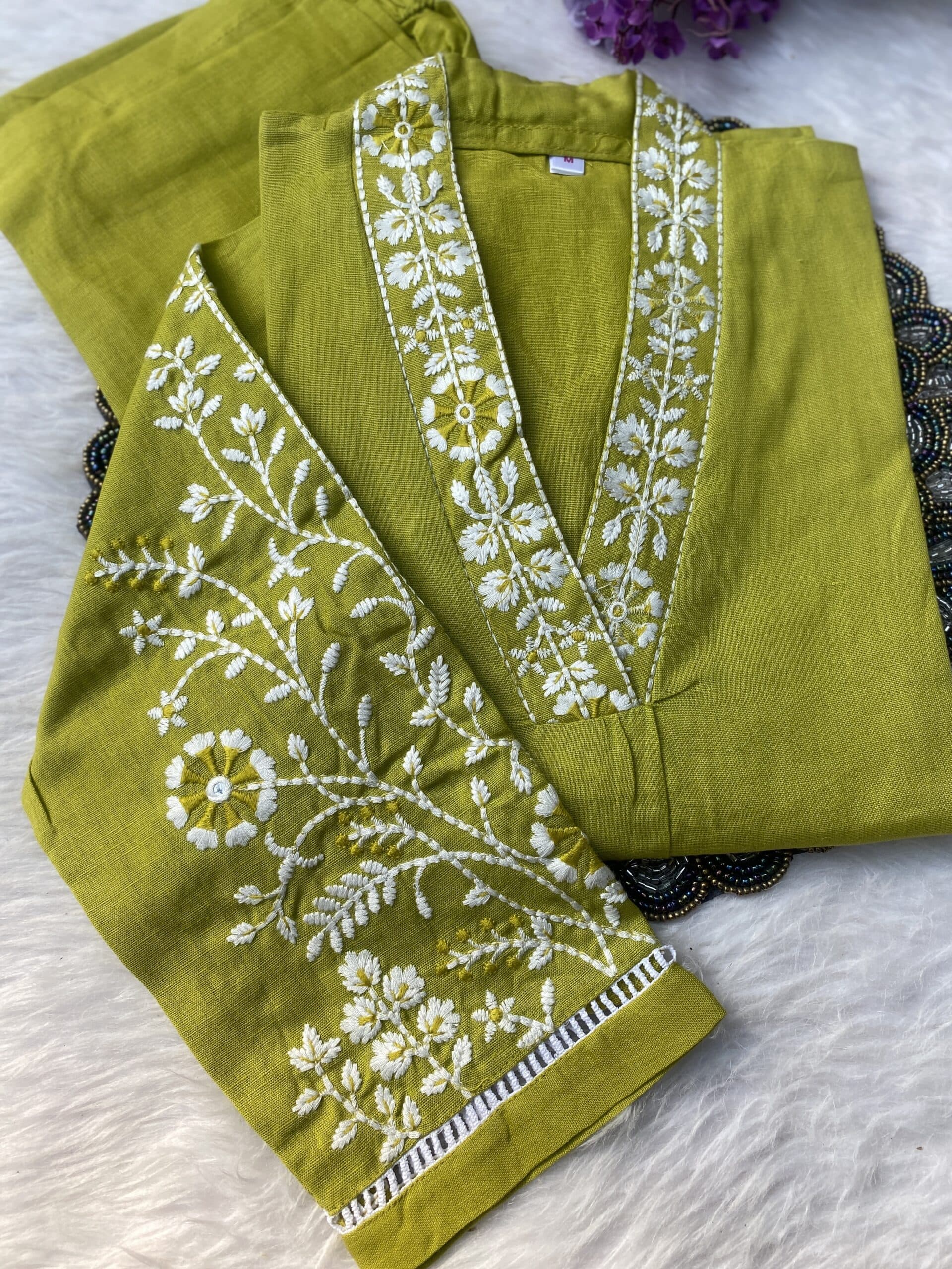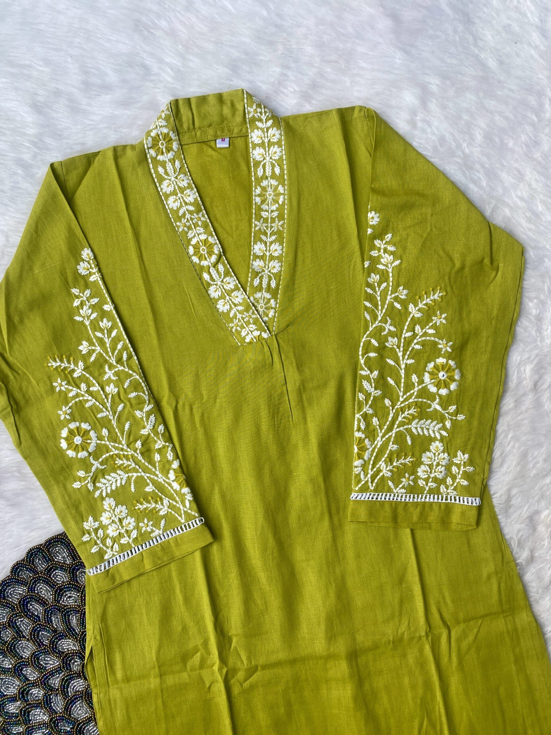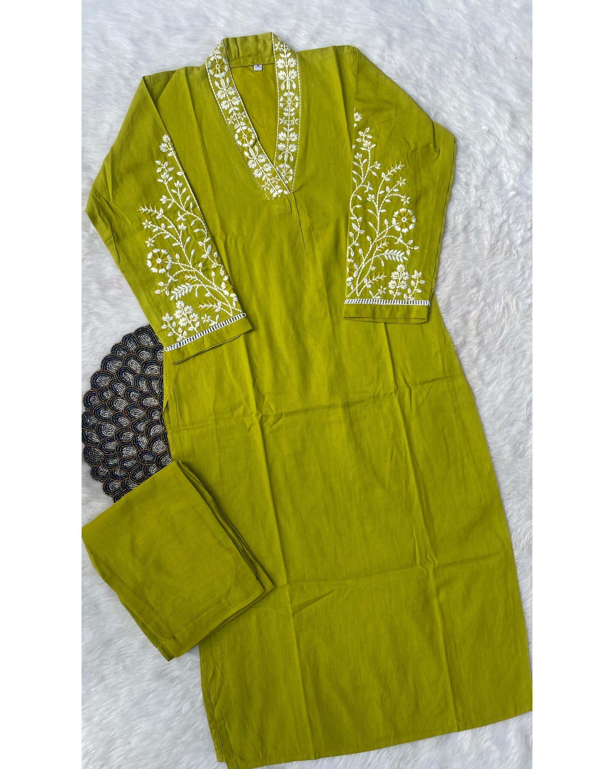 Pure cotton handwork kurta set with heavy work on the sleeve of the kurta with chikan work