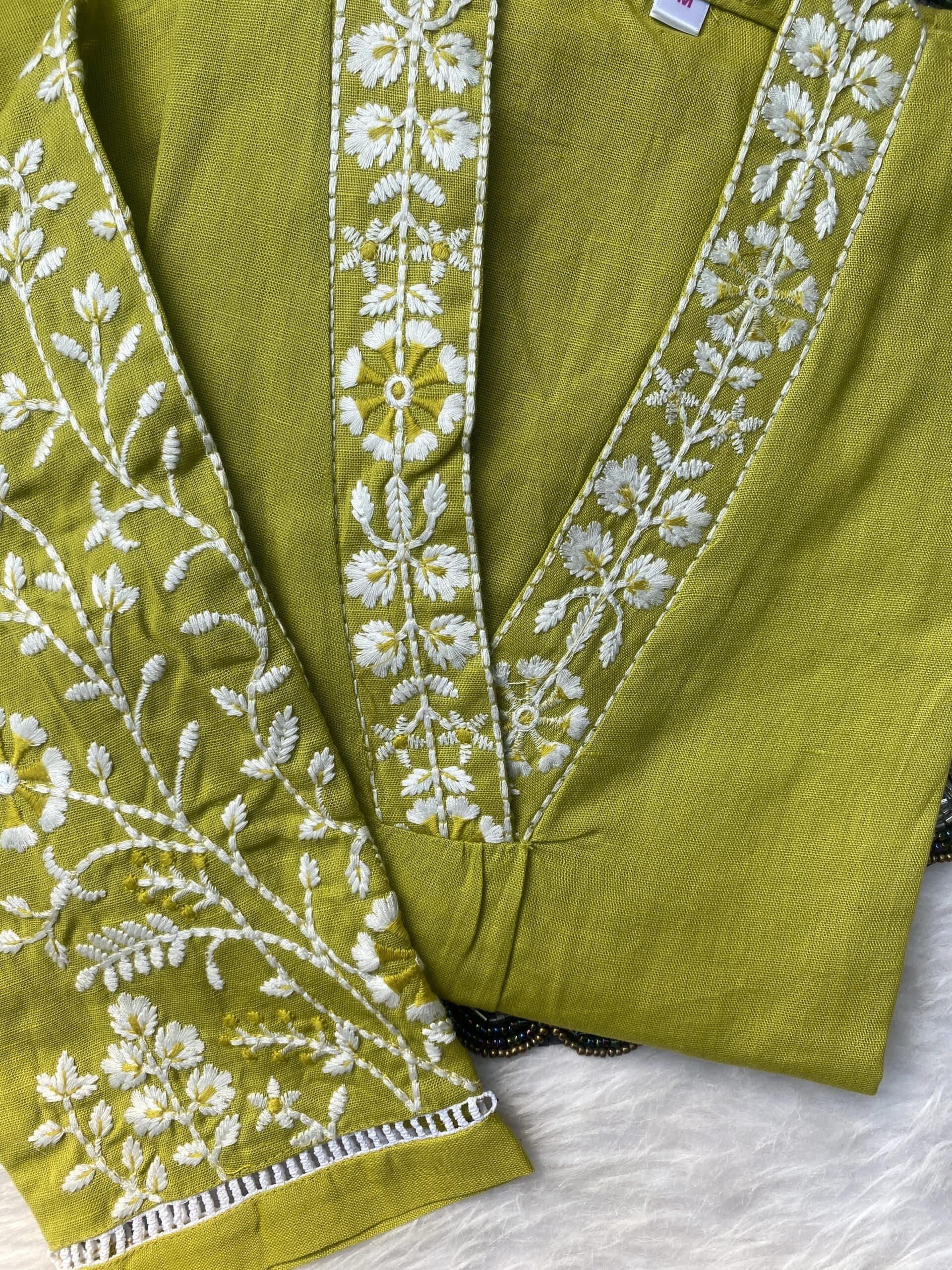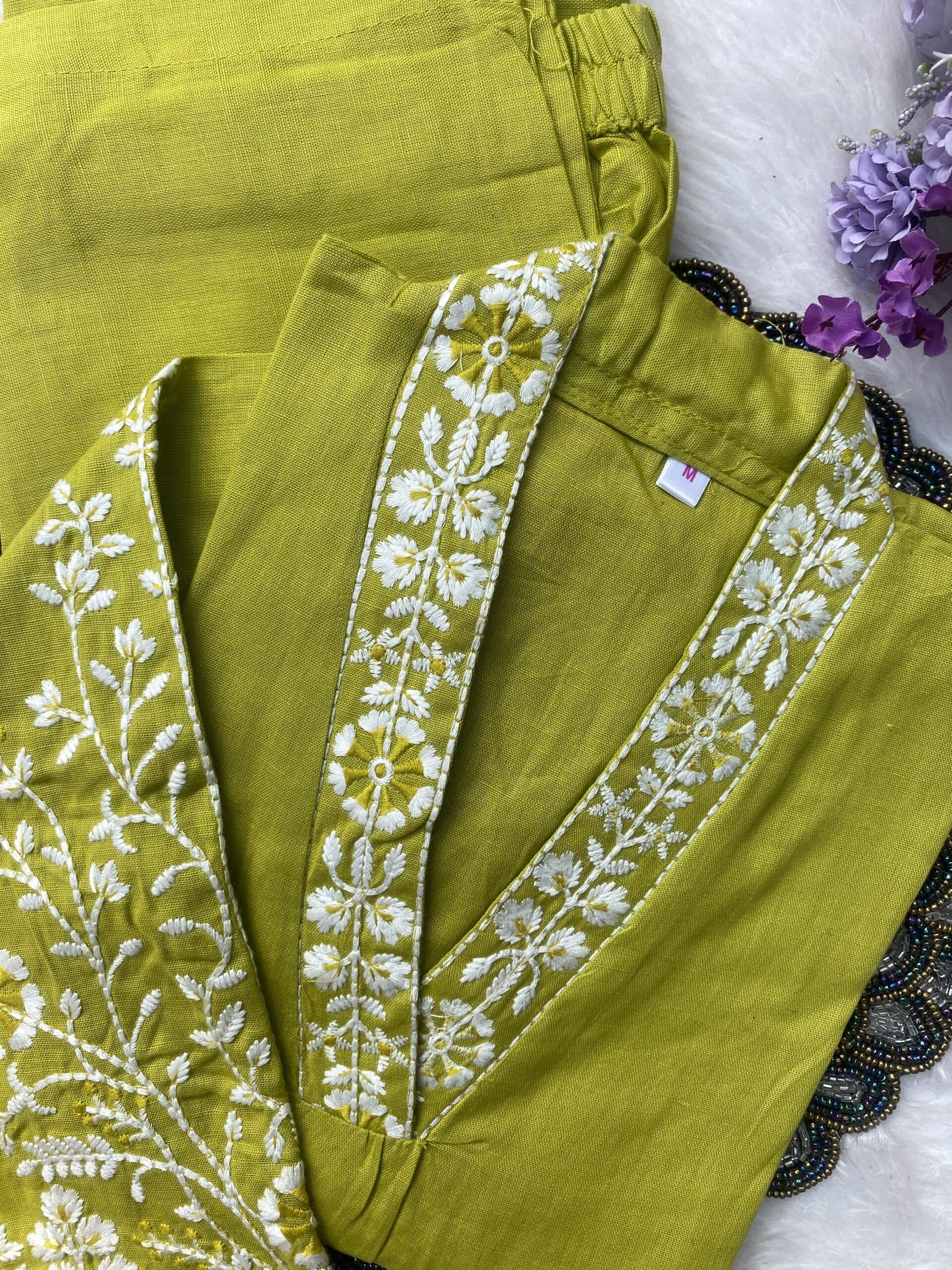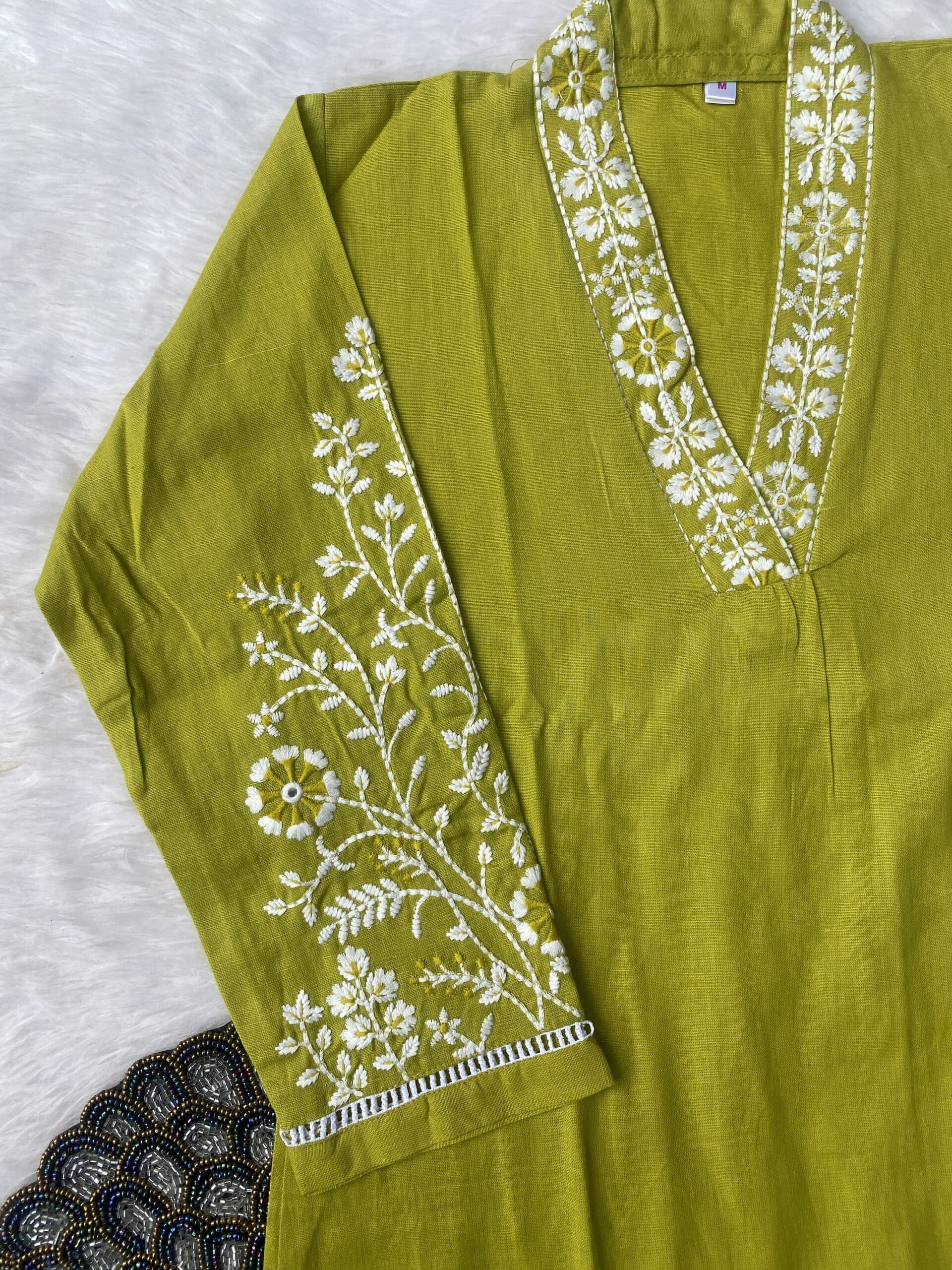 Pure cotton handwork kurta set with heavy work on the sleeve of the kurta with chikan work