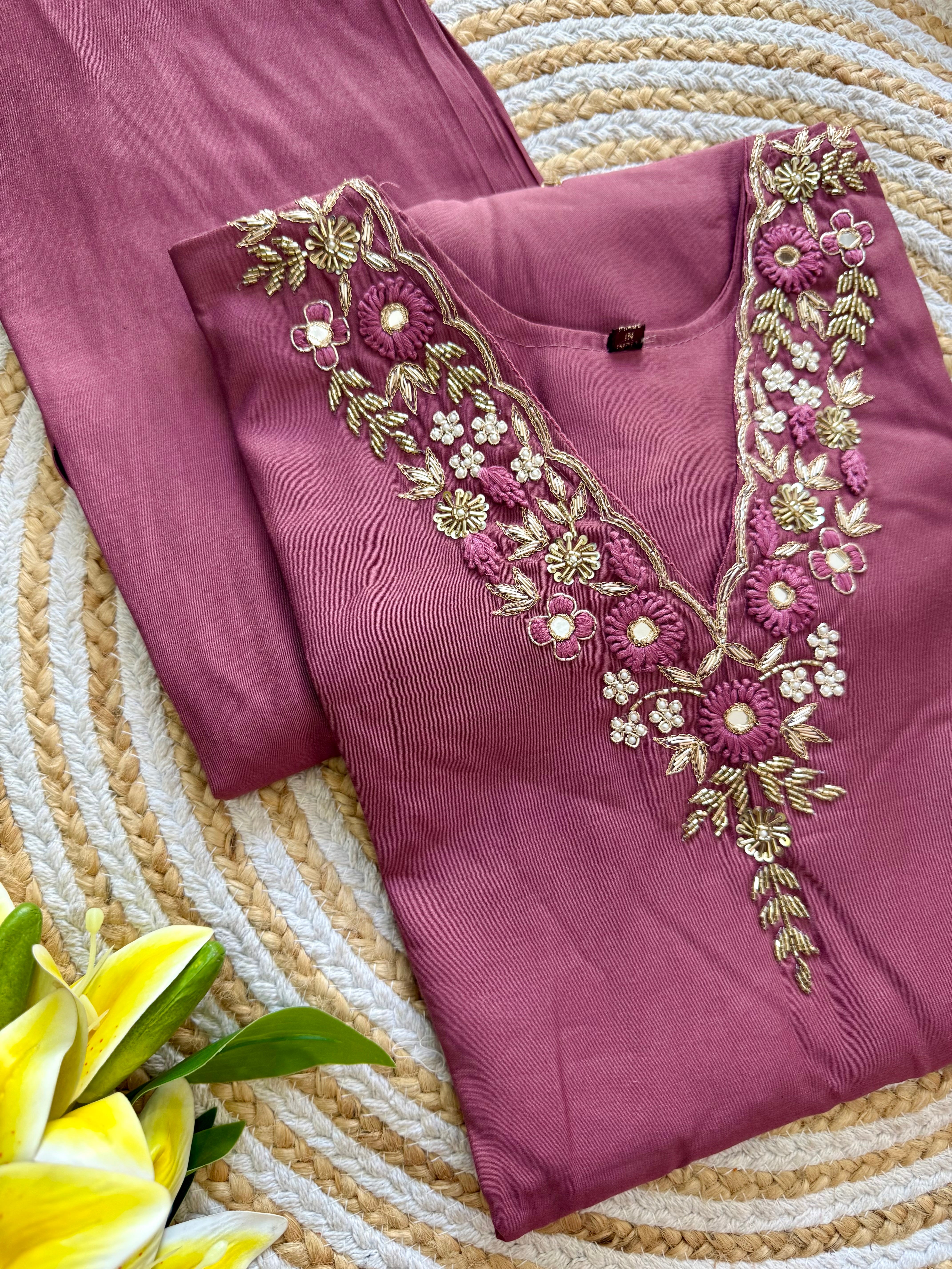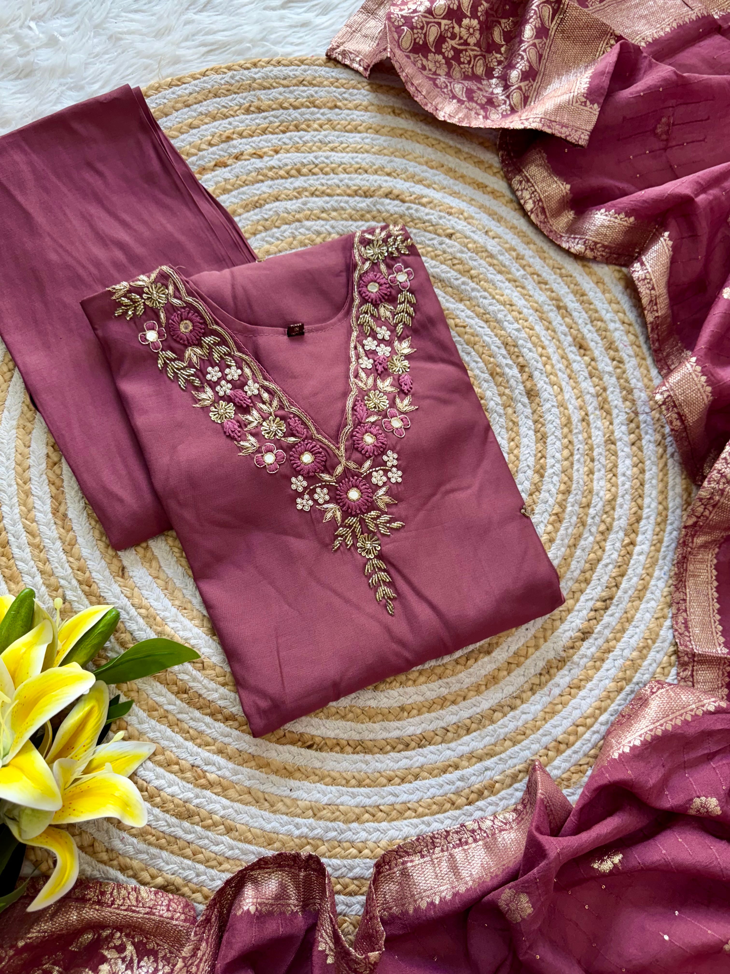 “Saanvi” Elegant russain silk hand embroidery work suit