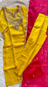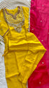 Radiate Elegance: Chinon Beautiful Gota Patti and Sequins Heavy Work Kurti Set with Scalloped Dupatta and Comfy Pants