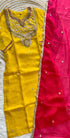 Radiate Elegance: Chinon Beautiful Gota Patti and Sequins Heavy Work Kurti Set with Scalloped Dupatta and Comfy Pants
