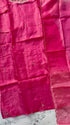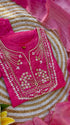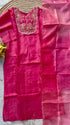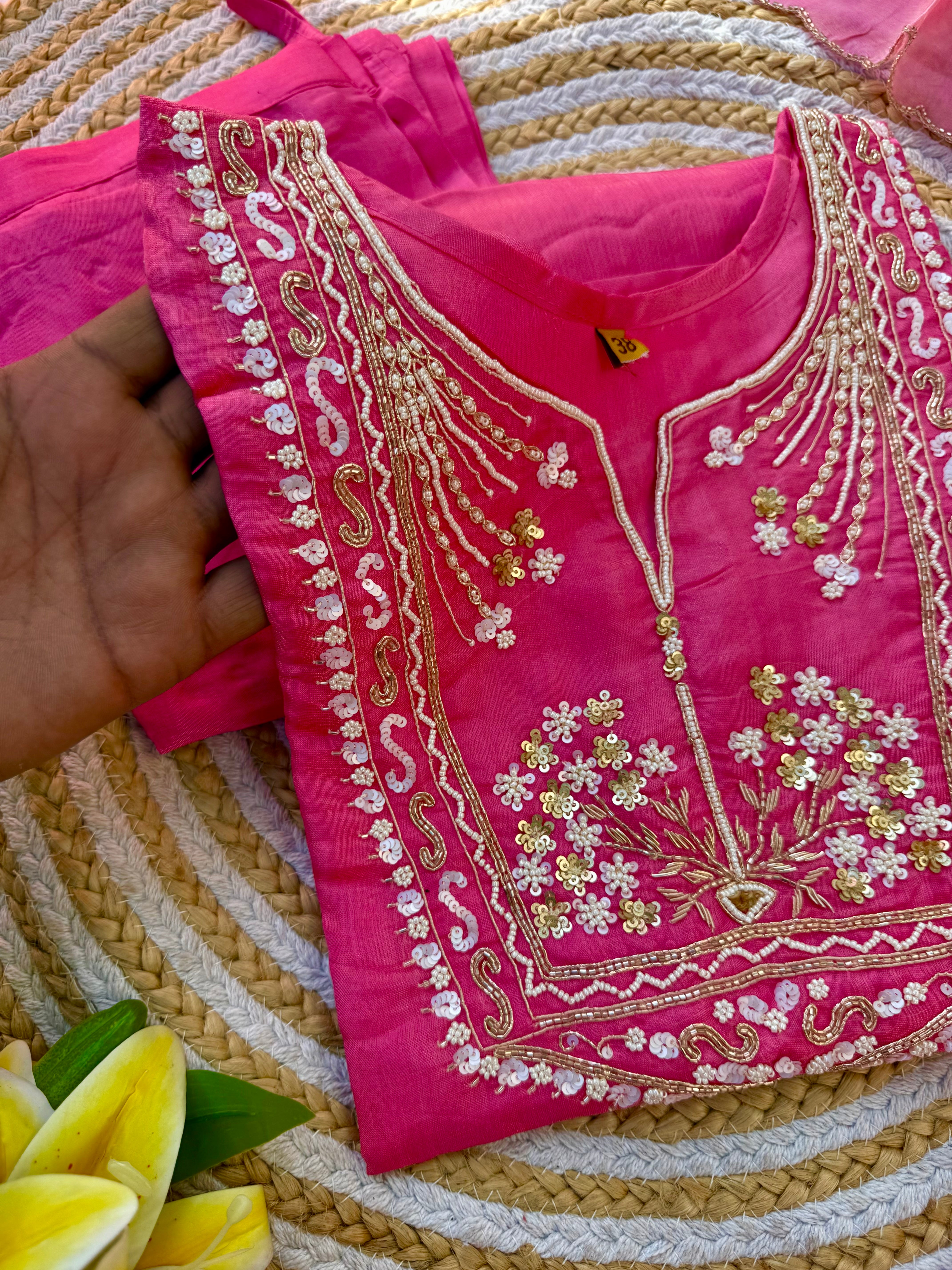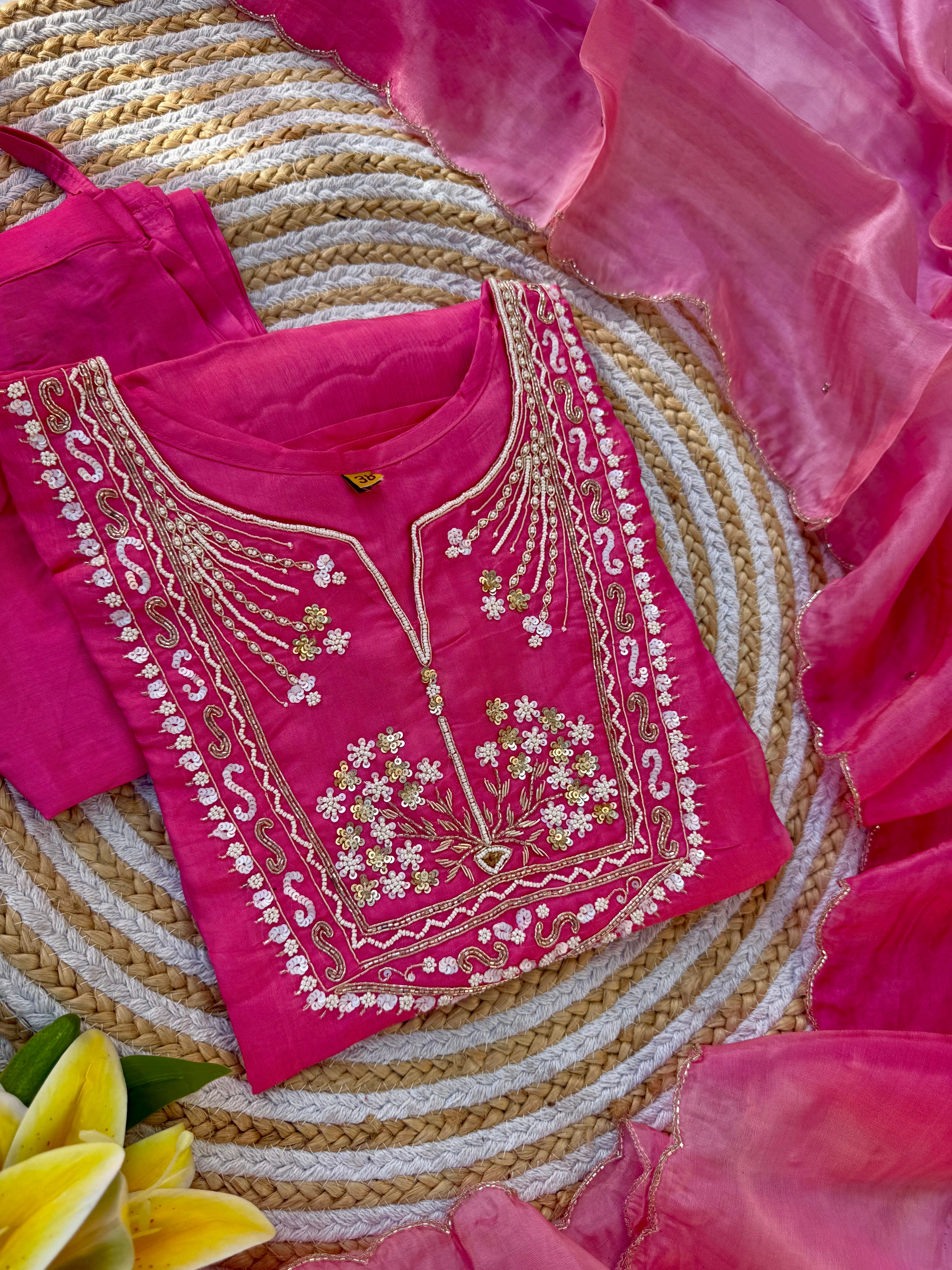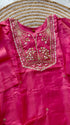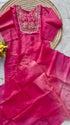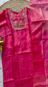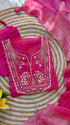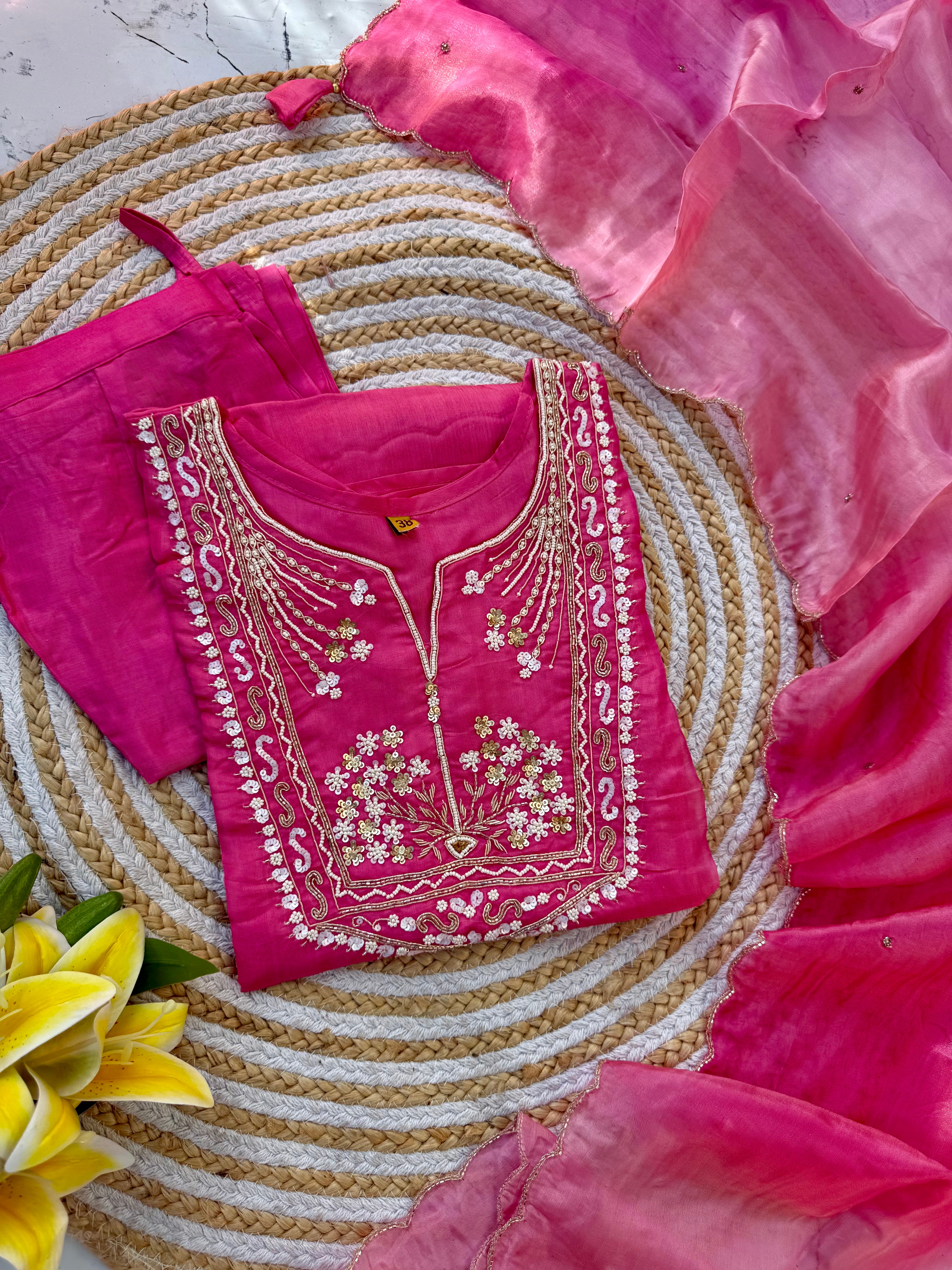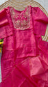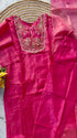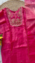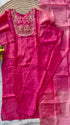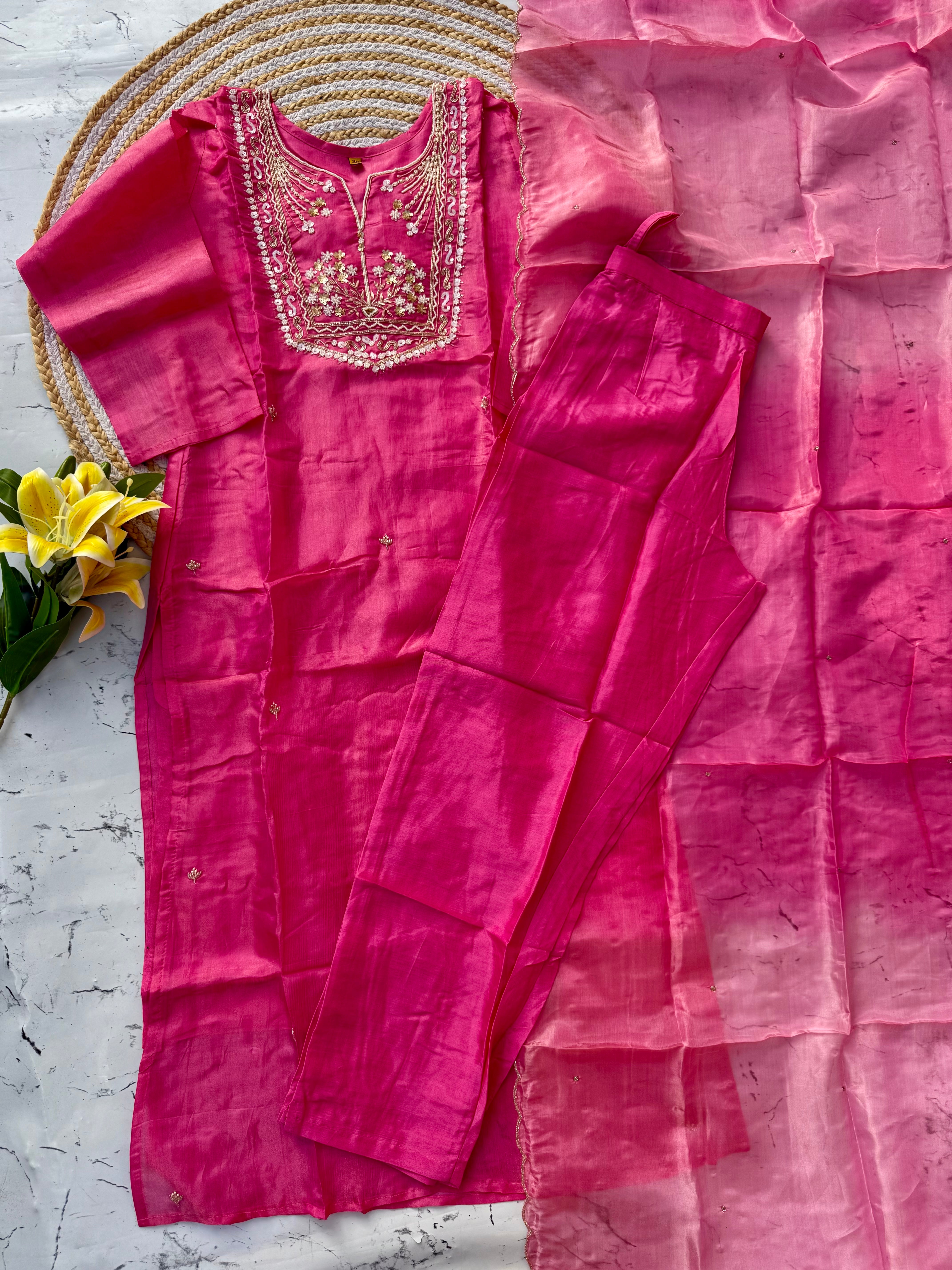 Beautiful Tissue silk kurta with with handwork on the yoke of the kurta with a long organza dupatta with pearl work details & a dola silk bottom